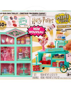 MAKE IT MINI HONEYDUKES™ Trolley! Build your own Honeydukes themed mini trolley from the Harry Potter™ films! Each pack comes with 50+ pieces to build your own Honeydukes™ themed mini trolley and candy stand, as well as ingredients to make an exclusive mini replica food item that can only be found in this set. Additional accessories are also included, such as candy jars, candy trays, cupcake boxes, and more, to display on your trolley!