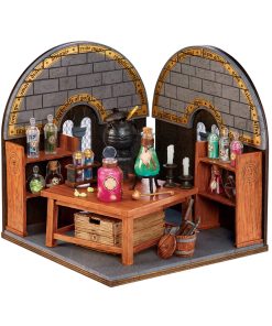 Follow the instructions to build your Mini Potions Class. From the walls to the floor to the furniture, there’s so much to MAKE in this set. Once you’ve finished creating your Potions Class, let it set until dry. Once it’s dry, you’ve got a mini replica Potions Class ready to display! So much storage and space to display your Make It Mini Potions!