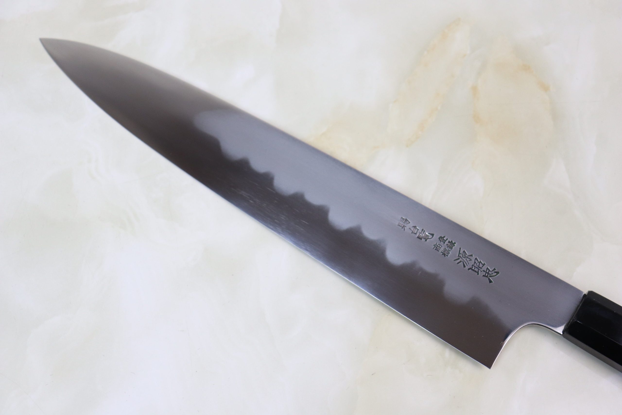 We are proud to introduce Mizuno Tanrenjo’s wonderful Honyaki Series (White Steel). Each knife features a unique, beautiful Hamon pattern and is heat-treated and to an incredible HRc. 64-65!