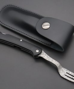 Slim Utility Steak Knife Blade is hand sharpened and polished, made of AUS-8 Stainless Steel which makes good strength, ease of maintenance and high cutting performance. Full Tang, Hand contoured and hand rounded Black Linen Micarta Handle with Stainless Steel Bolster makes comfortable grip and weight balance.