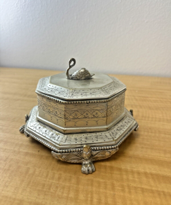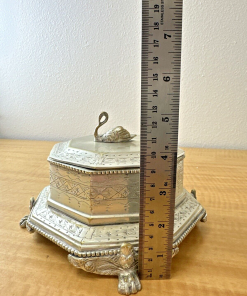 MOTTAHEDEH BRASS SWAN BOX OCTAGONAL PAW FEET LIDDED ORNATE VINTAGE ANTIQUE