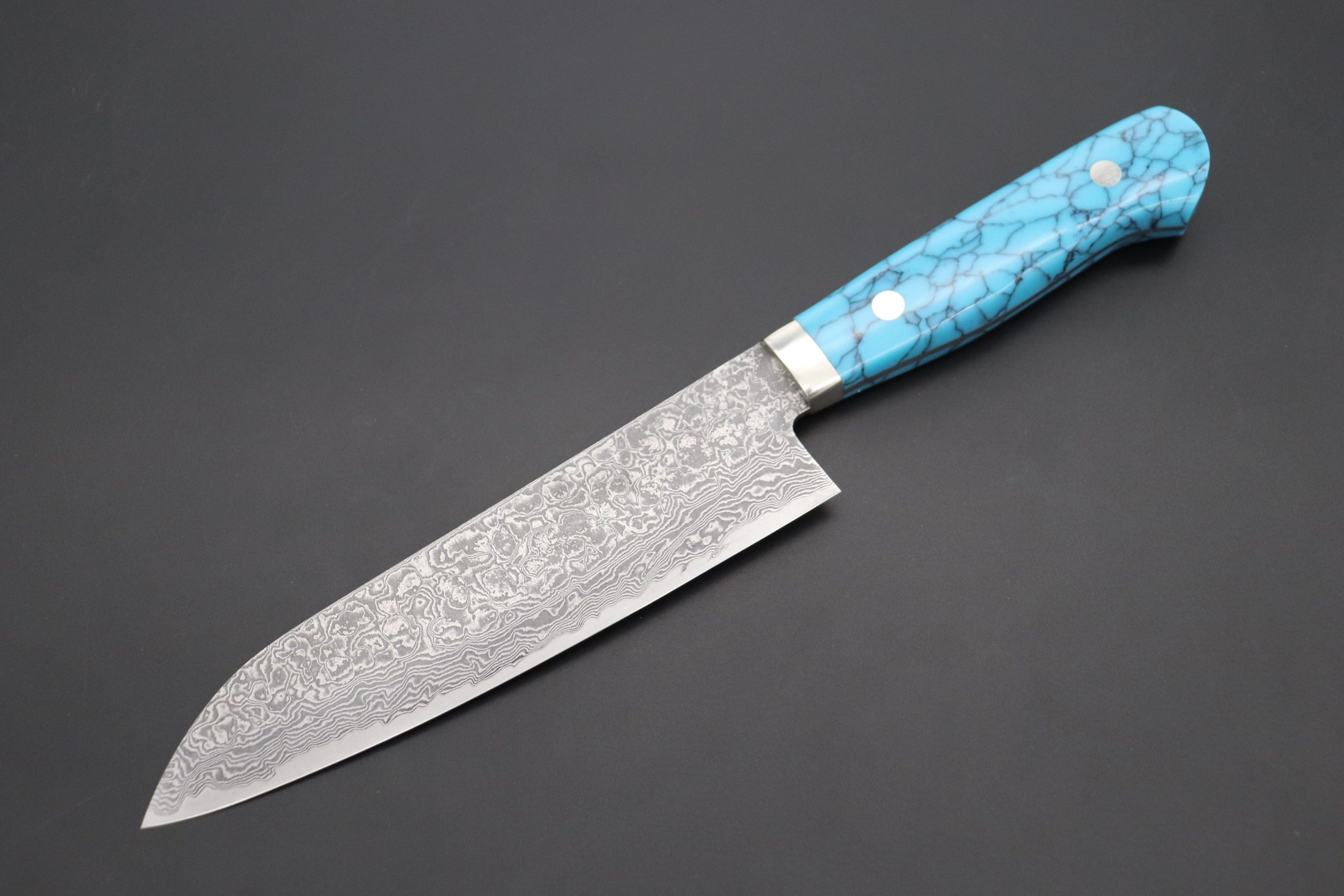 Mr. Itou R-2 Custom Damascus Gyuto 160mm (6.2 inch) “Turquoise Gem-Composite Stone Handle” (IT-231)