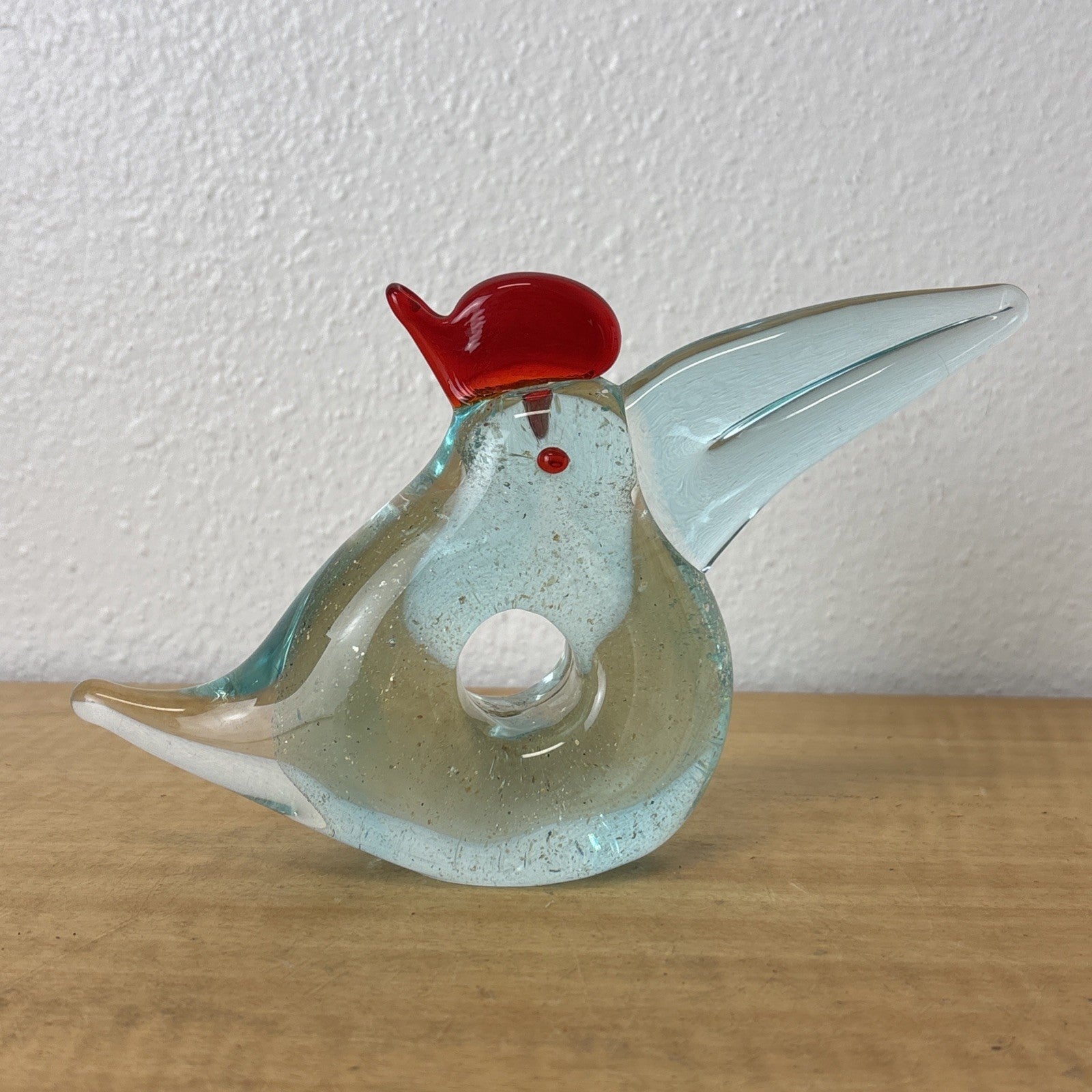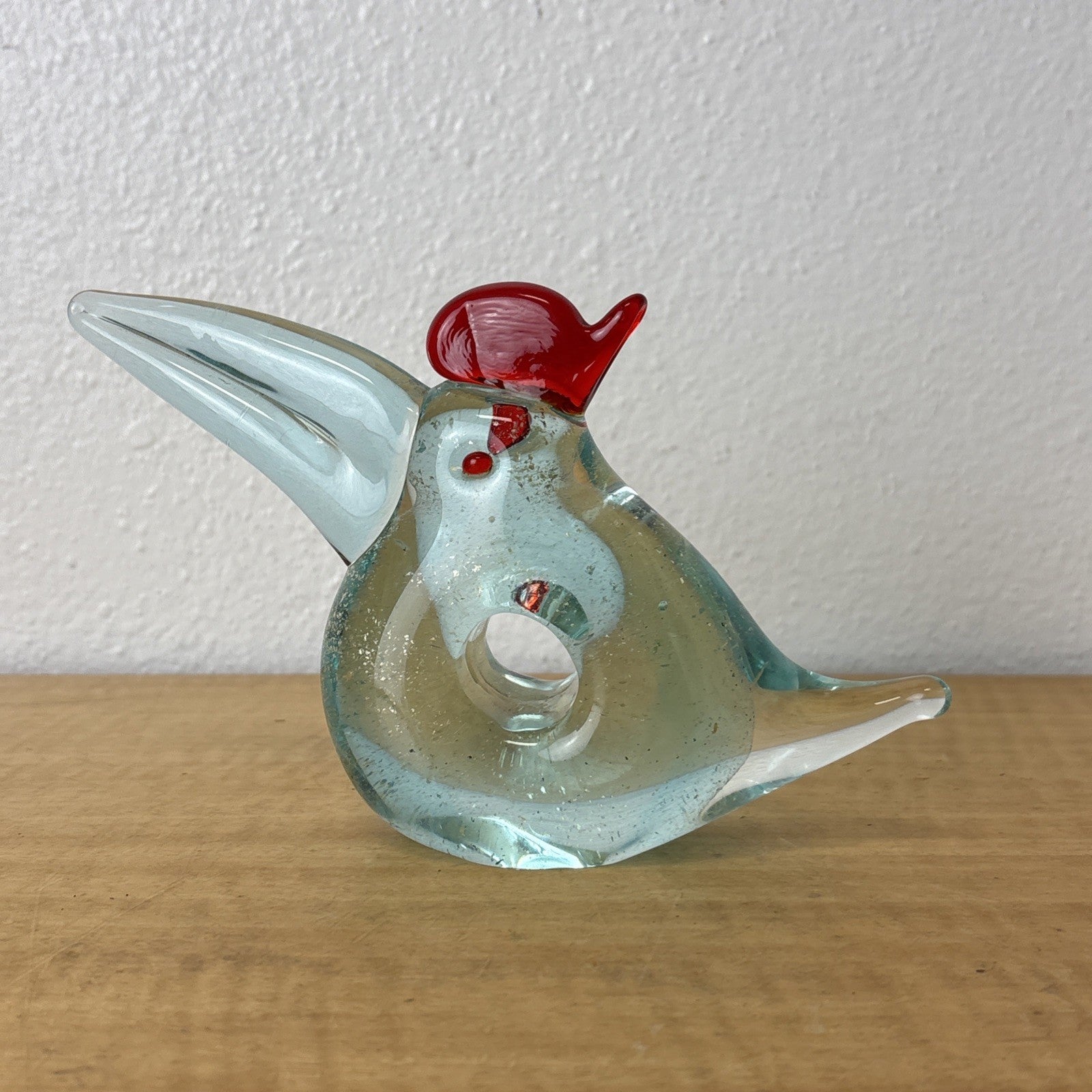 Murano Art Glass Style Toucan Paperweight w/ Open Hole & Gold Flecks