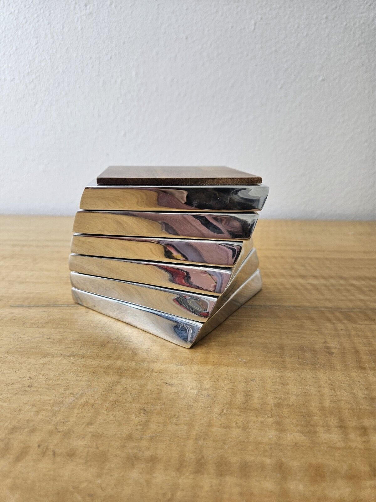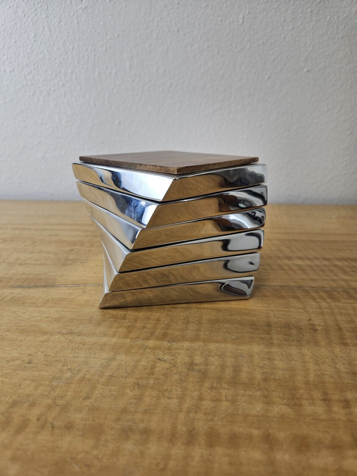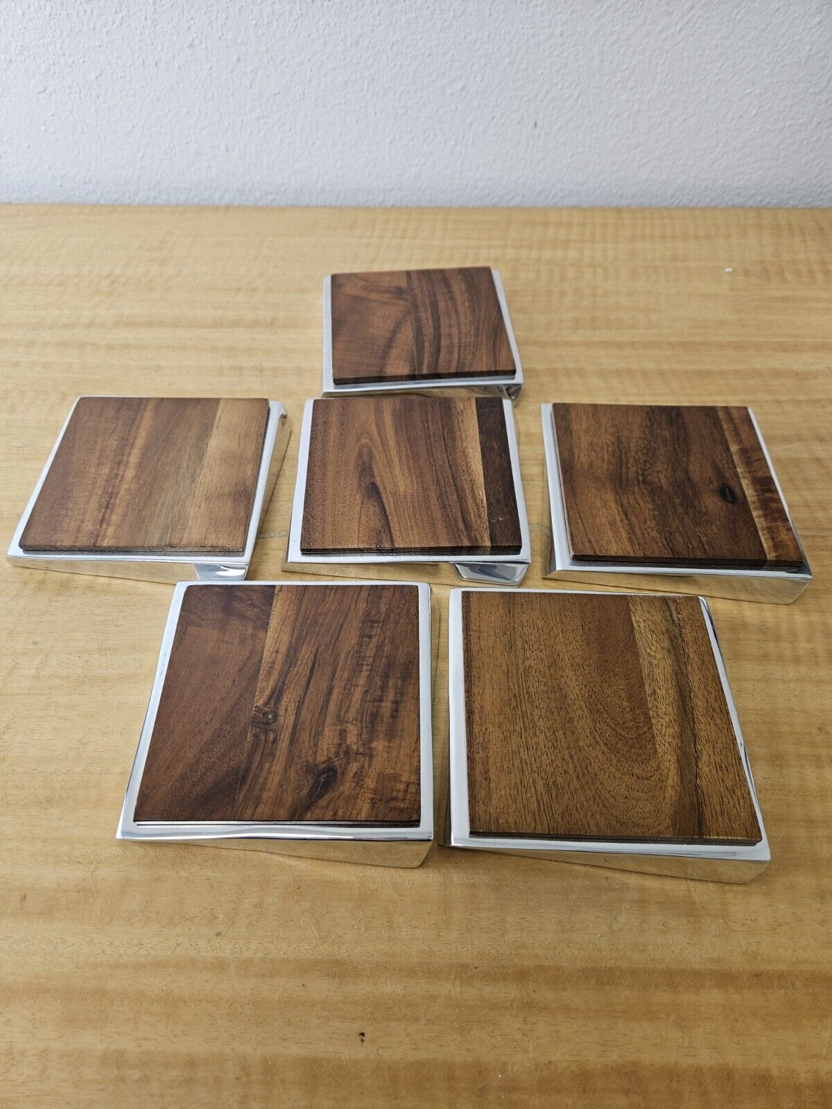 Nambe Twist Coaster, Set of 6, Acacia Wood Metal, 4″ Heavy MT0021 2008 Lou henry