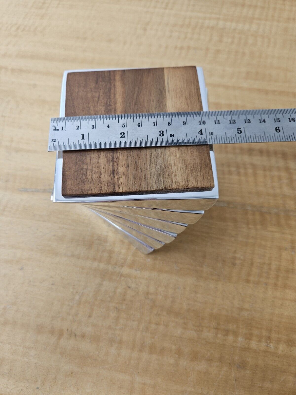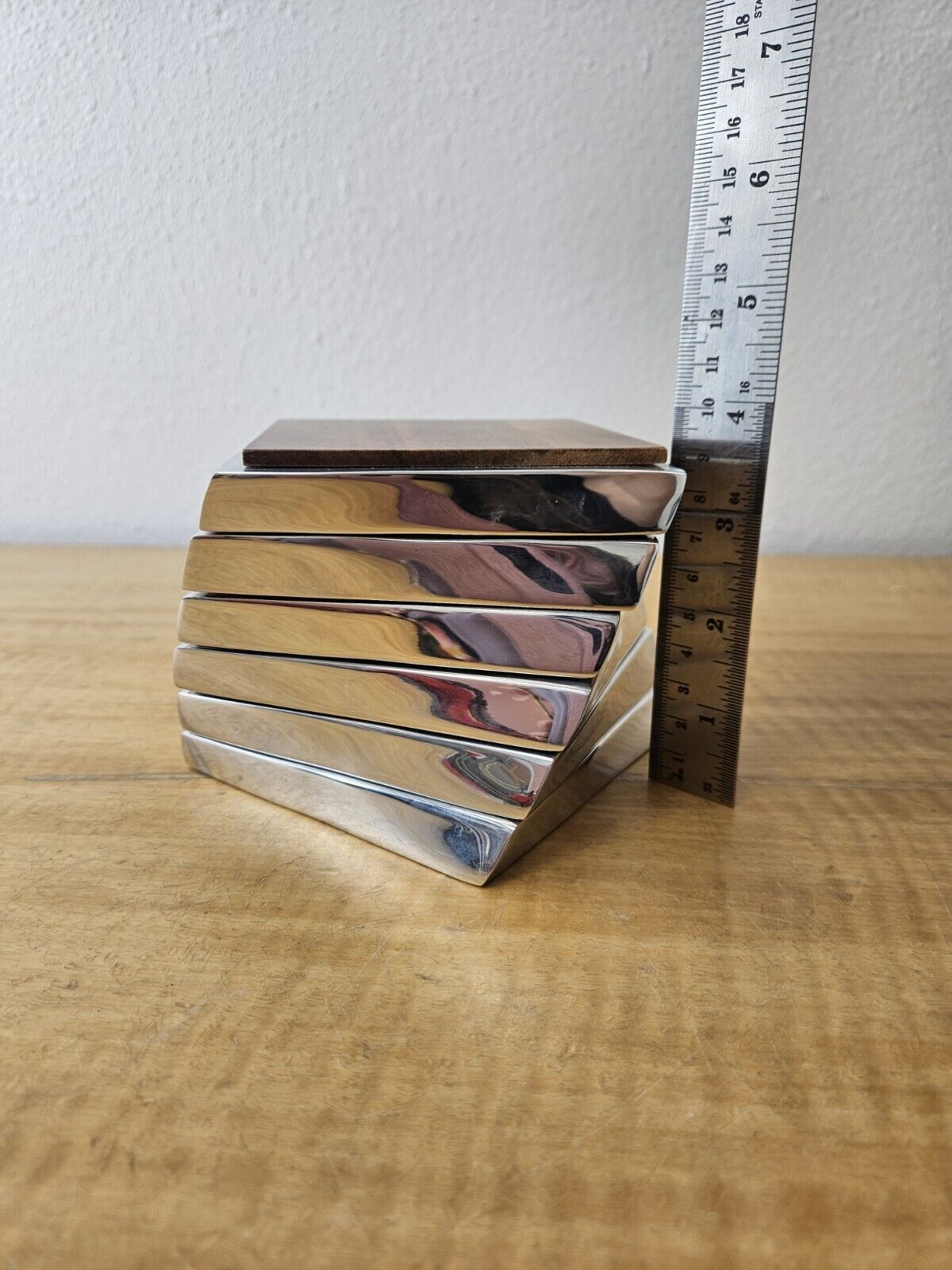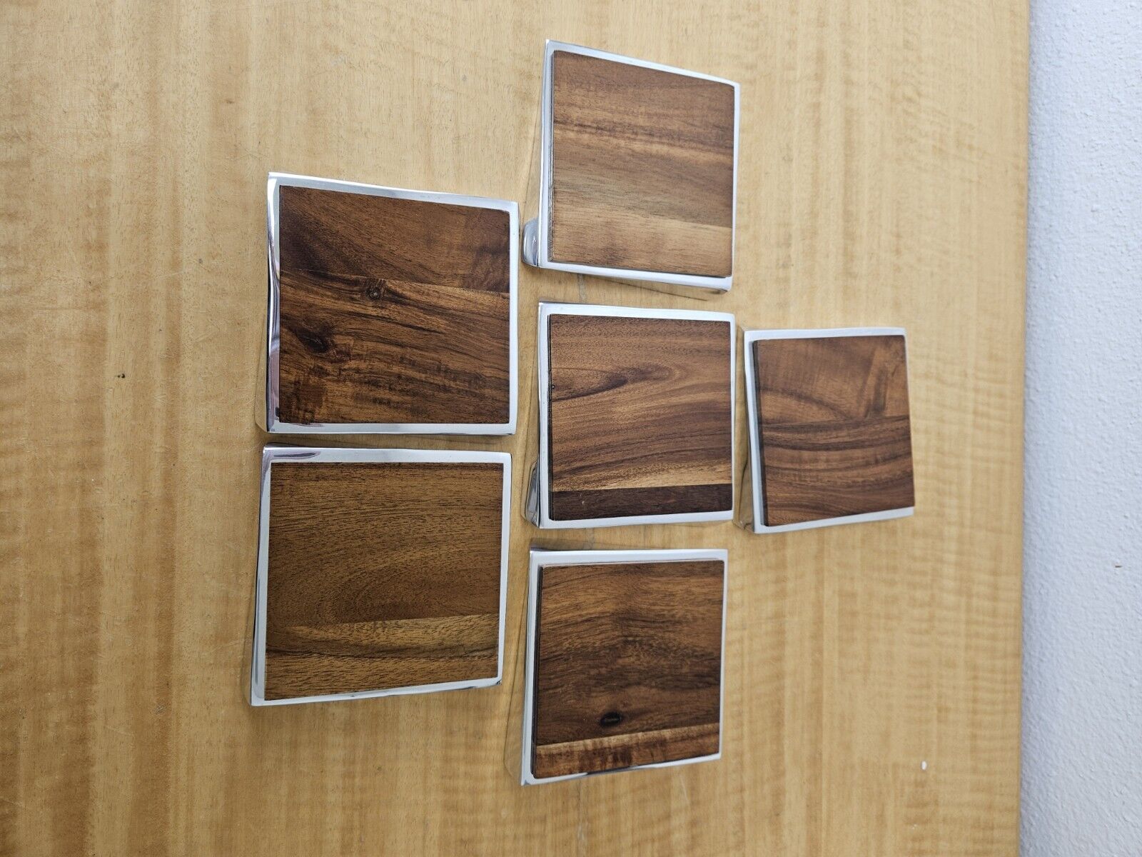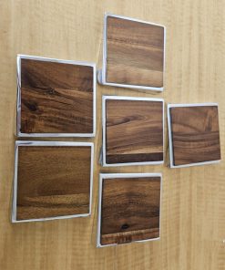 Nambe Twist Coaster, Set of 6, Acacia Wood Metal, 4″ Heavy MT0021 2008 Lou henry