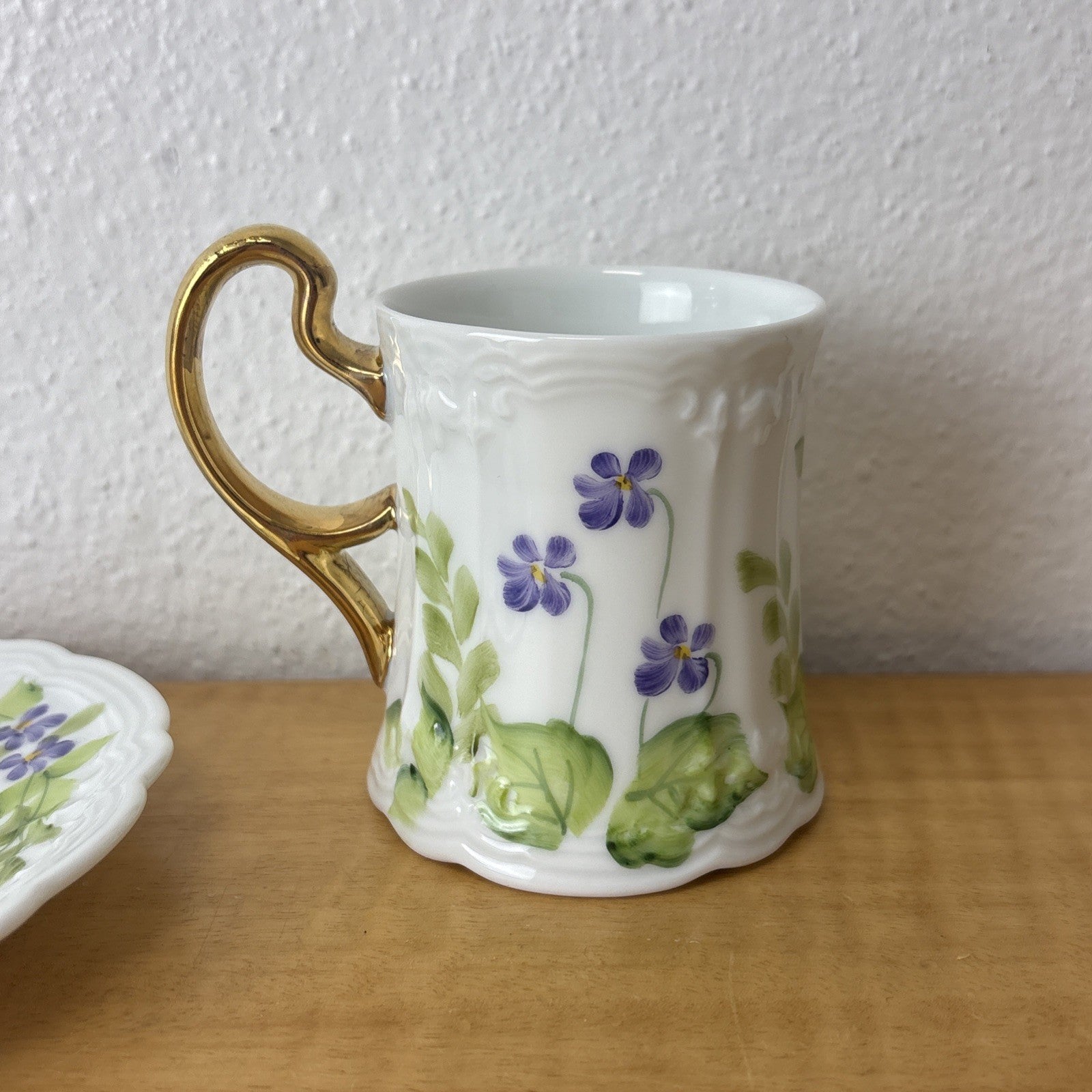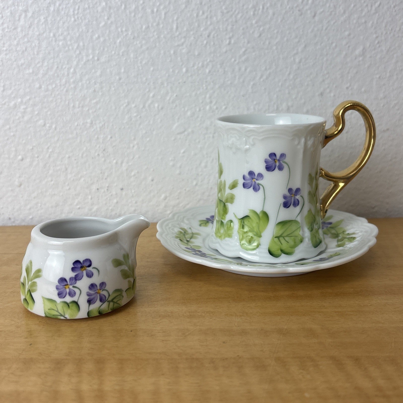 Nancy Gribble Handpainted Tea Set | Creamer, Saucer, and Cup