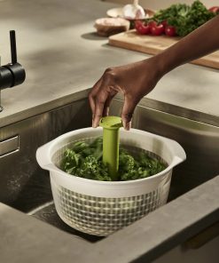 This set of two colanders feature clever vertical handles that leave one hand free for operating the tap and ensure they remain upright and stable if placed in a sink.