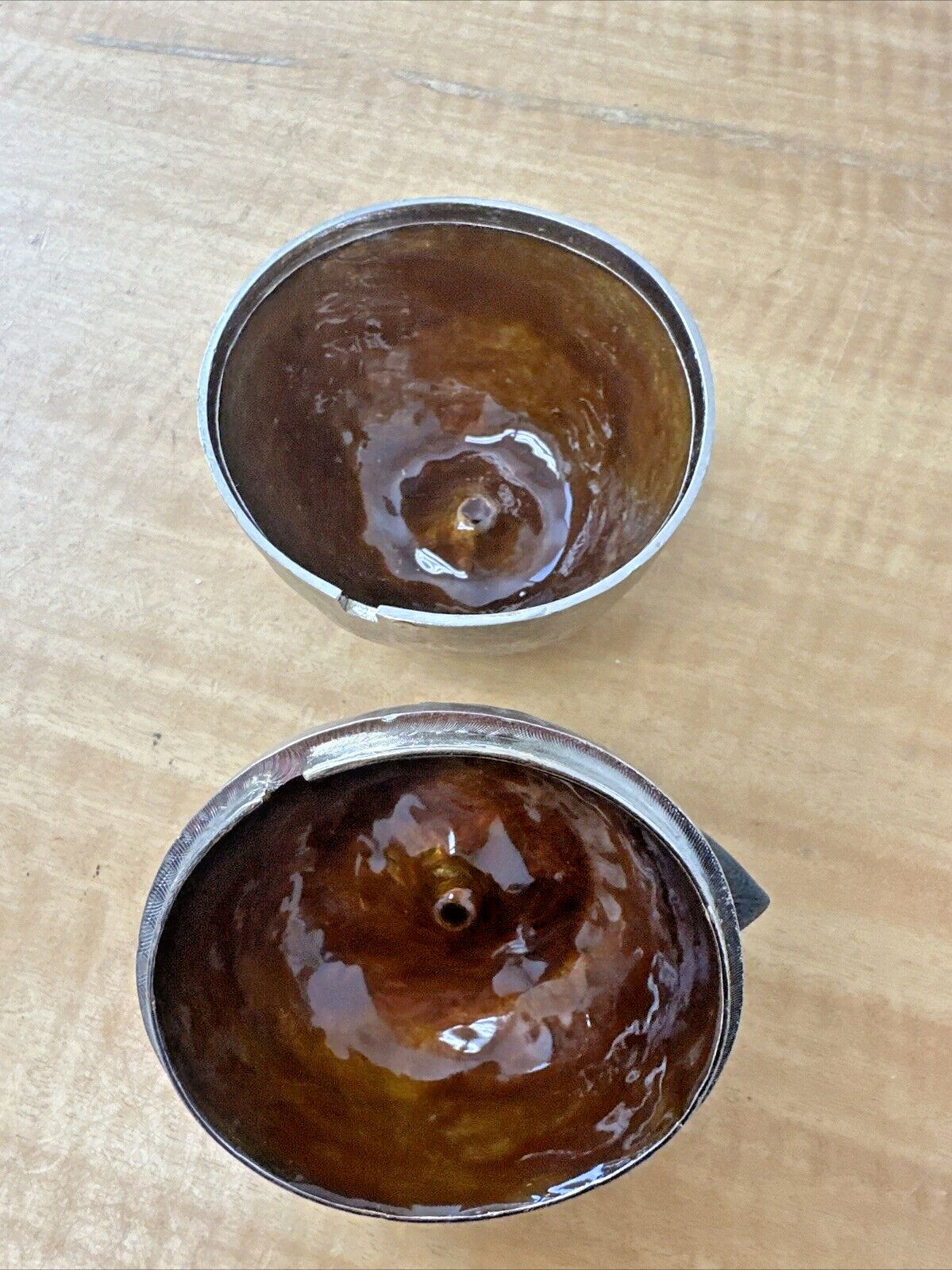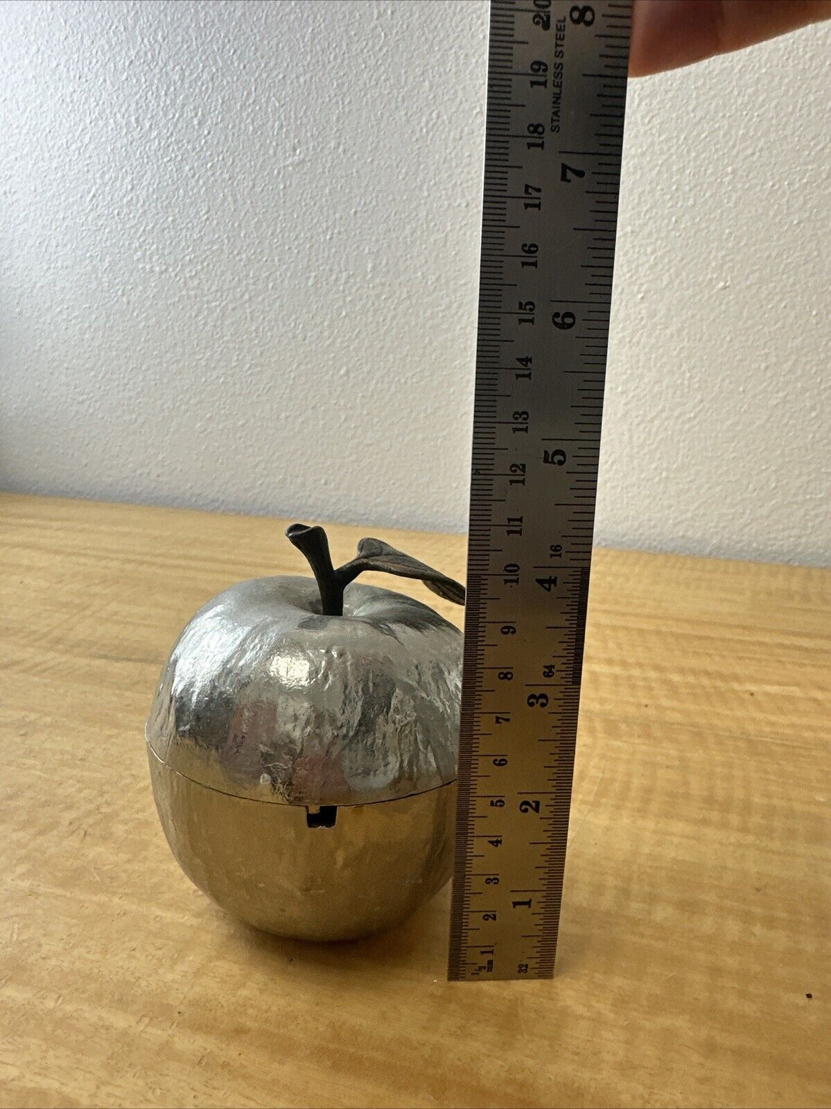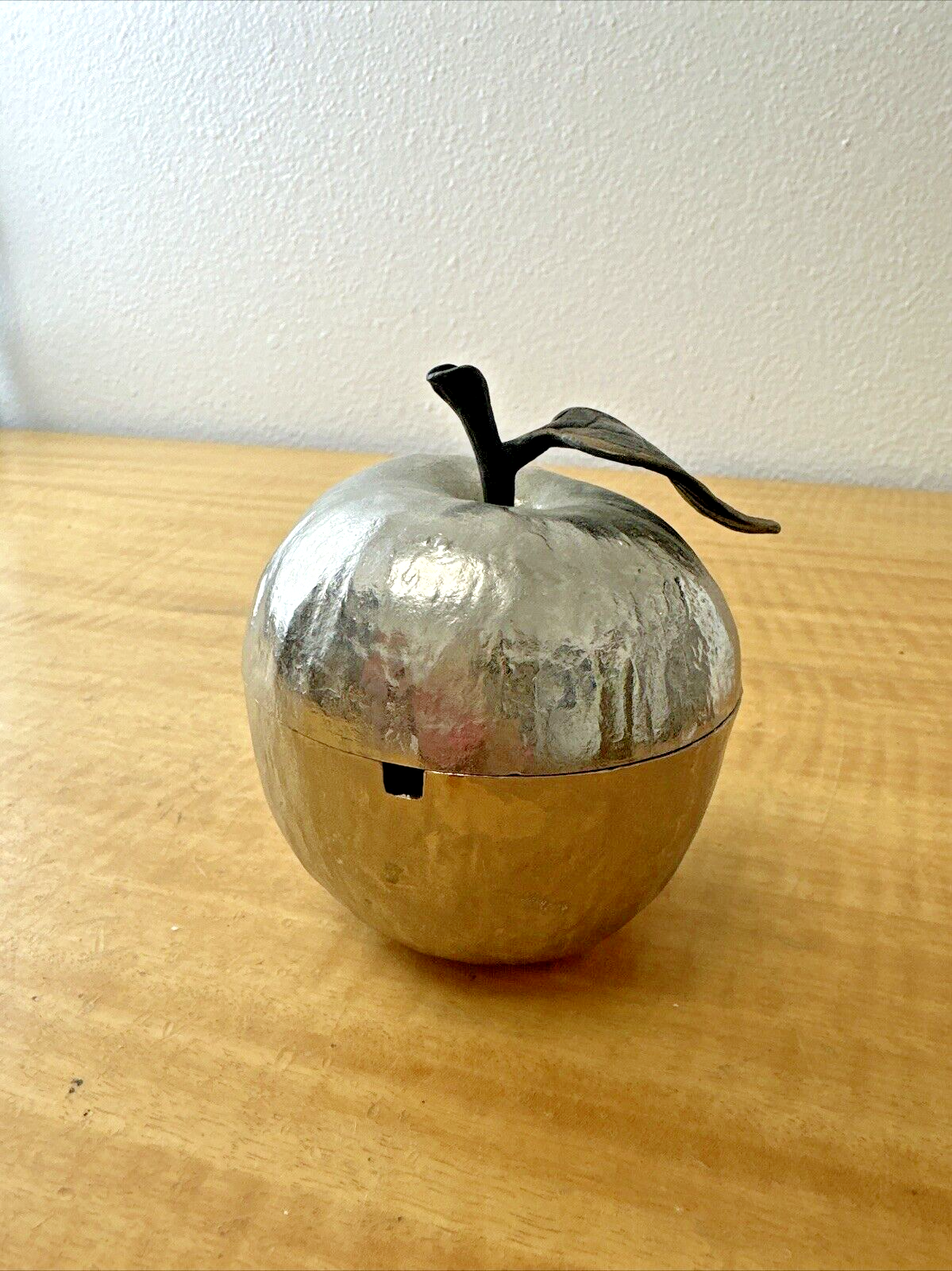 Nickel Plated Michael Aram Apple ~ Honey Pot Silver Color with Brass Leaf