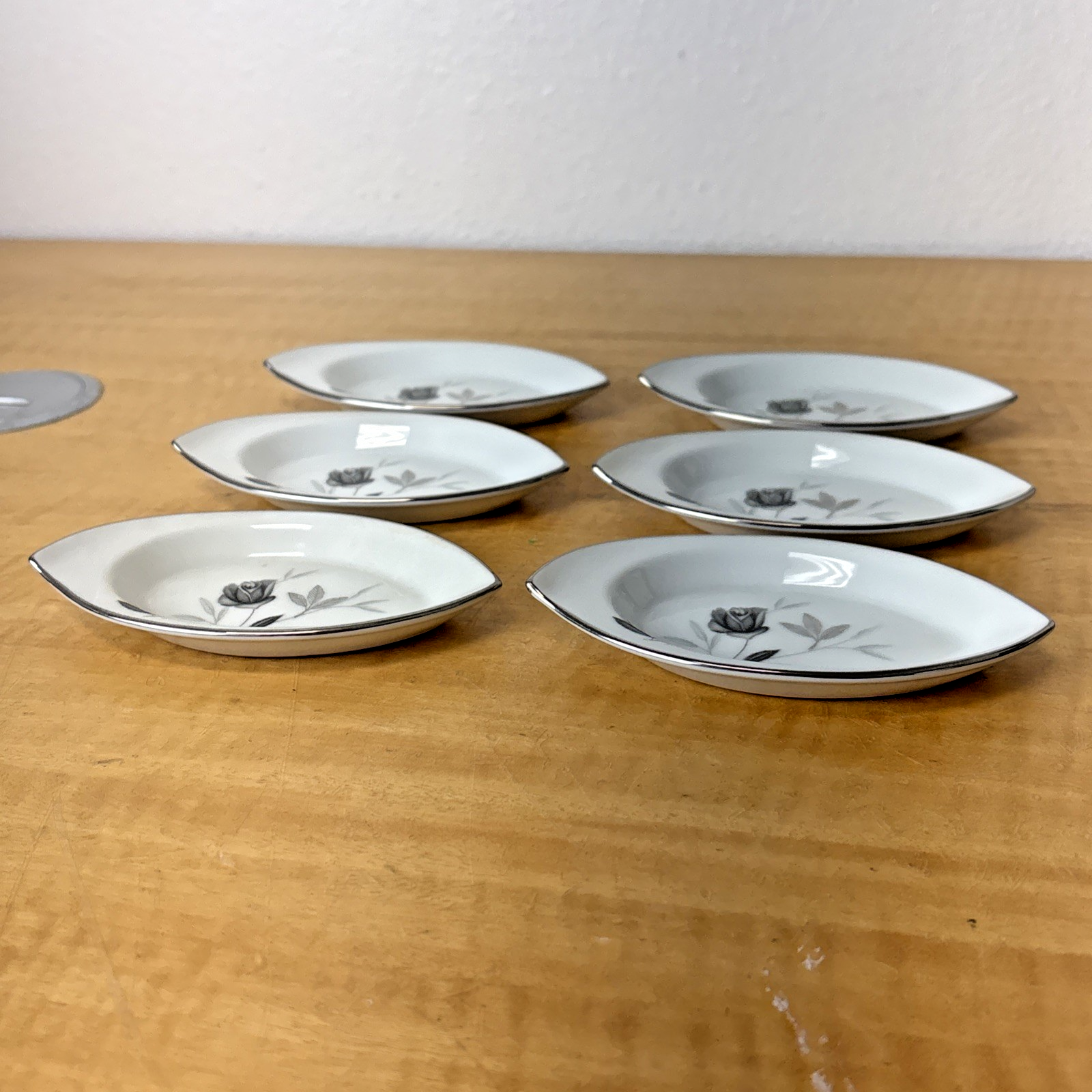 Noritake Rosamor 5851 Small Ashtray Silver White Gray Floral Set of 6