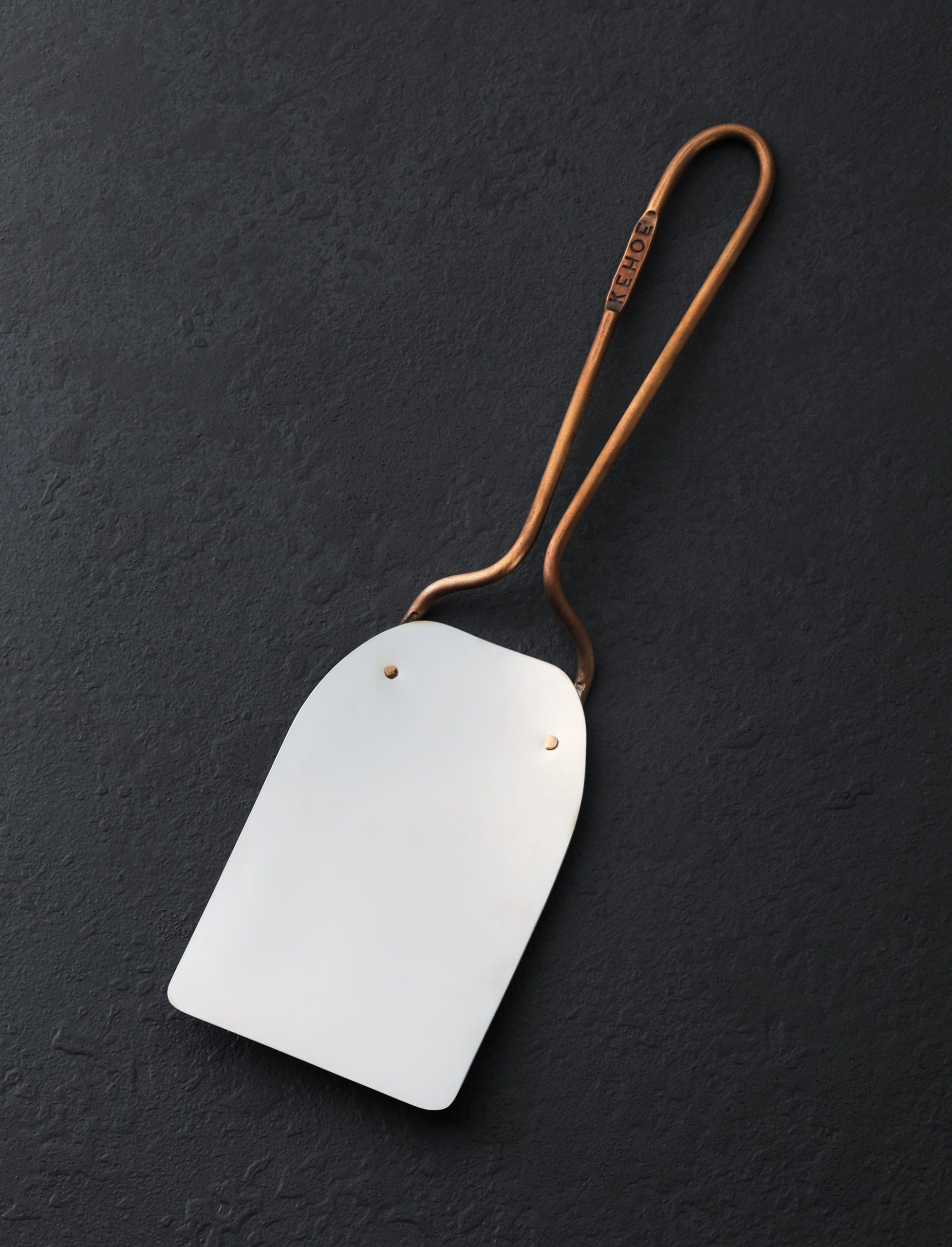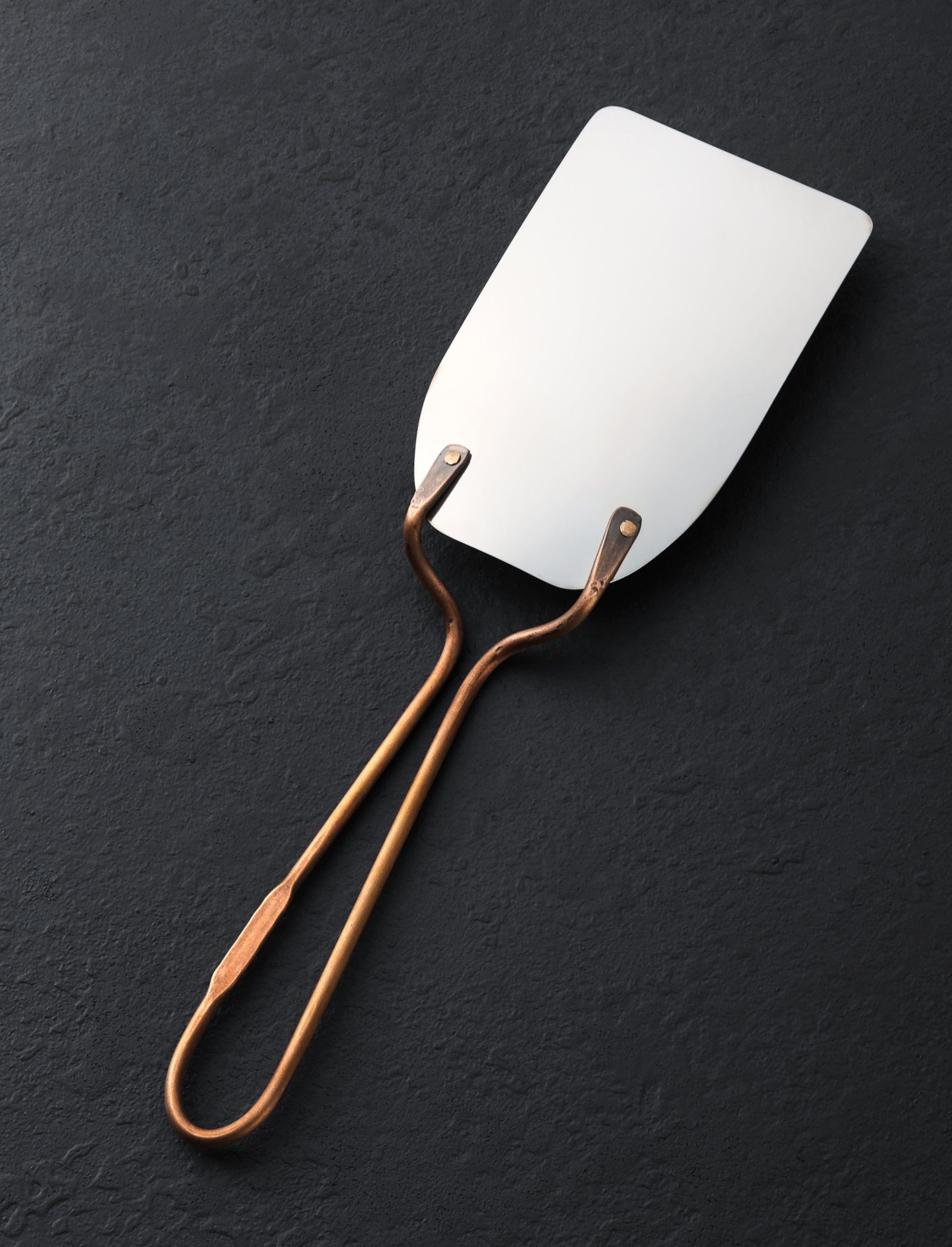 There is nothing the One-Way Flexible Stainless Spatula by Dennis Kehoe cannot do. Strong yet very thin, these spatulas flex with your every movement, yet not downward, making them ideal for delicately lifting and flipping heavy burgers or keeping your freshly baked cookies intact. Do not worry about bending the spatula too hard or too far because the construction ensures it will spring back into its sturdy form. Weighing just 1.9oz / 54g, there is no reason to only enjoy this tool at home, why not pack it for your next camping adventure? The open-loop handle not only provides comfort and control, it also enables you to hang and display this handcrafted tool your kitchen.