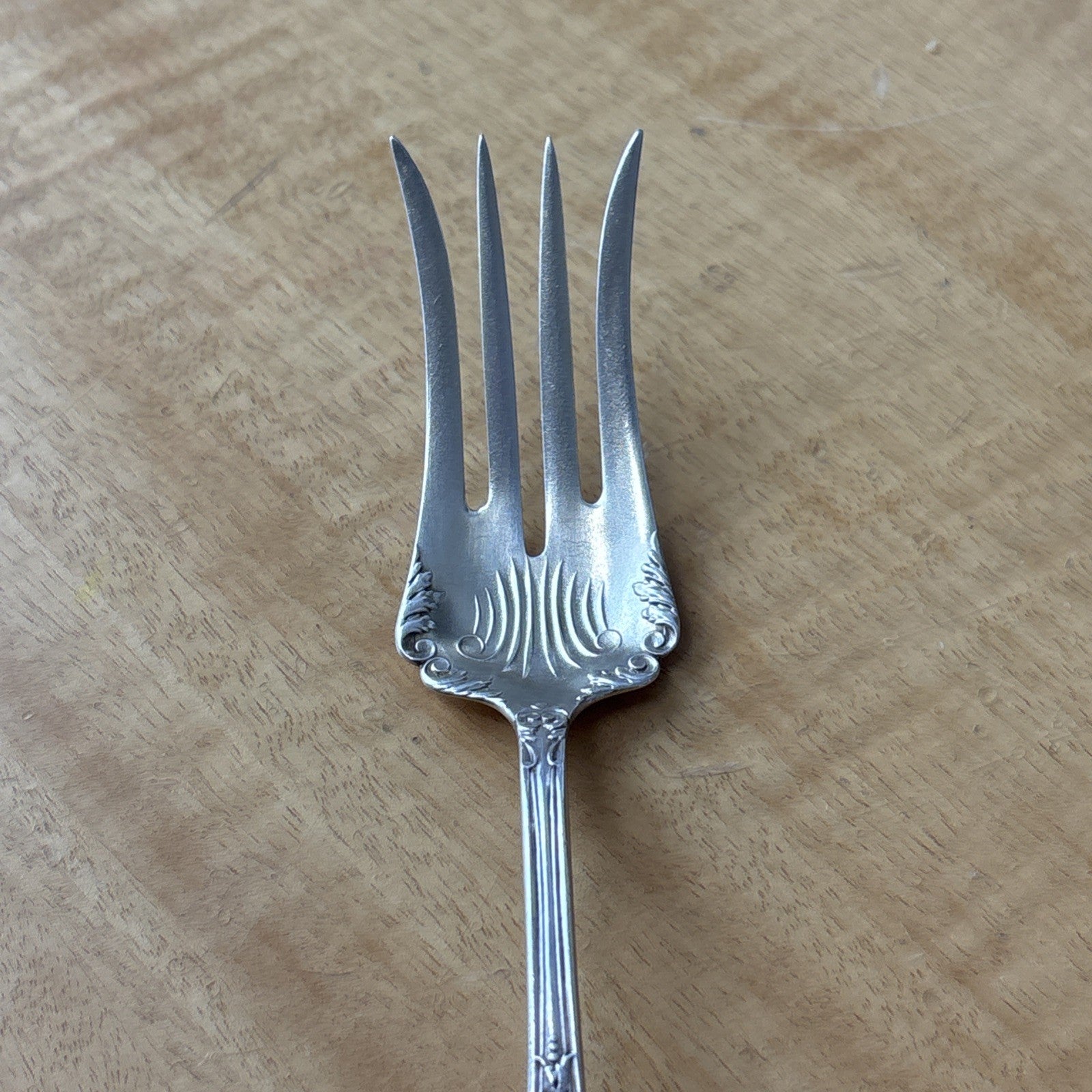 Orante Antique Silverplated Meat Fork Rare E. E. Muller XXS T. E. Marking