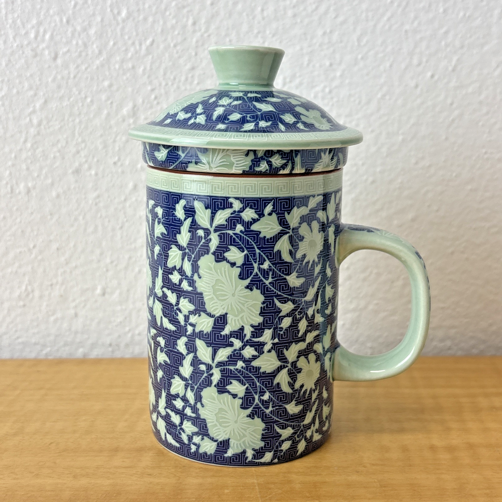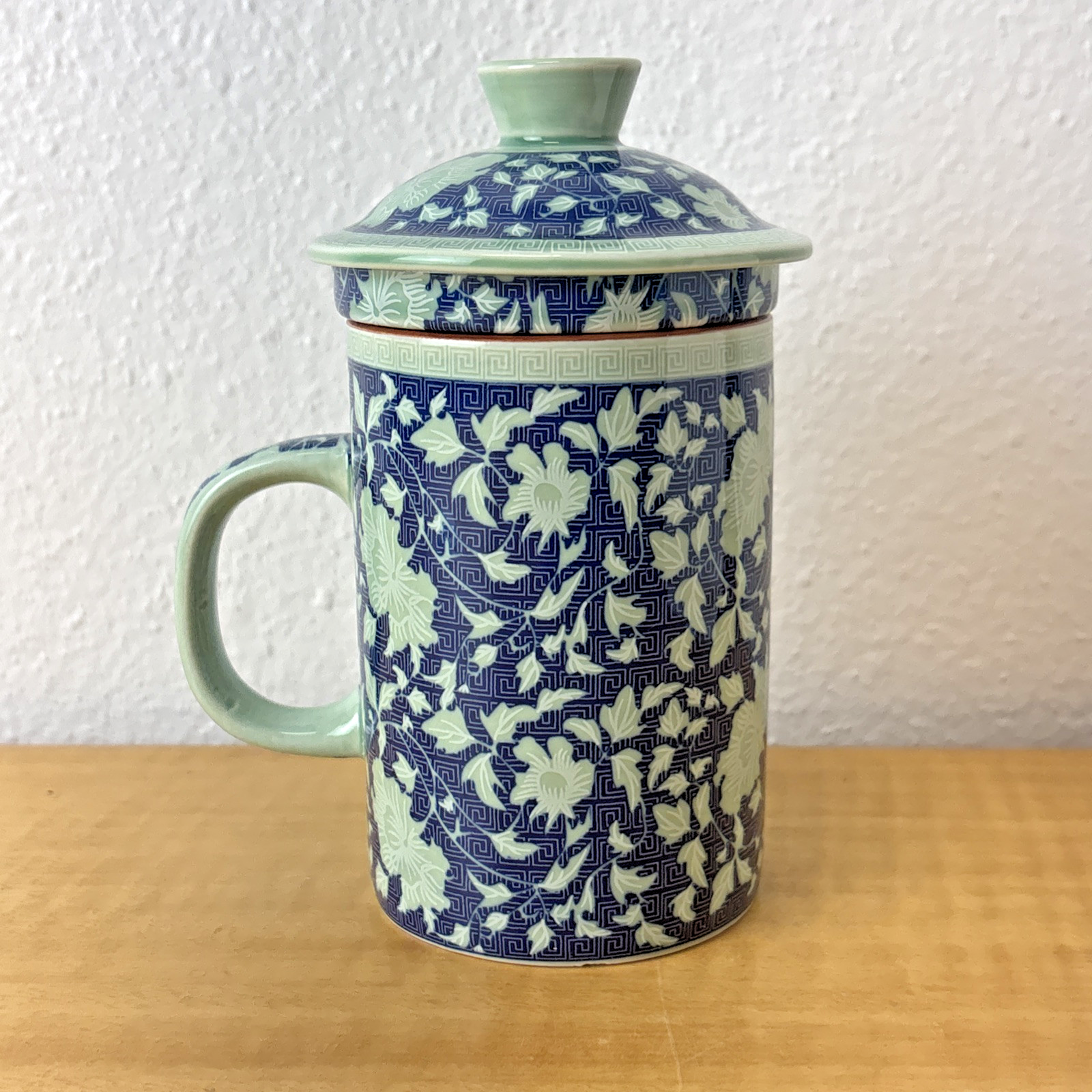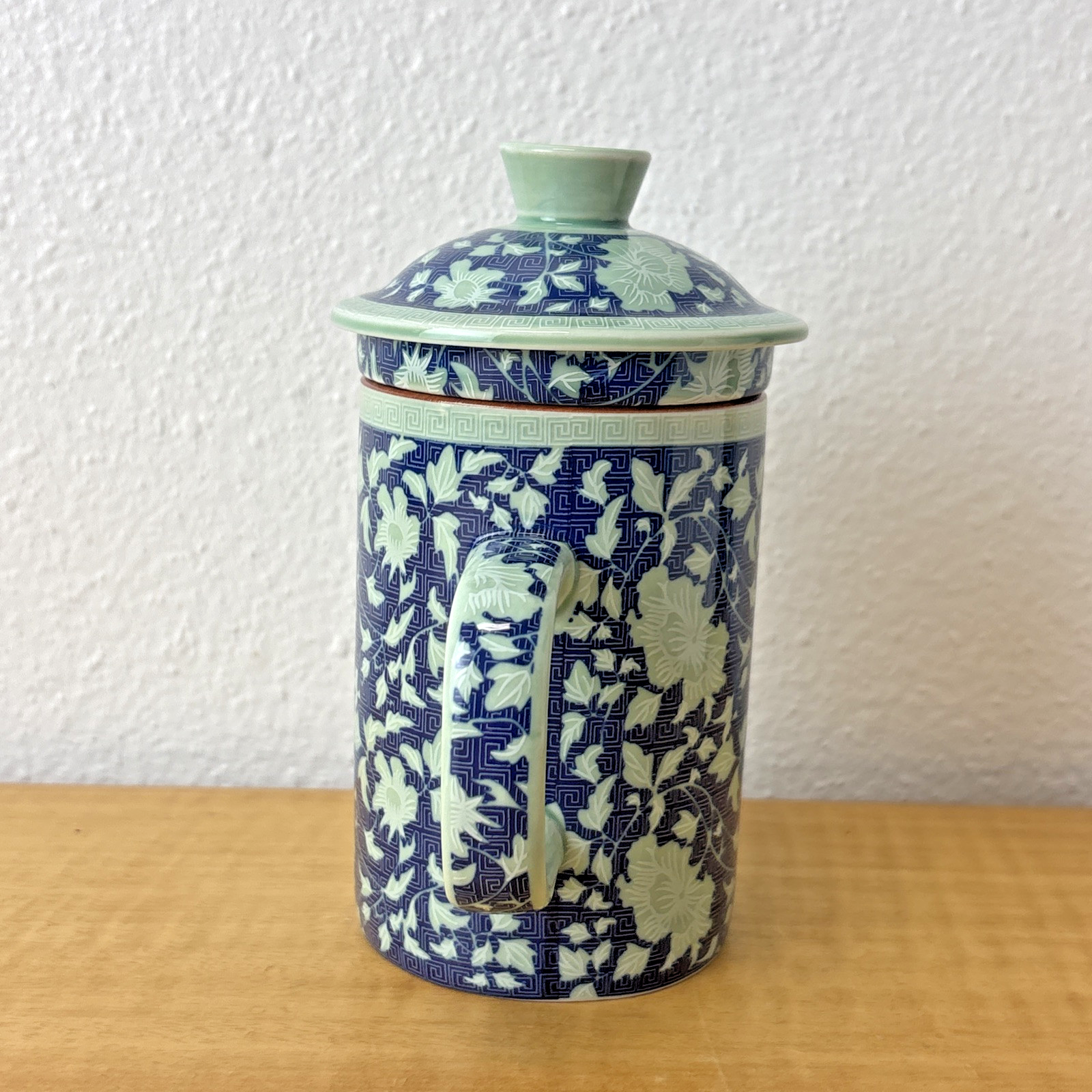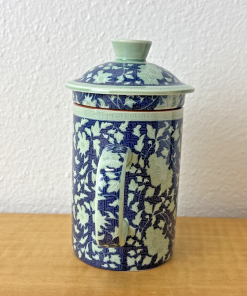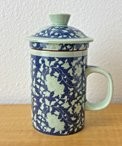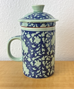 Oriental Tea Mug With Lid & Infuser Chinese Blue White porcelain
