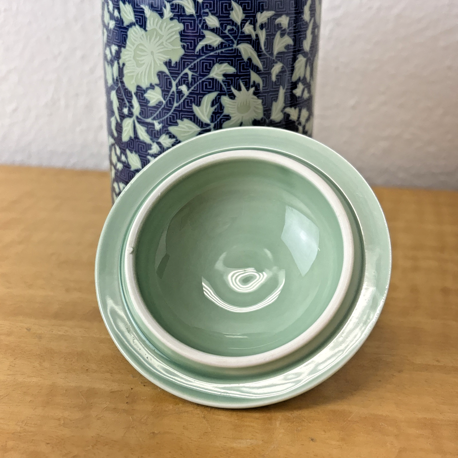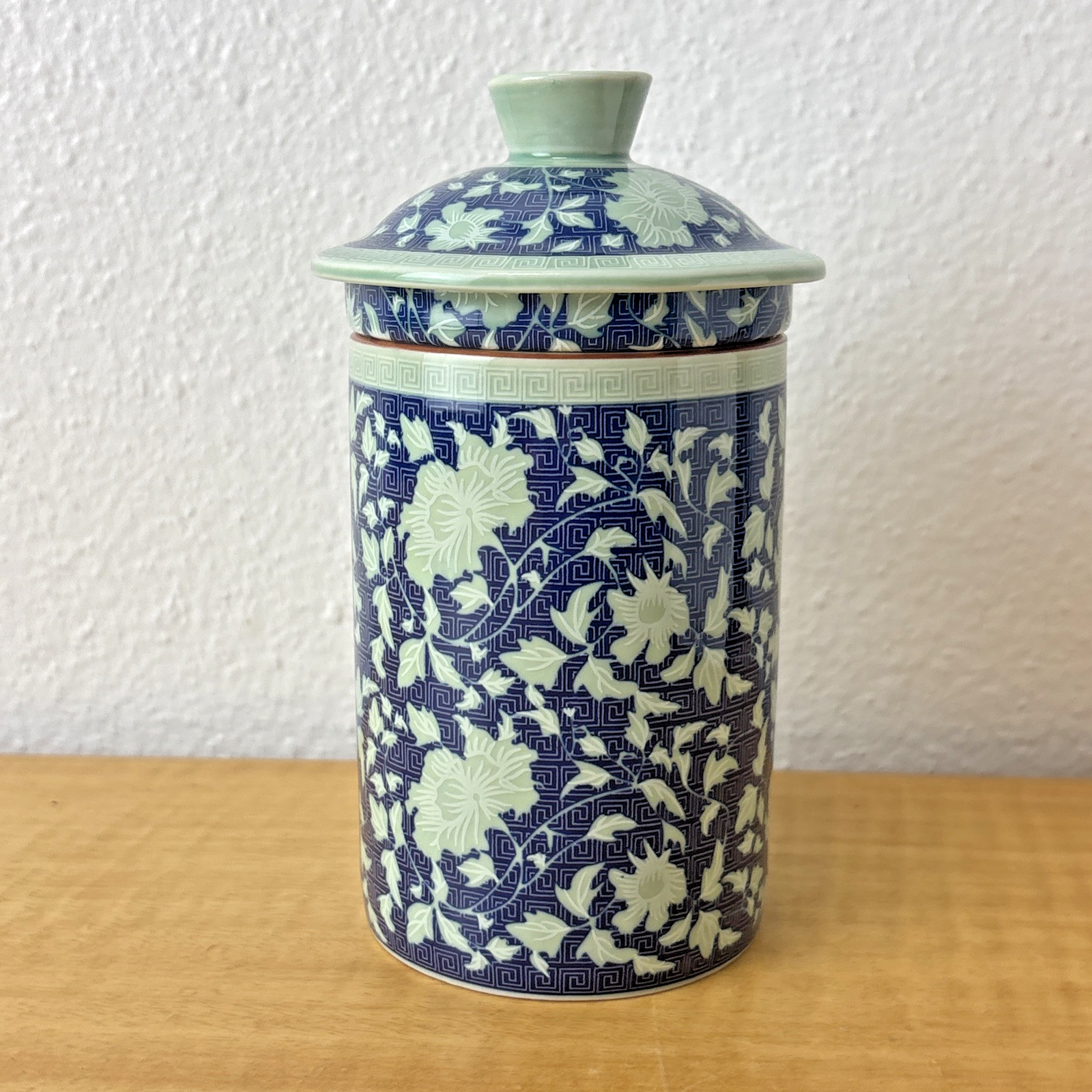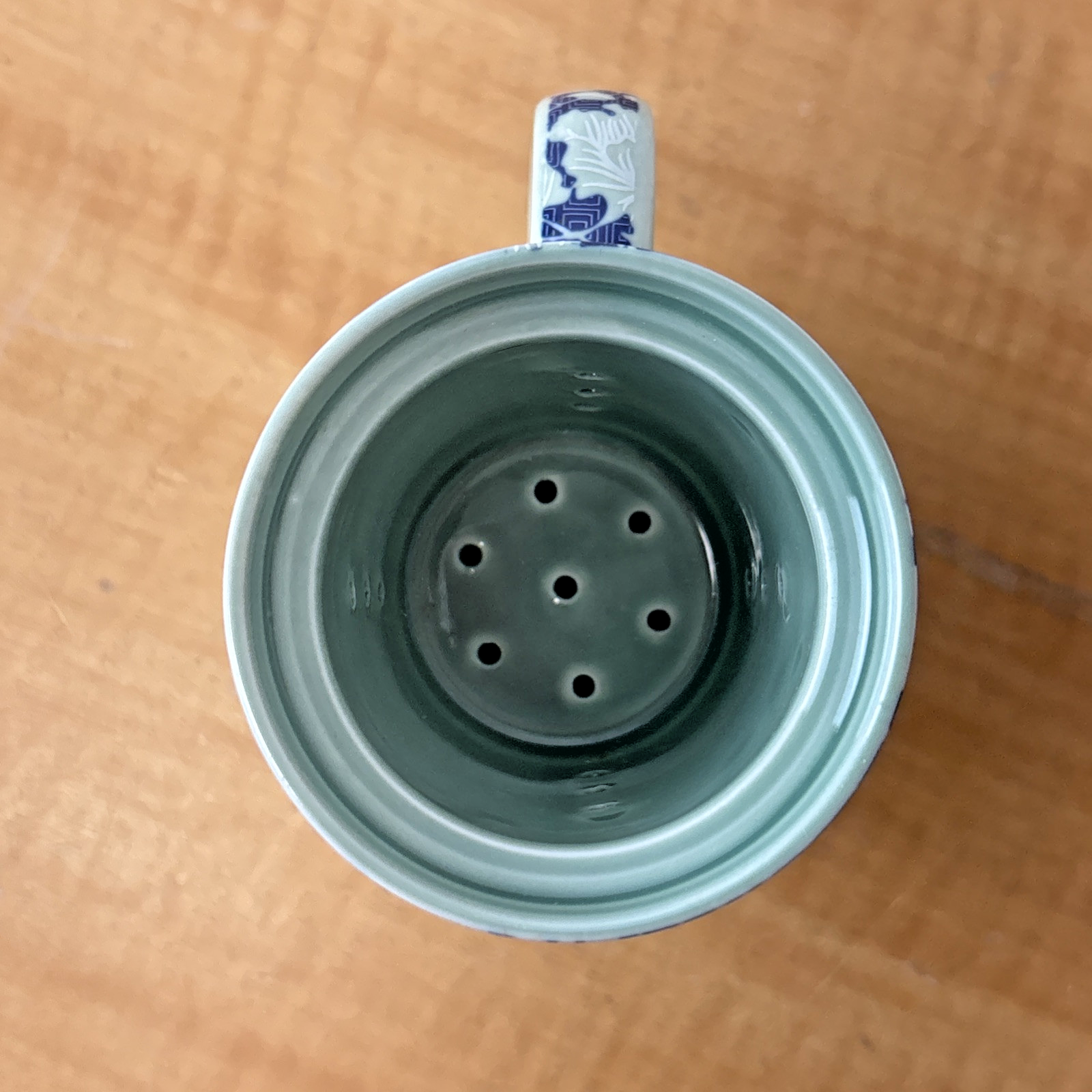 Oriental Tea Mug With Lid & Infuser Chinese Blue White porcelain