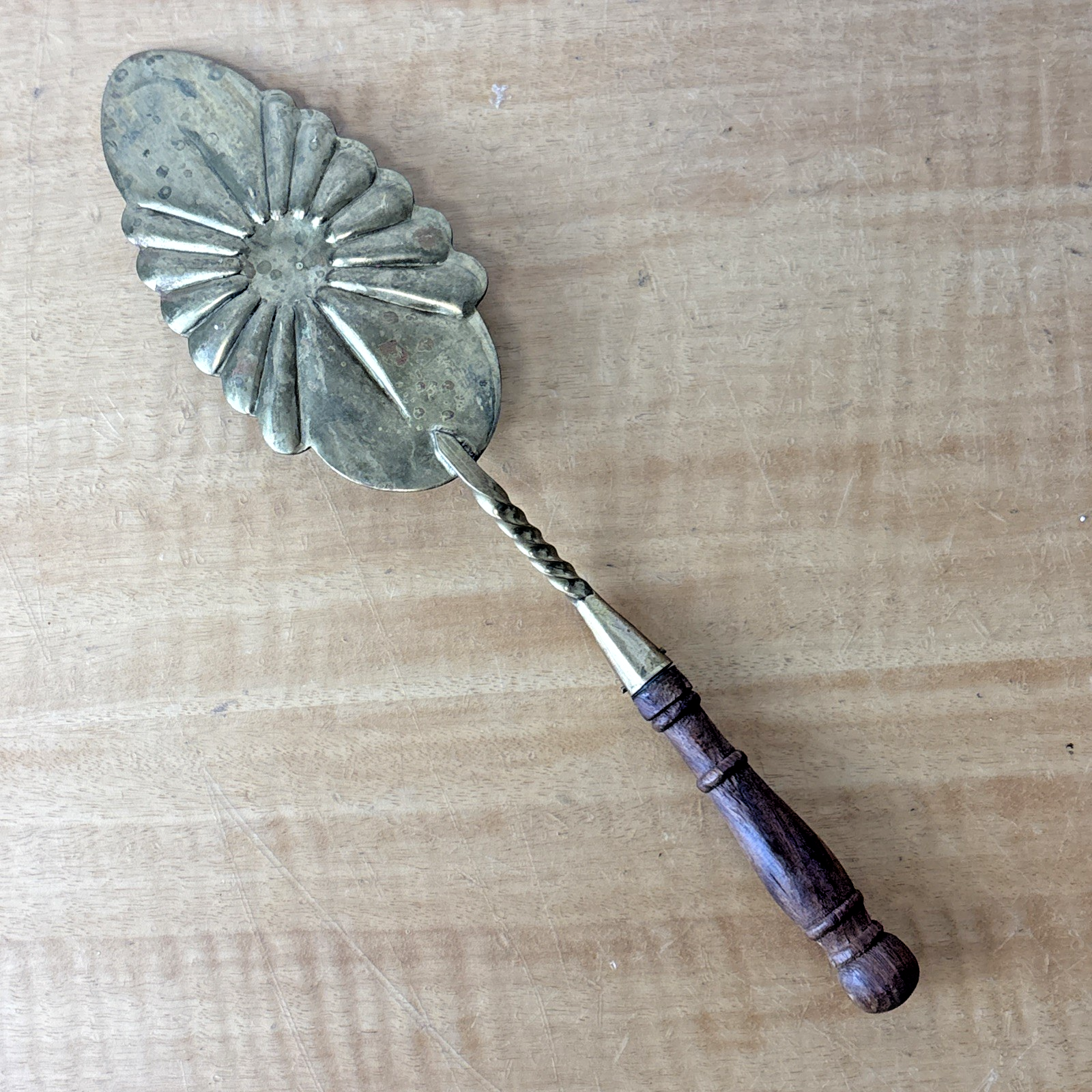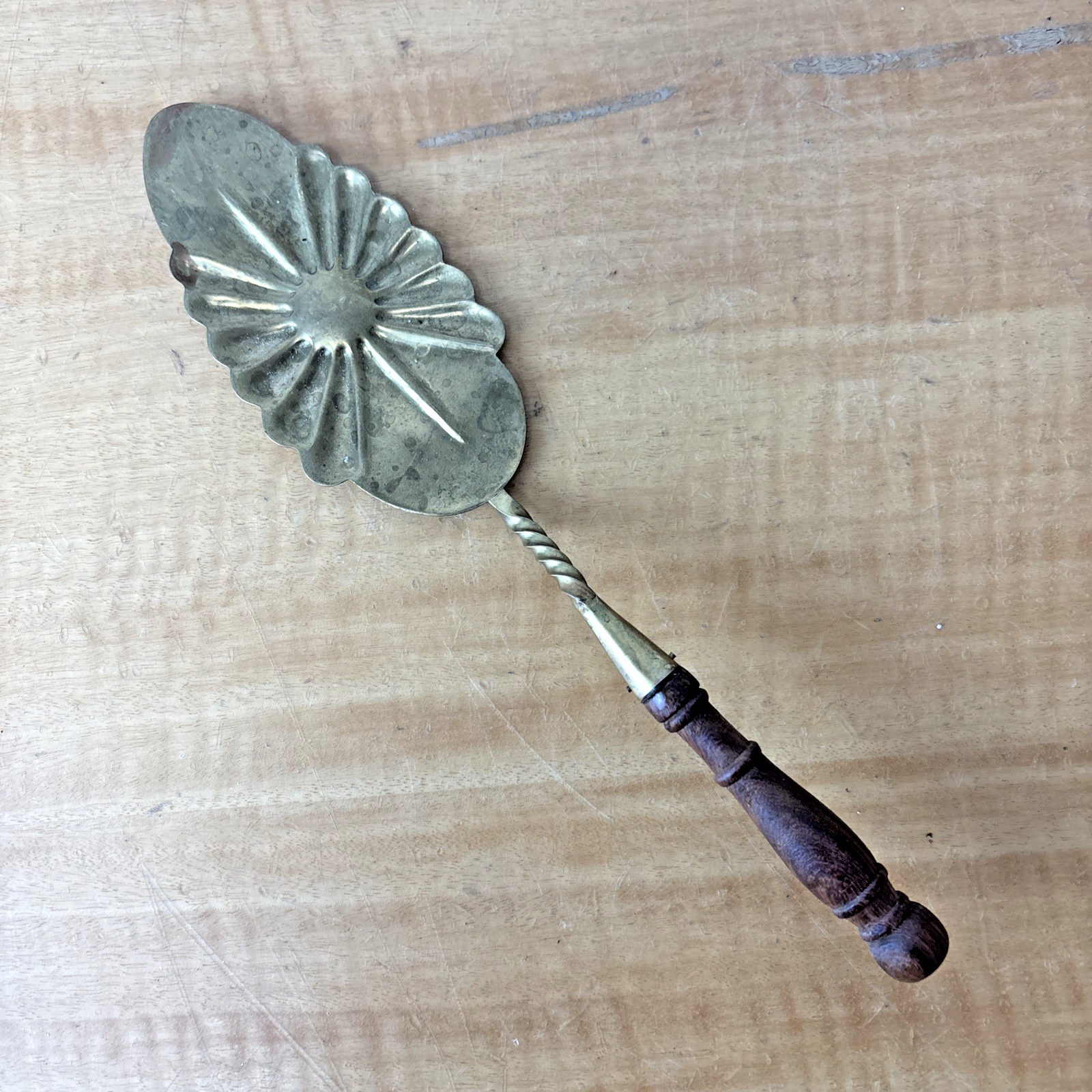Ornate Vintage Brass and Wood Cake Knife