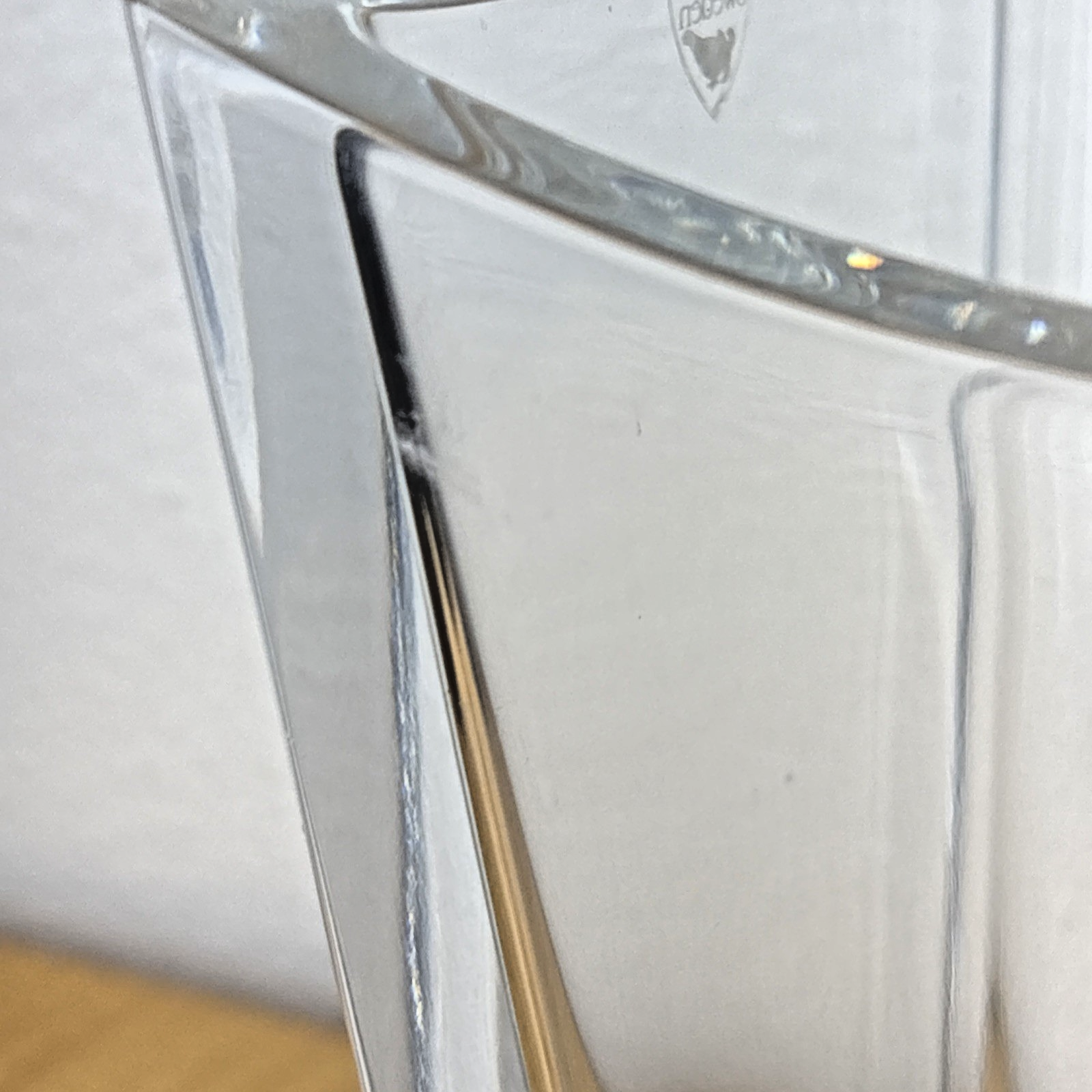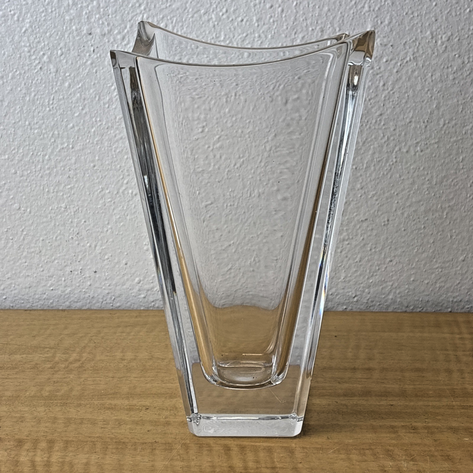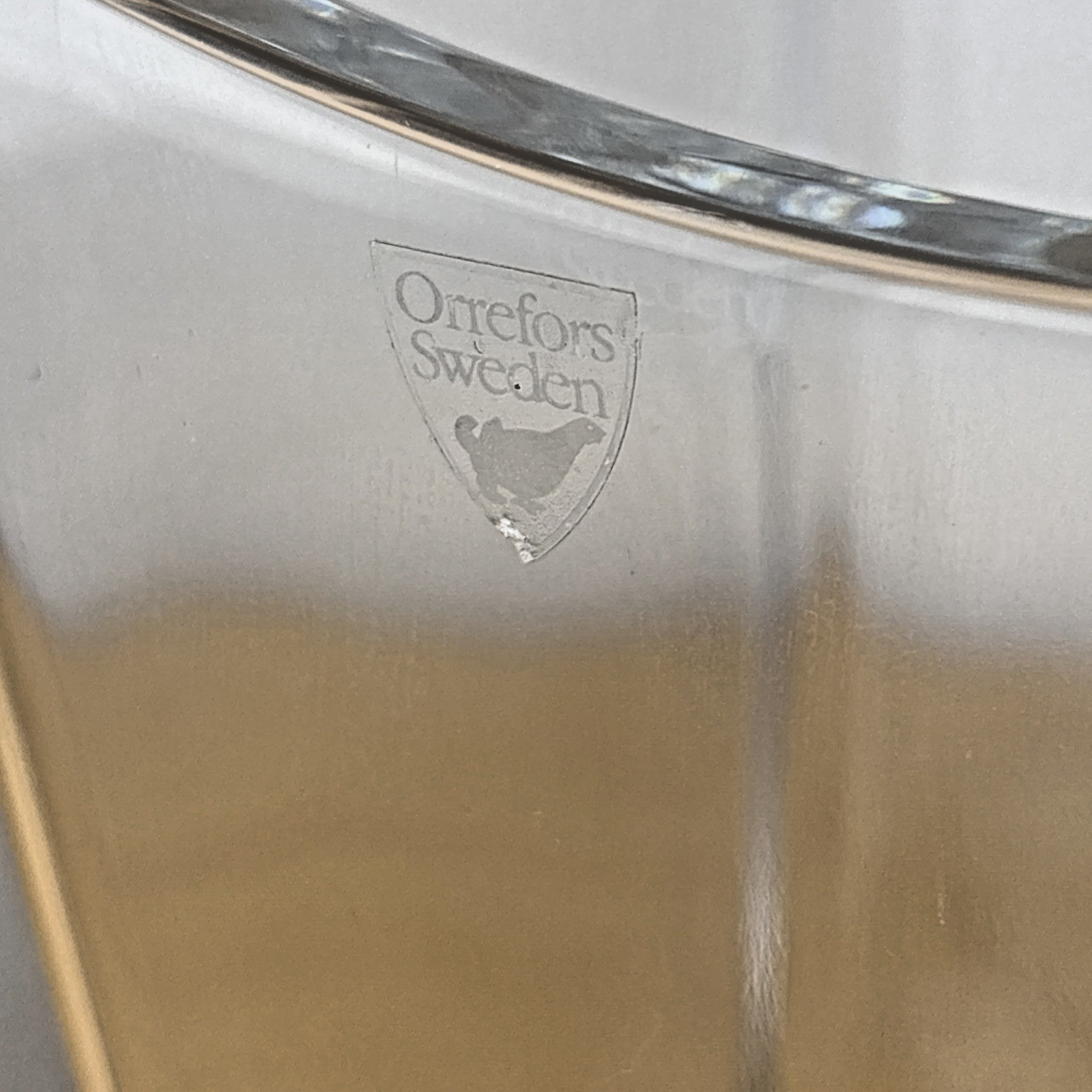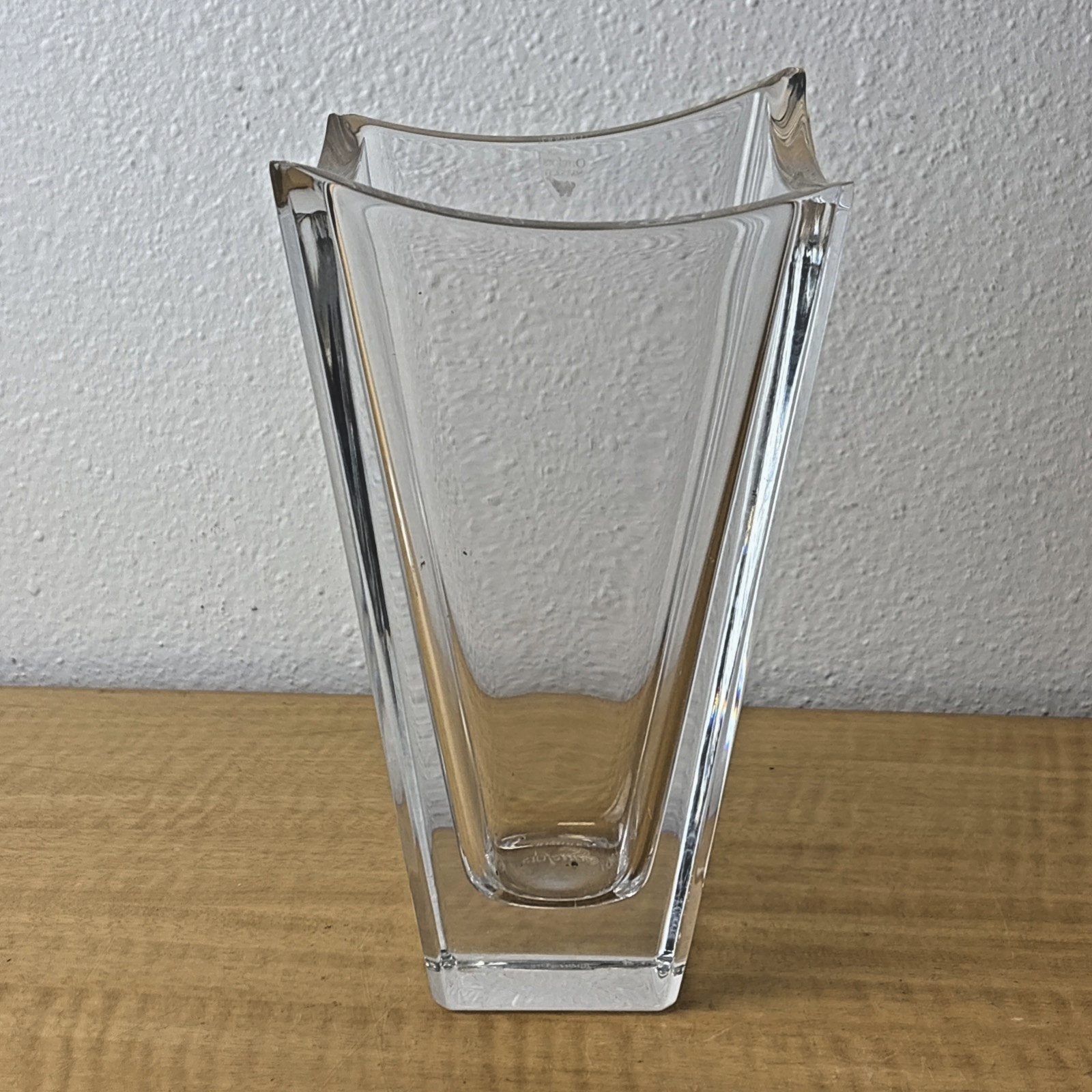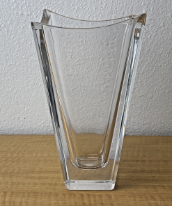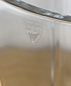The vase is meticulously fashioned from high-quality crystal, boasting a pristine clear finish that accentuates its sleek lines and intricate details. Originating from Sweden, this original Orrefors creation is a testament to exquisite craftsmanship and timeless appeal.