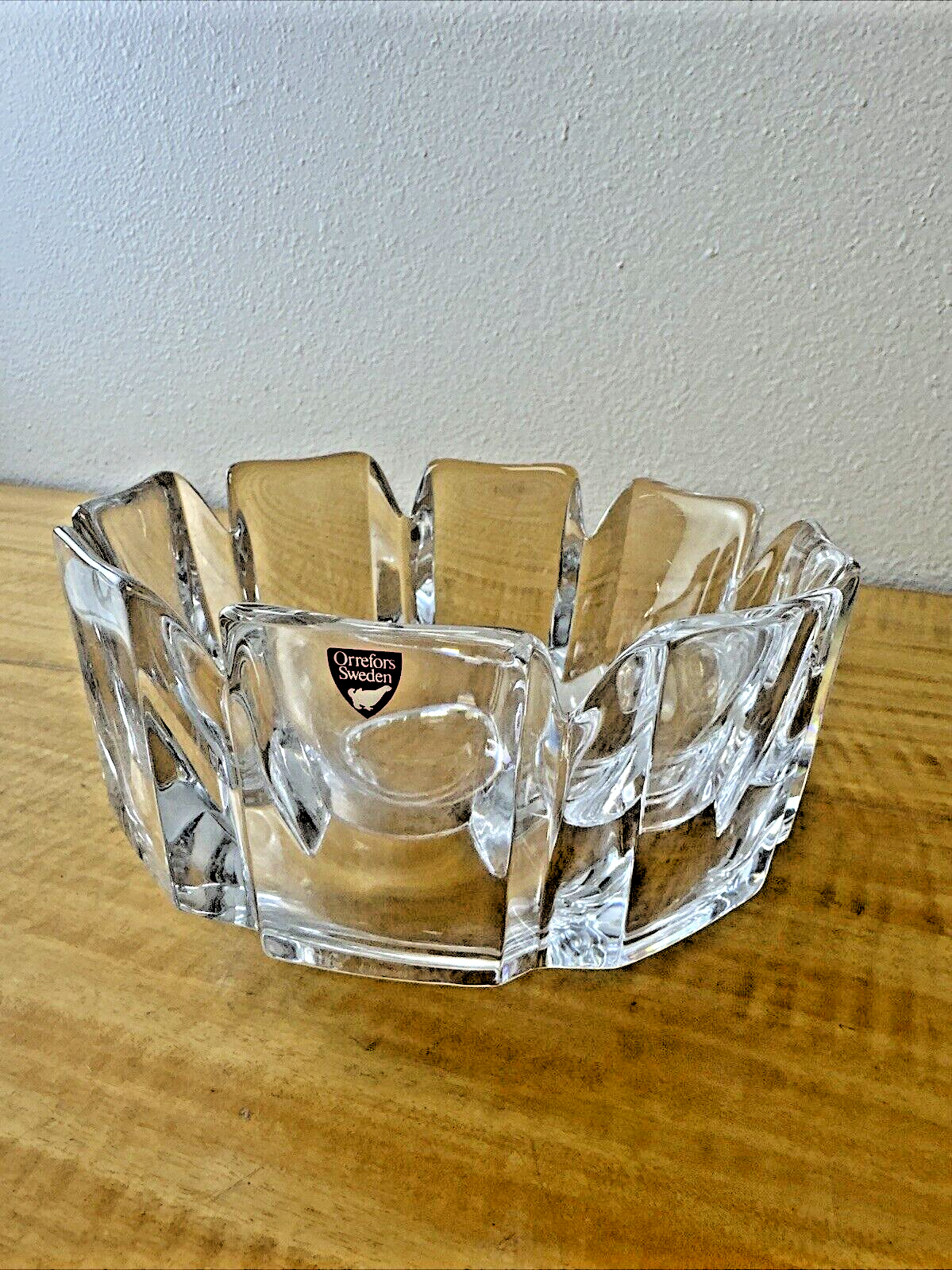 ORREFORS SWEDEN CORONA CRYSTAL BOWL LARS HELLSTEN 7-1/2” Signed