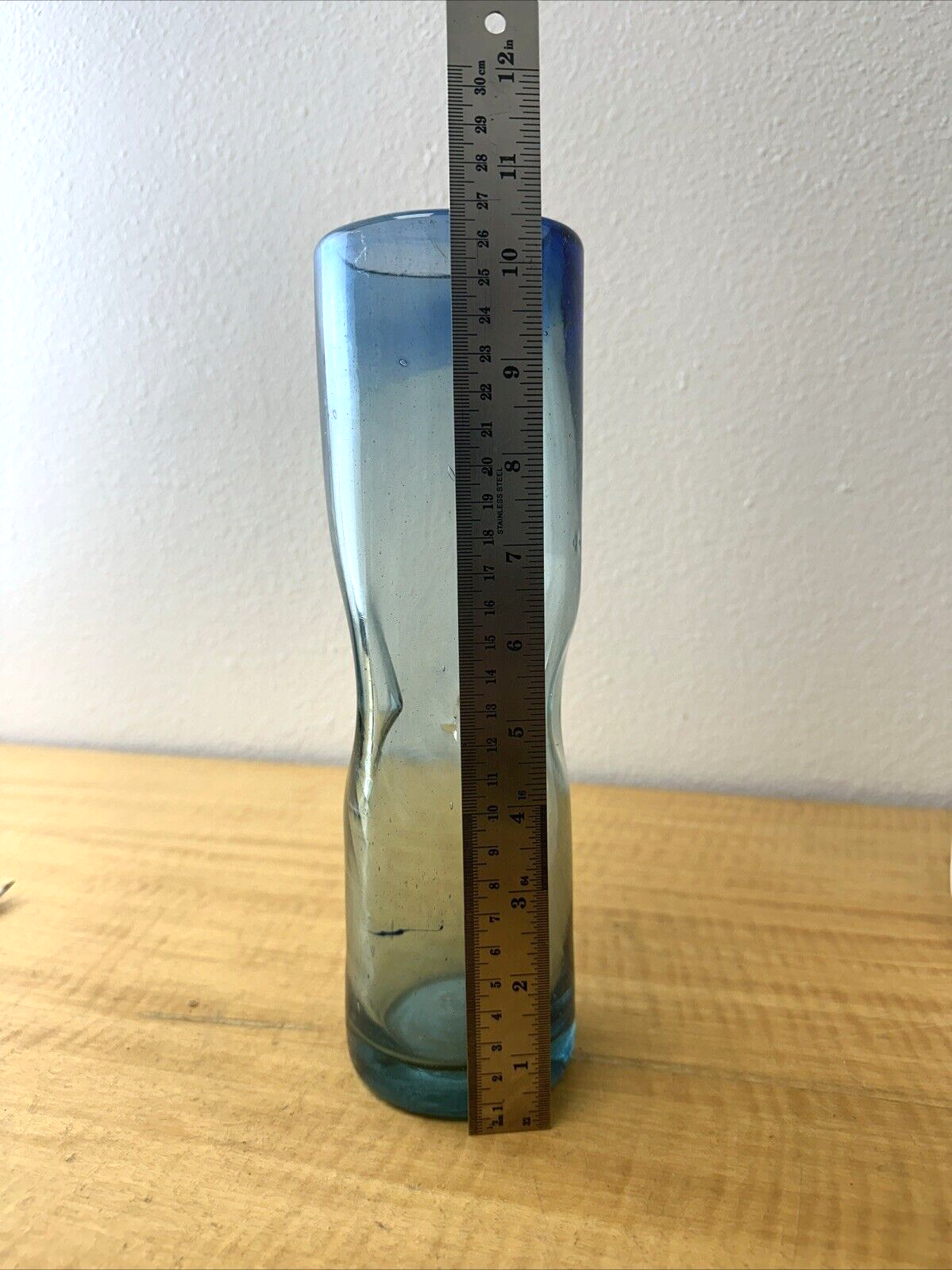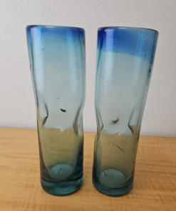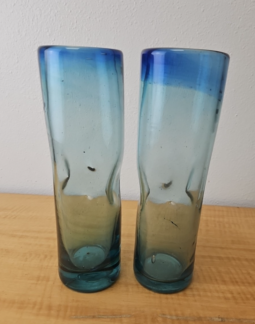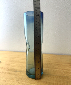 Pair of Hand Blown Gradient Blue Art Glass Vases 10.5×3″