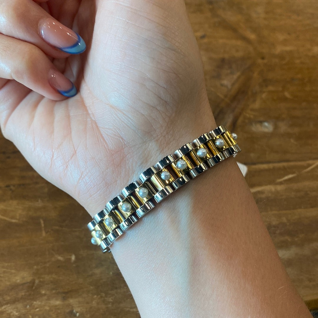 HJANE Two Toned Pearl Wristwatch Chain Bracelet | Water Resistant | Hypoallergenic