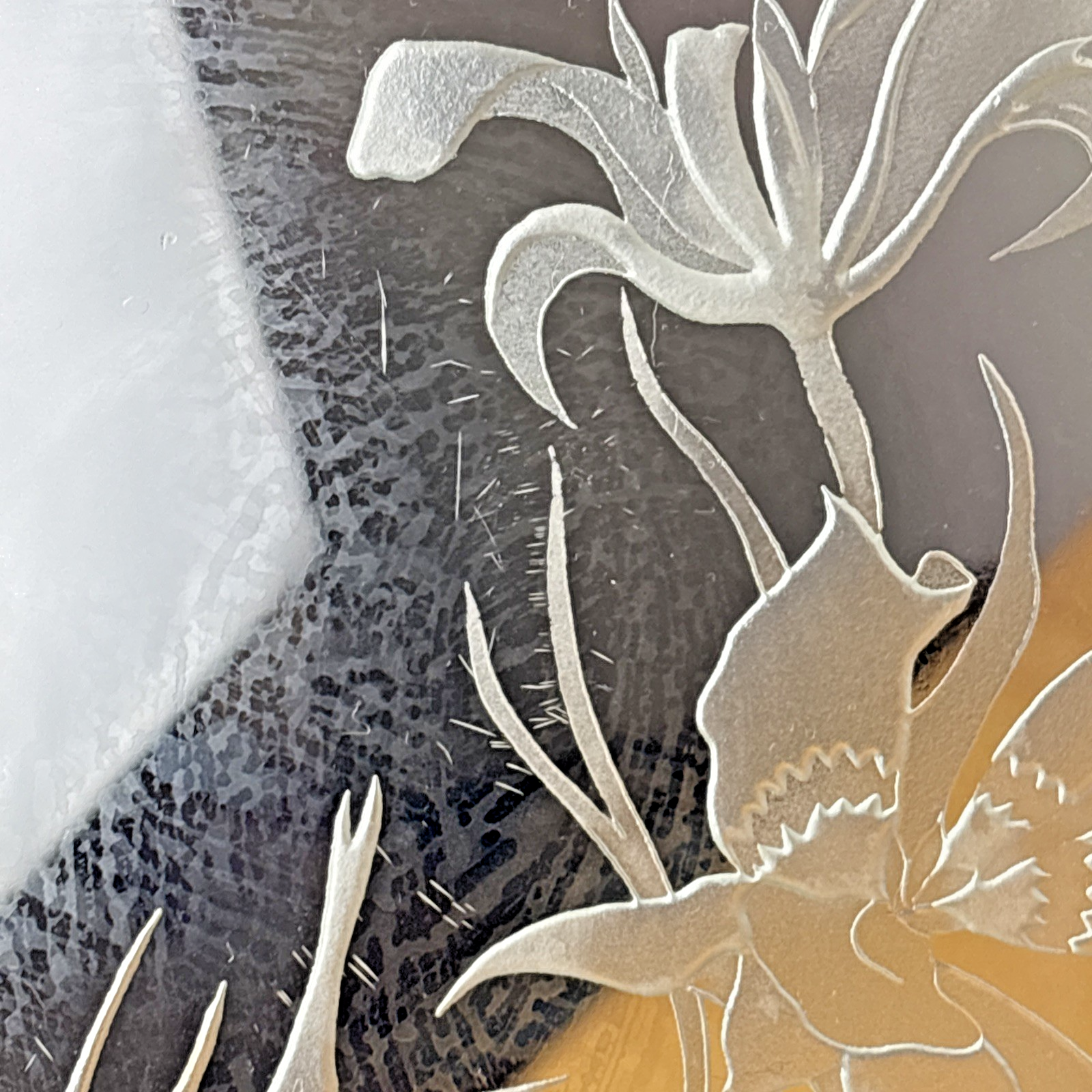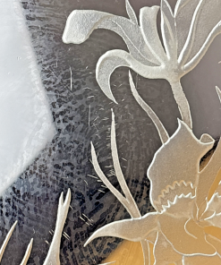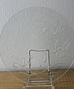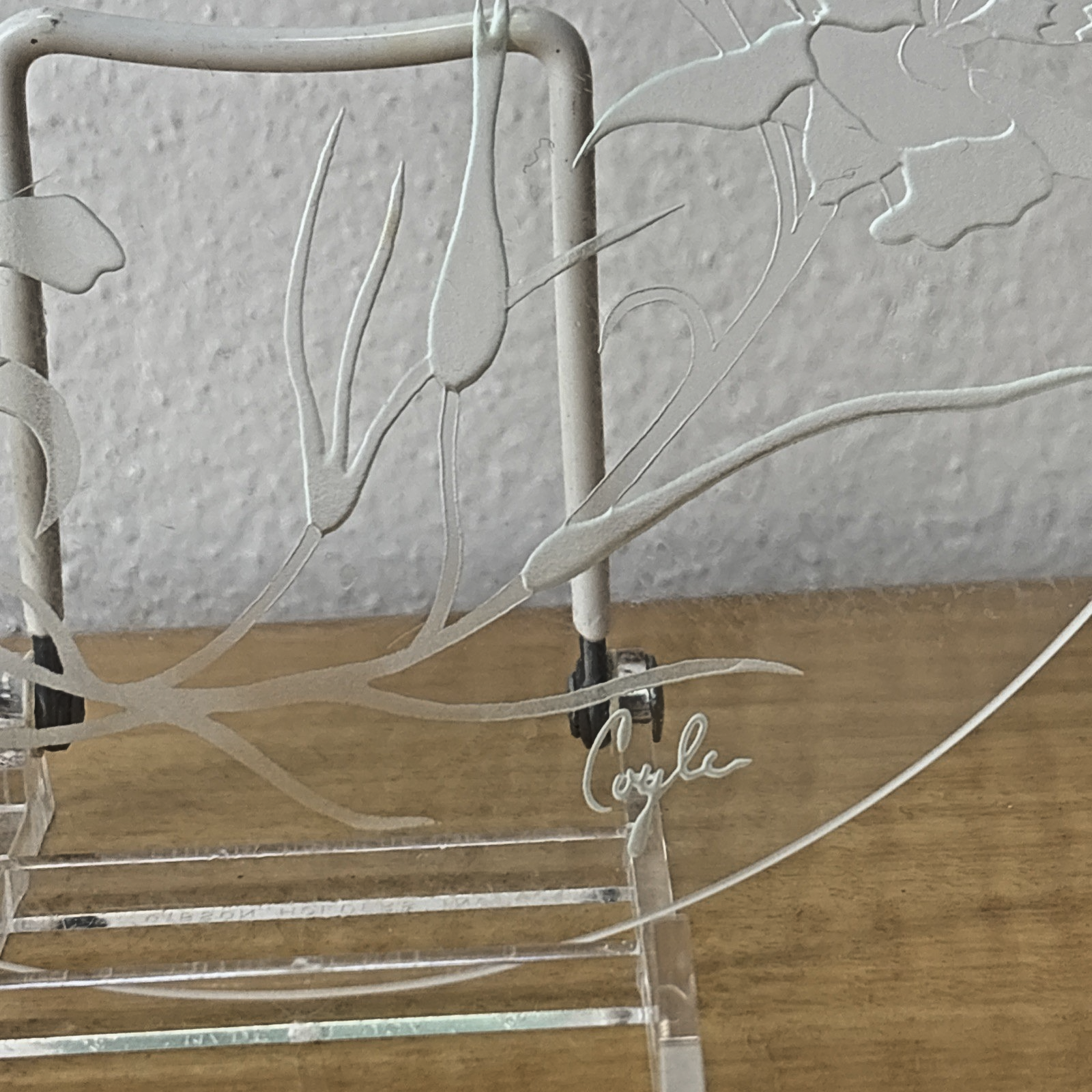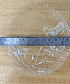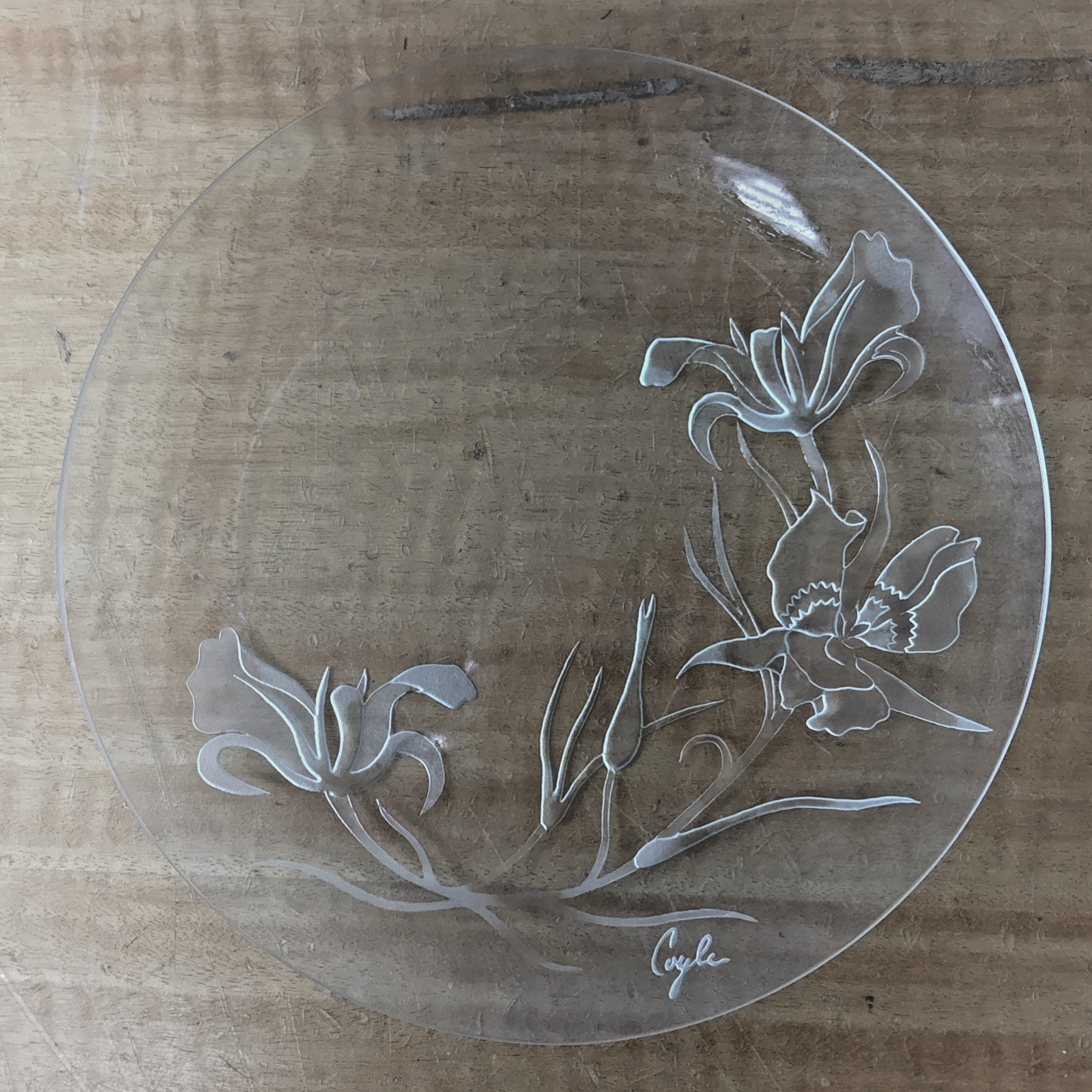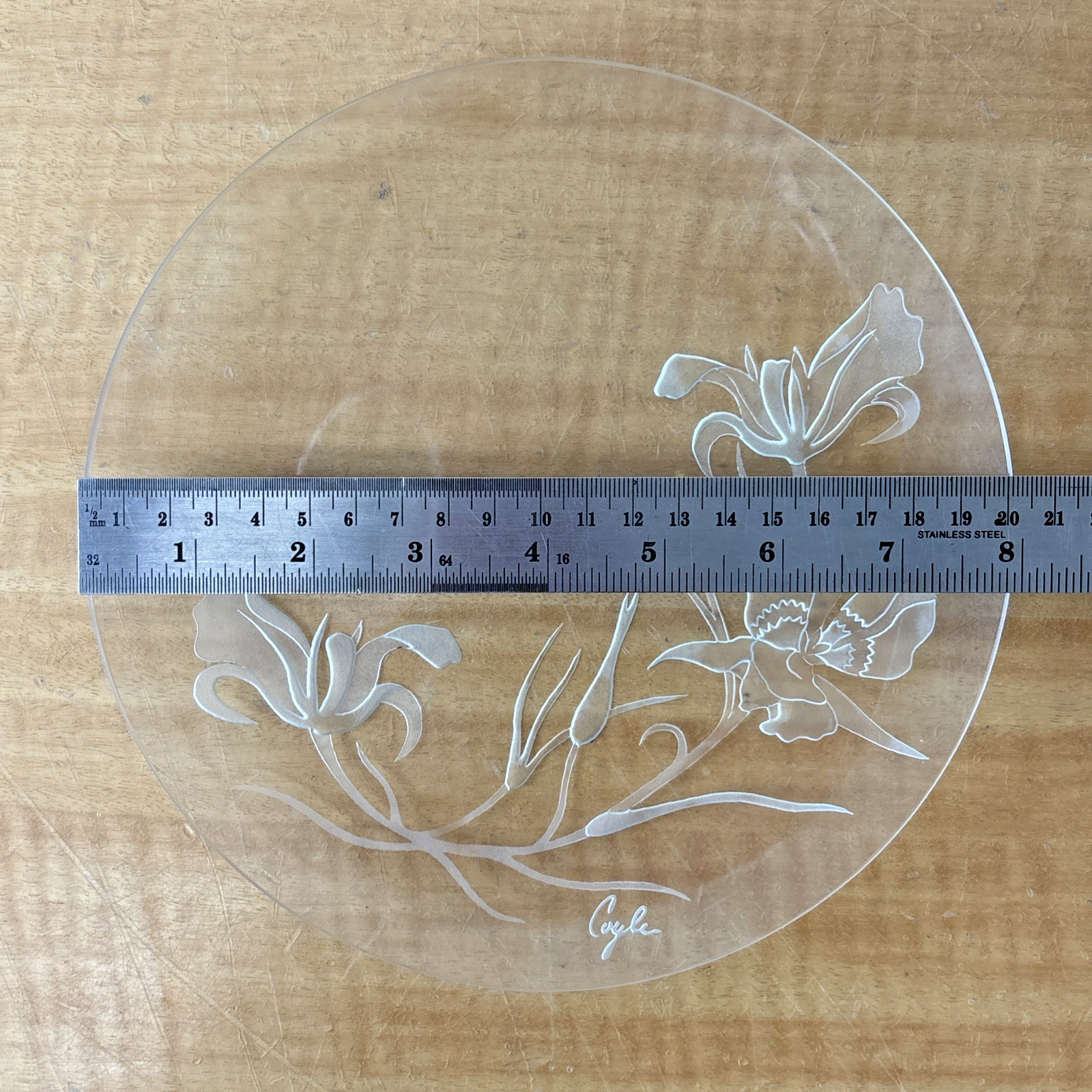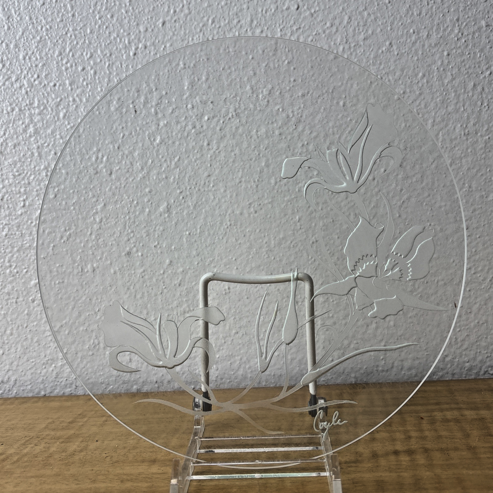 Perry Coyle signed Etched Crystal Glass Flower / Plants 8″ Salad Plate