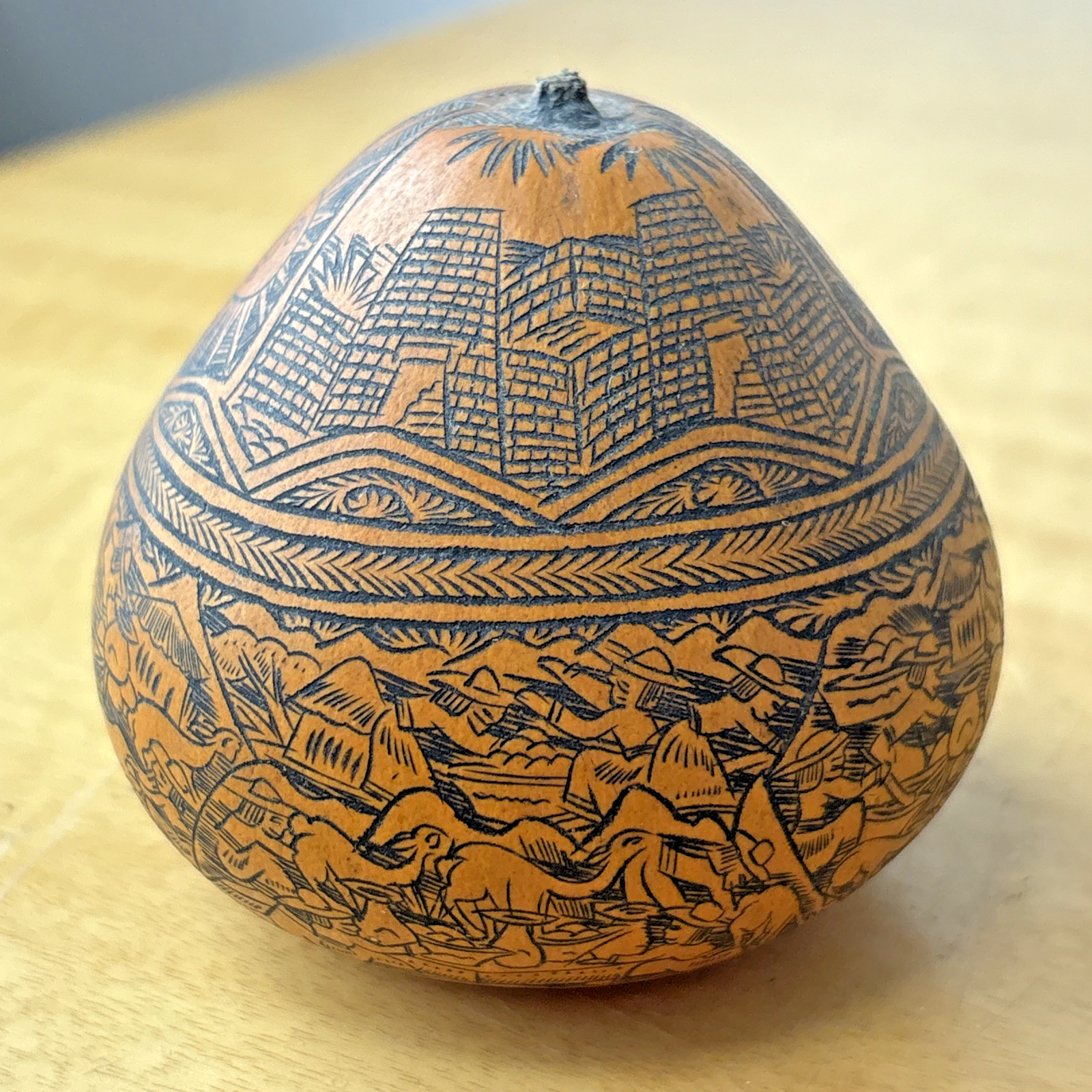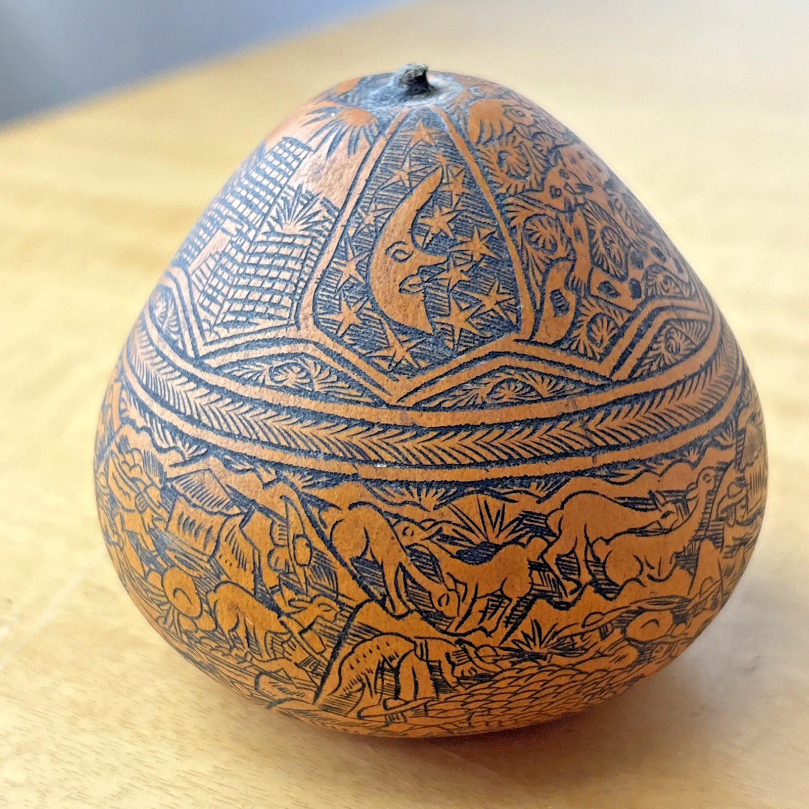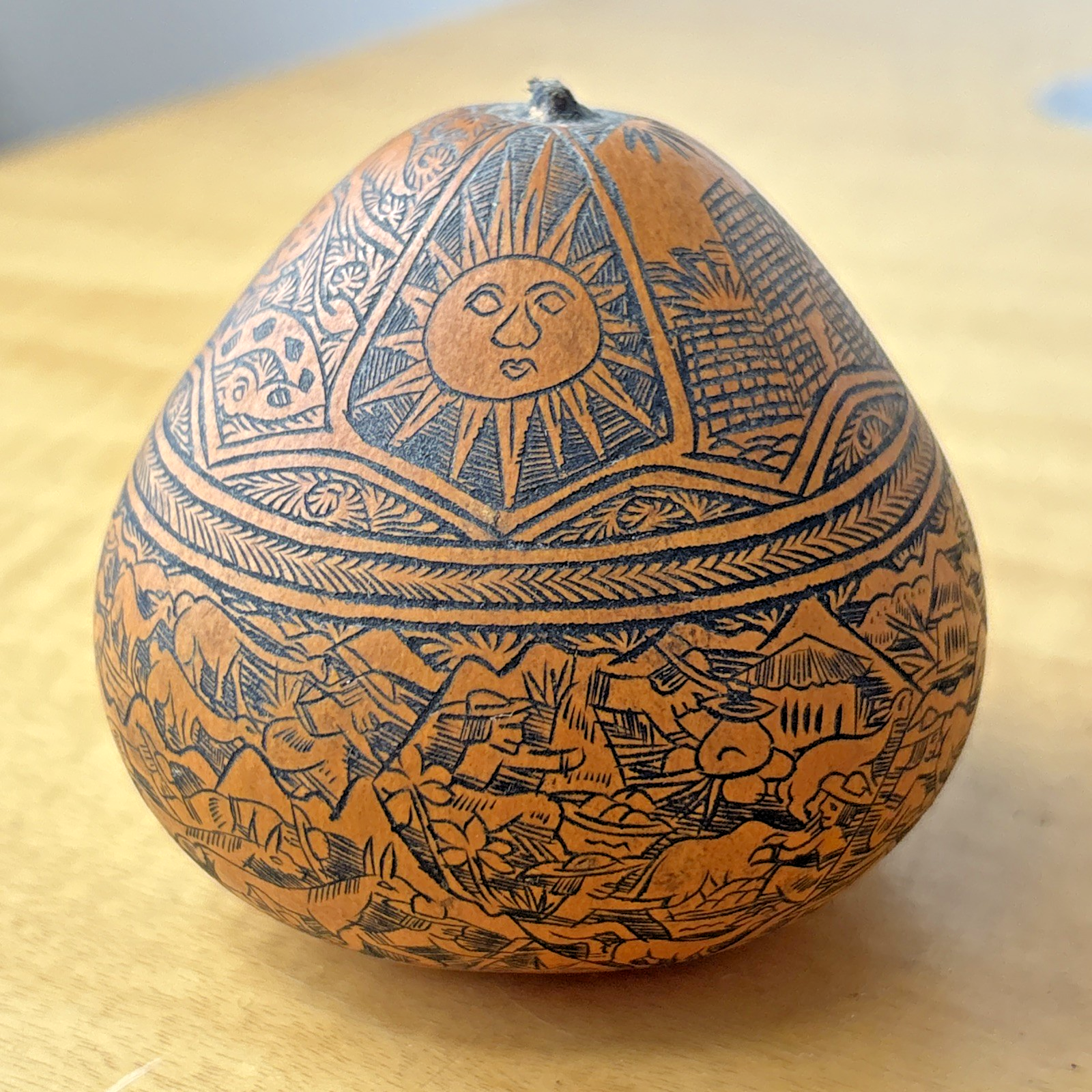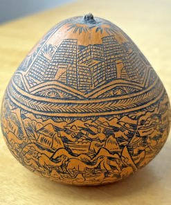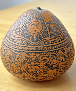 Peruvian Folk Art Gourd Exquisite Etched