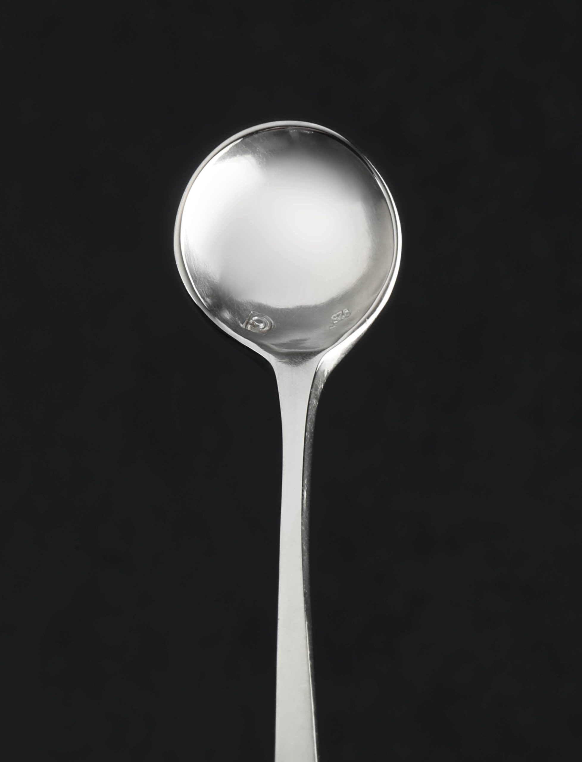 Metalsmith Corey Ackelmire captures the heart with her hand-forged sterling silver barware, and this petite, round-bowl spoon is a beautiful example. Elegant transitions and flowing lines, thoughtfully shaped at Corey’s Texas studio, produce an object to cherish, to admire, and to use. Balanced in the hand and finished with a beautiful polish that allows the 925 silver to shine while retaining Corey’s hammer marks on the underside of the bowl, this one-of-a-kind spoon will make an unforgettable gift.
