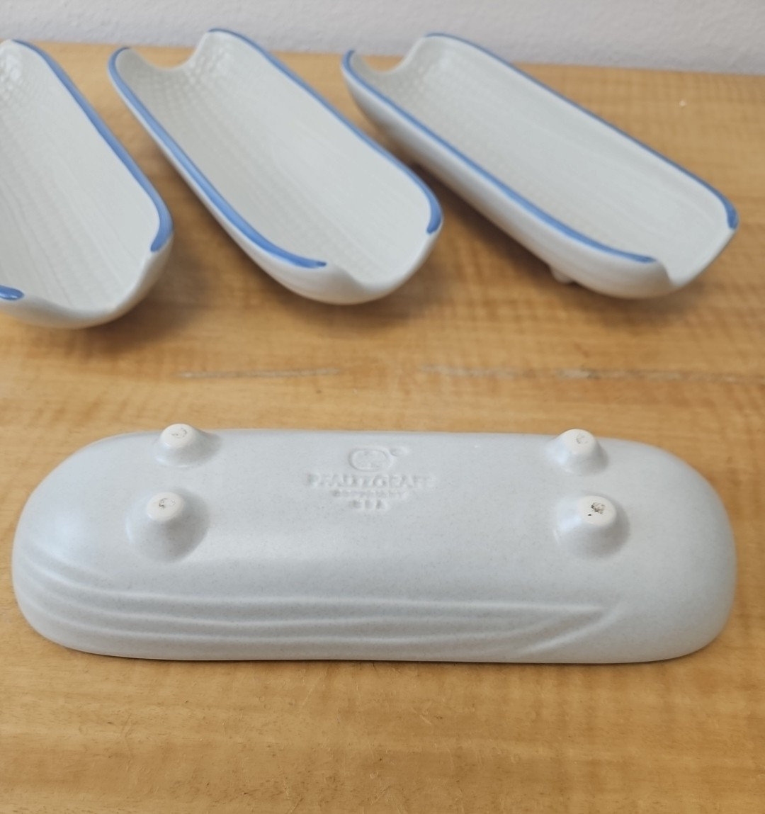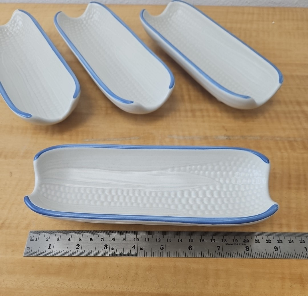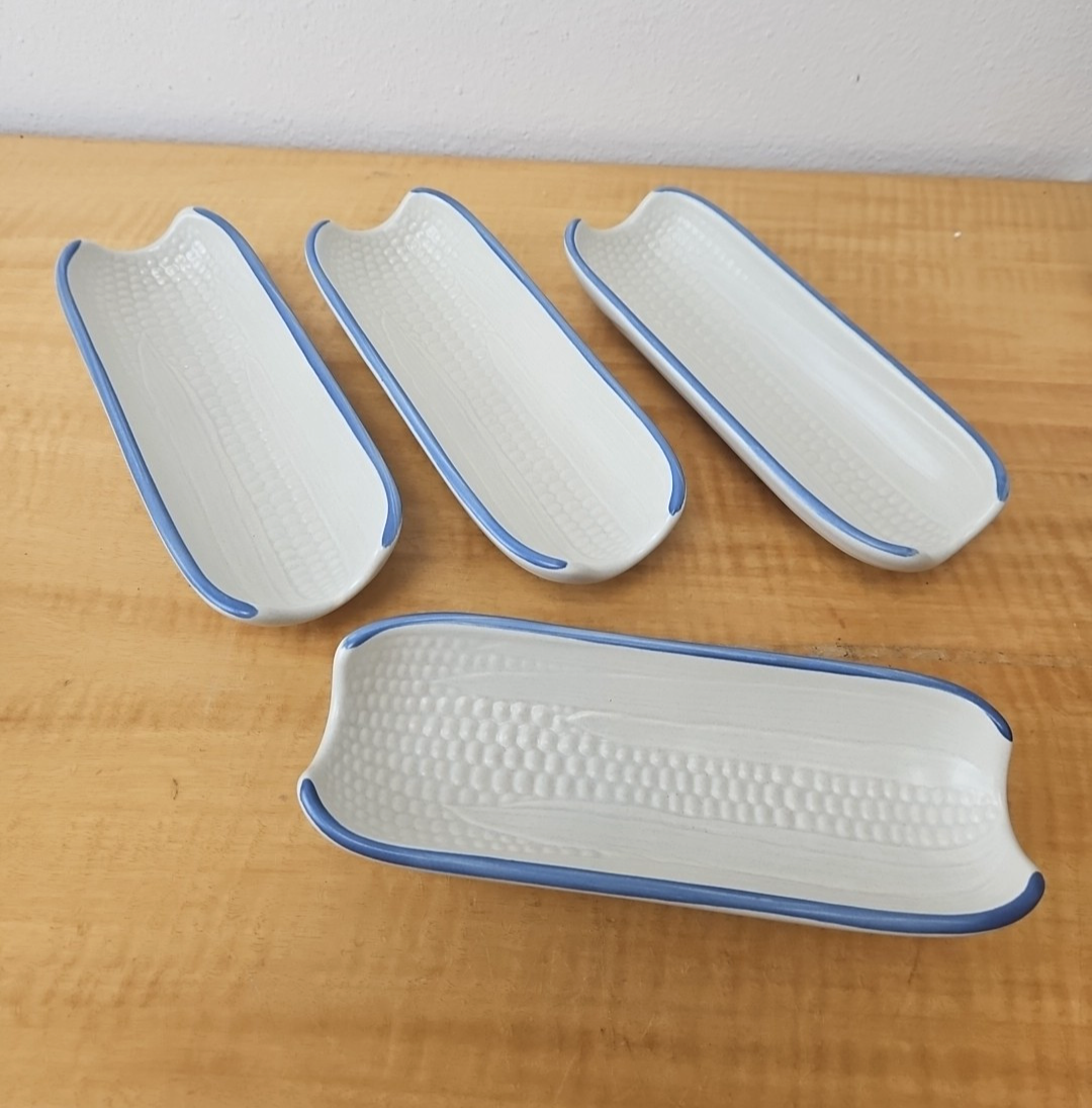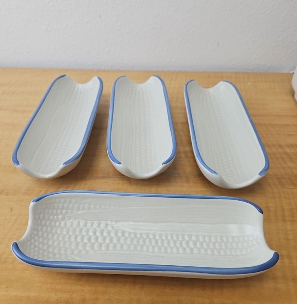 Pfaltzgraff “Yorktowne” Corn On The Cob footed holder dish tray USA Set of 4