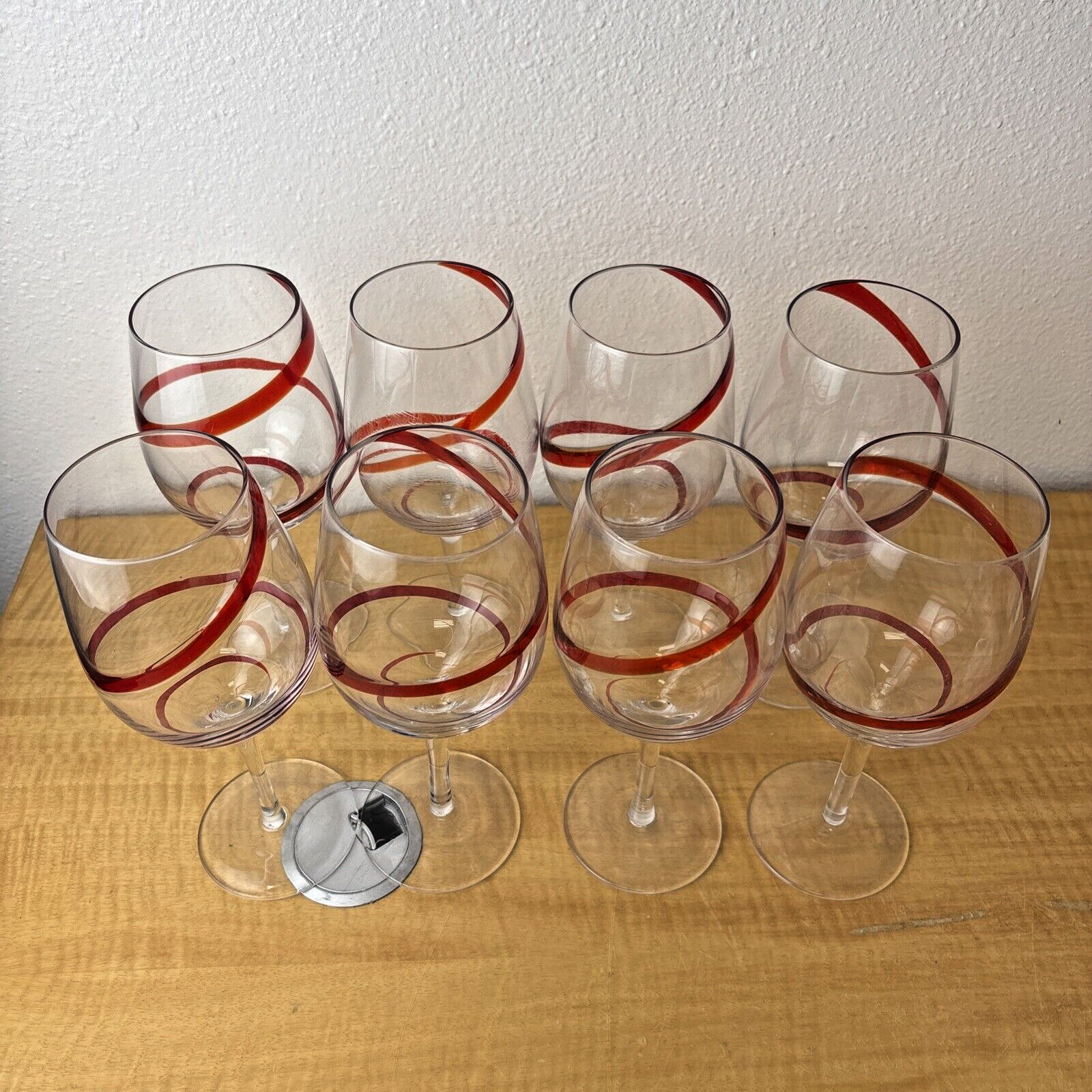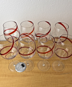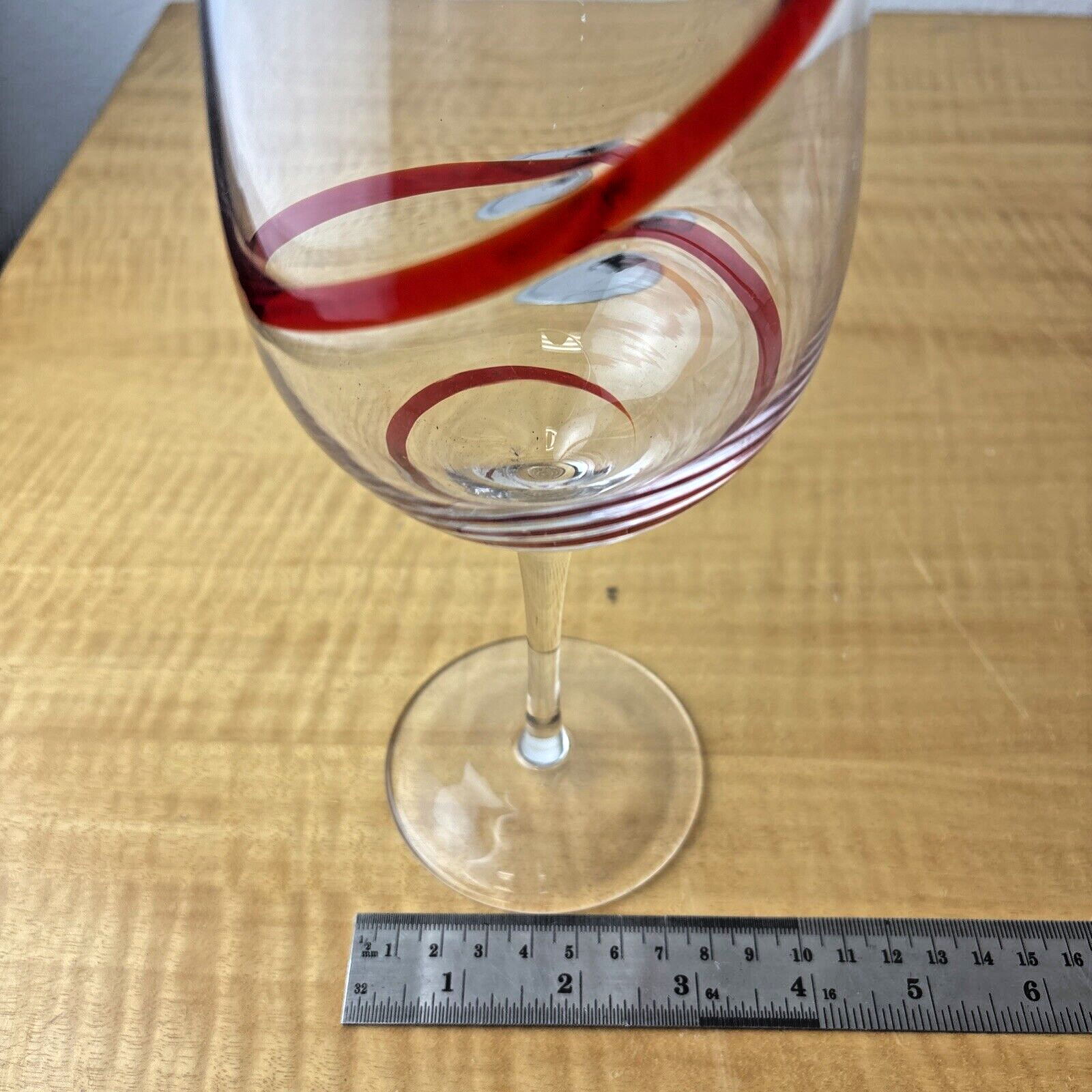 Pier 1 Red Swirline Water Goblet Stemmed Christmas Glass