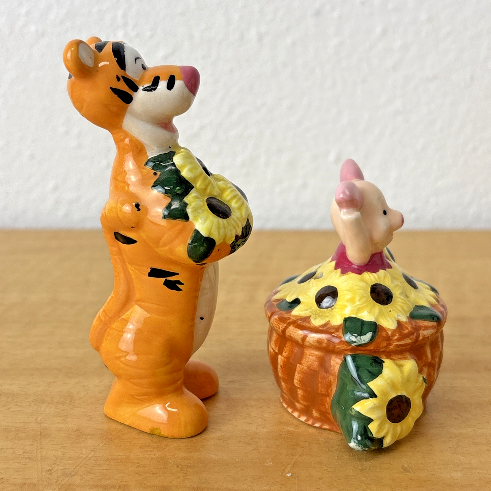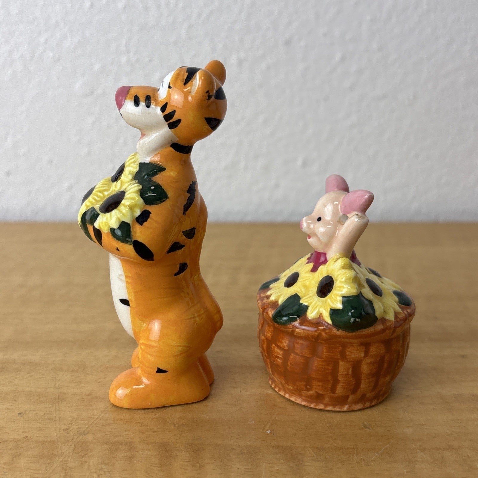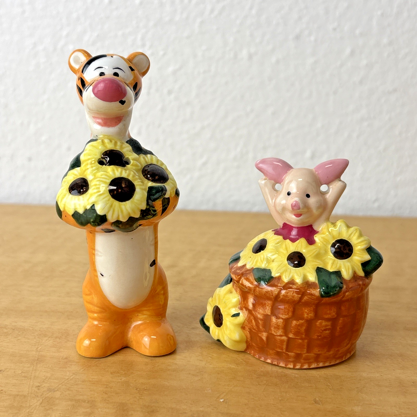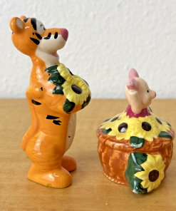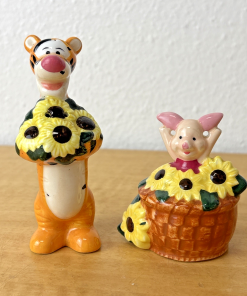 Piglet and Tigger Gardening Salt & Pepper Shakers 90s Sunflowers Vintage