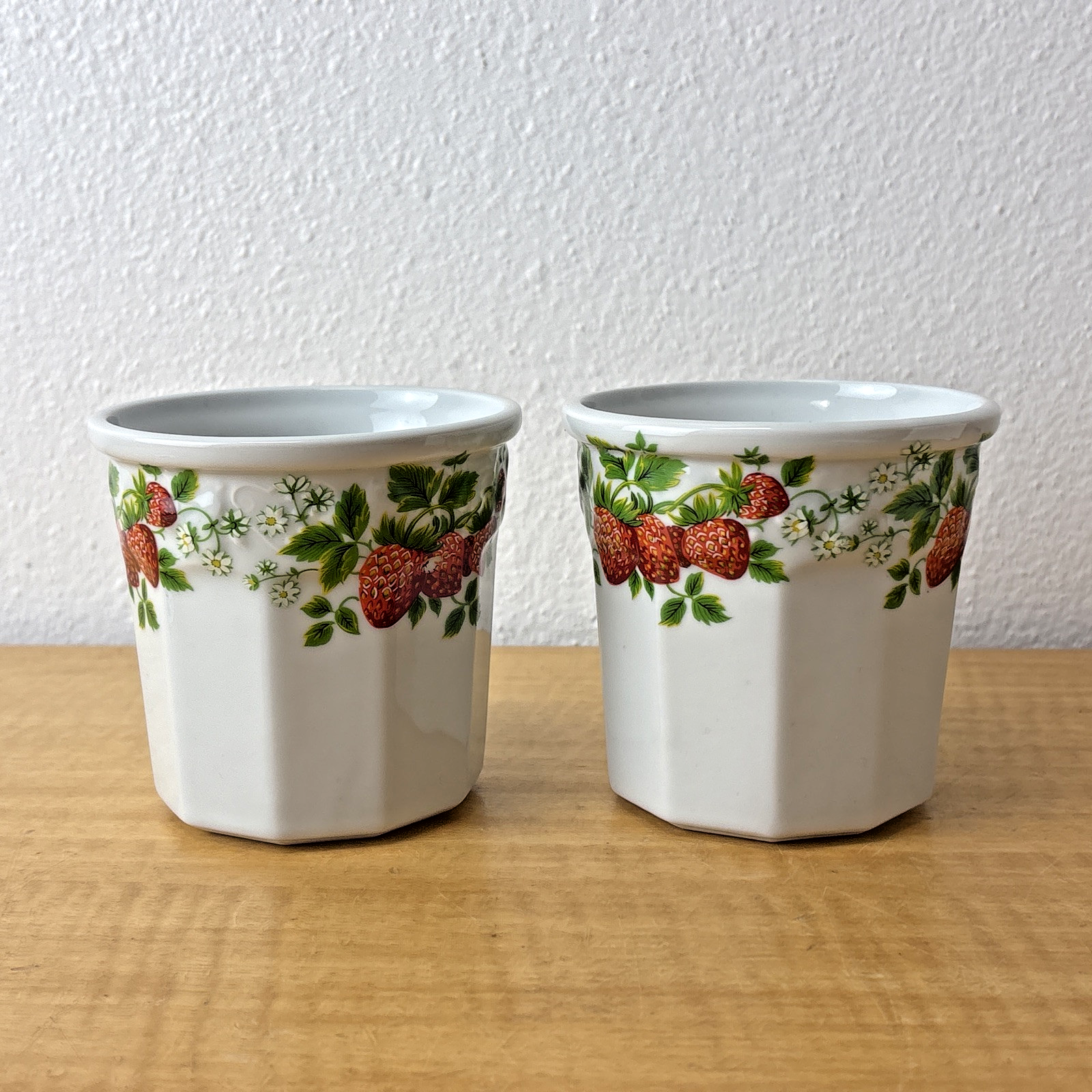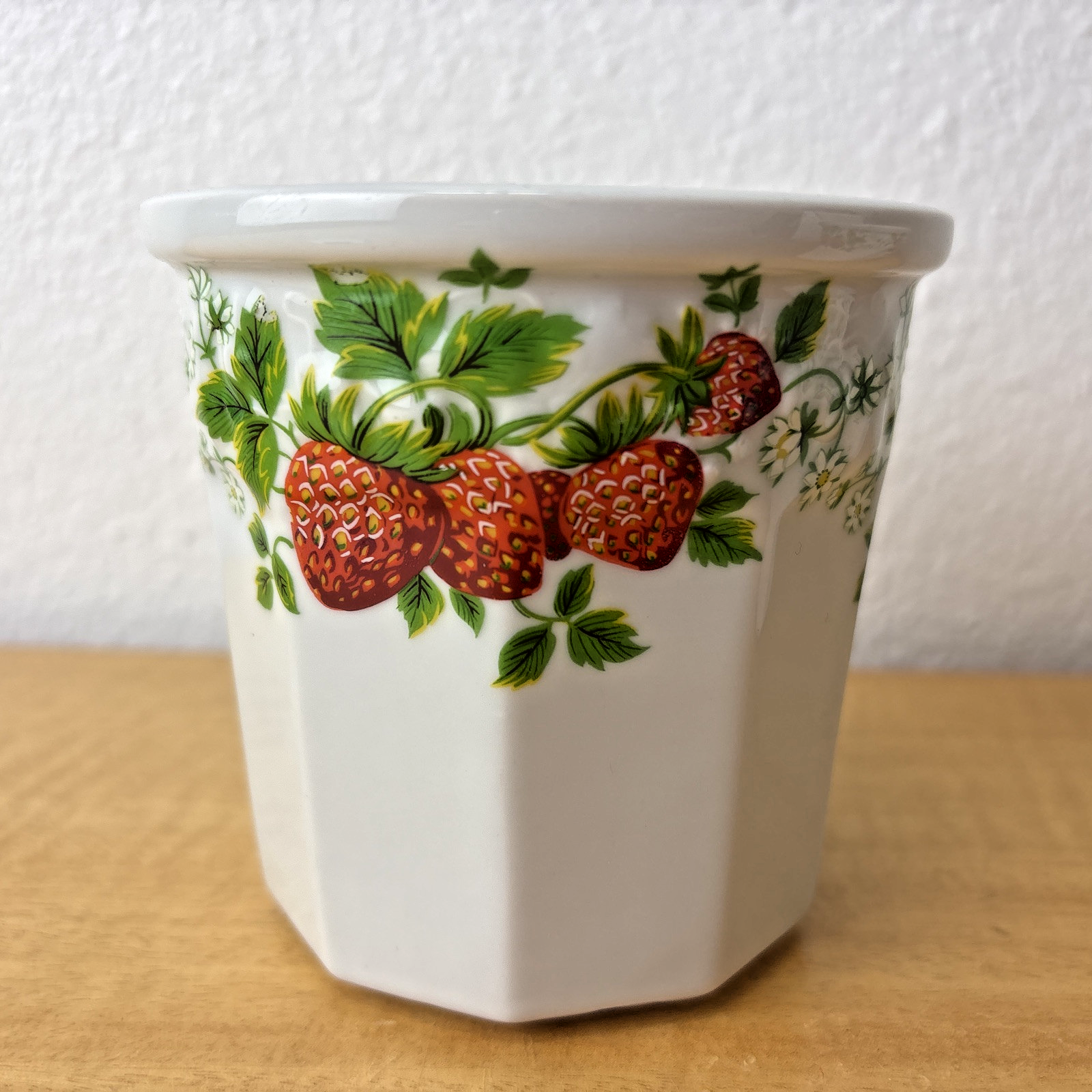 Pillivuyt France White Porcelain Condiment Jar with Strawberries (2 Available)