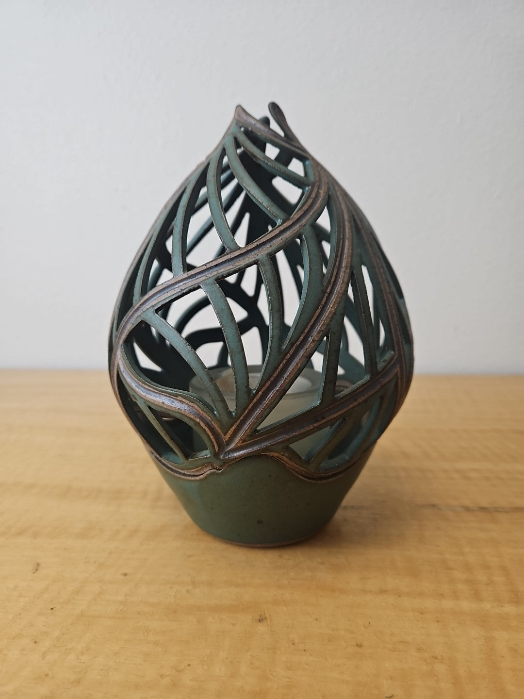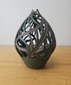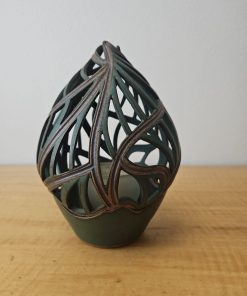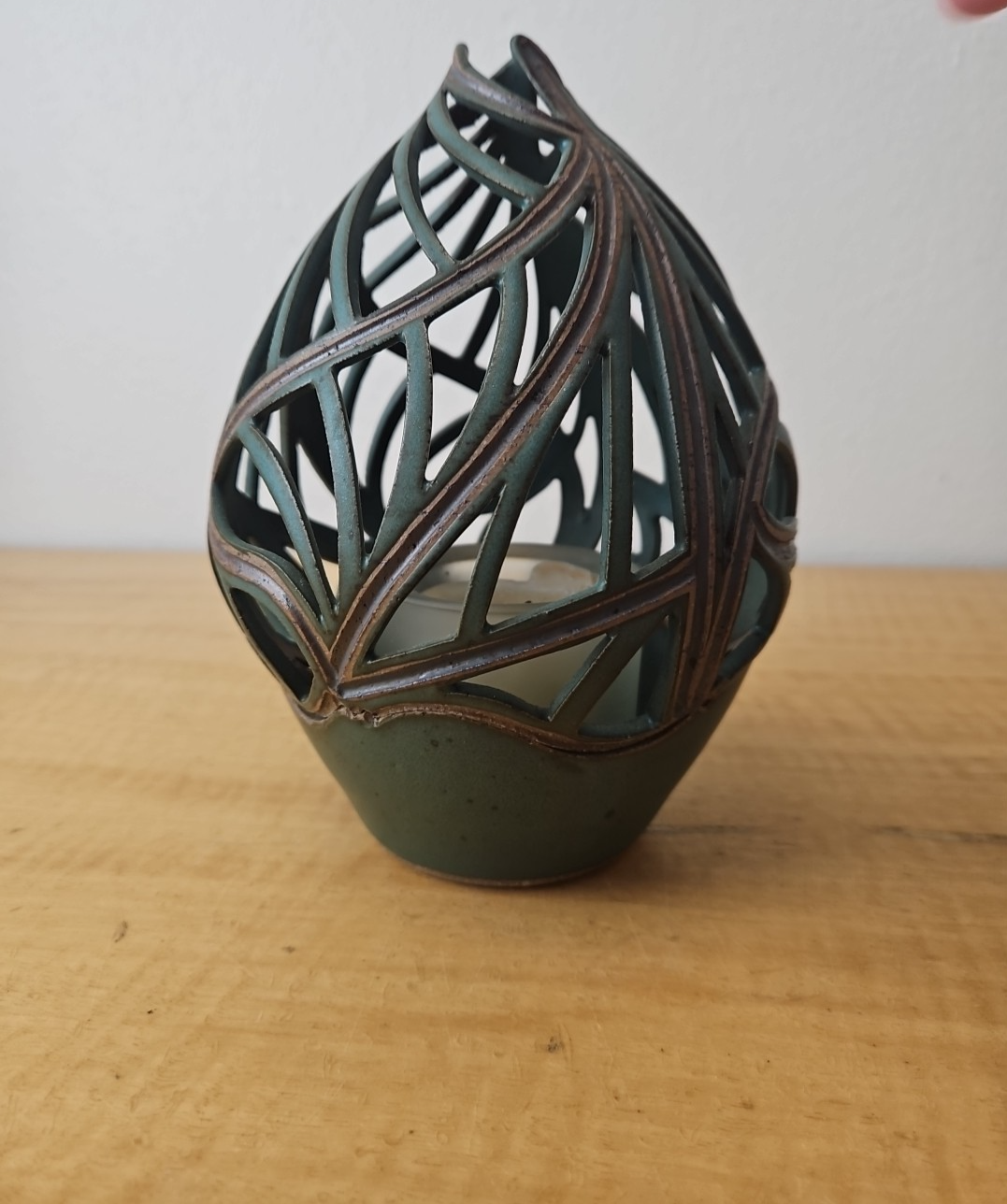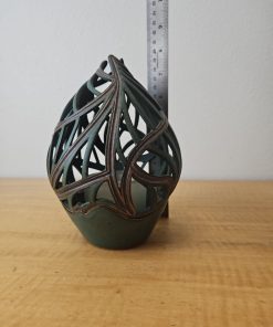 Pixton Signed Studio Art Pottery Carved Lantern Candle Holder 7″