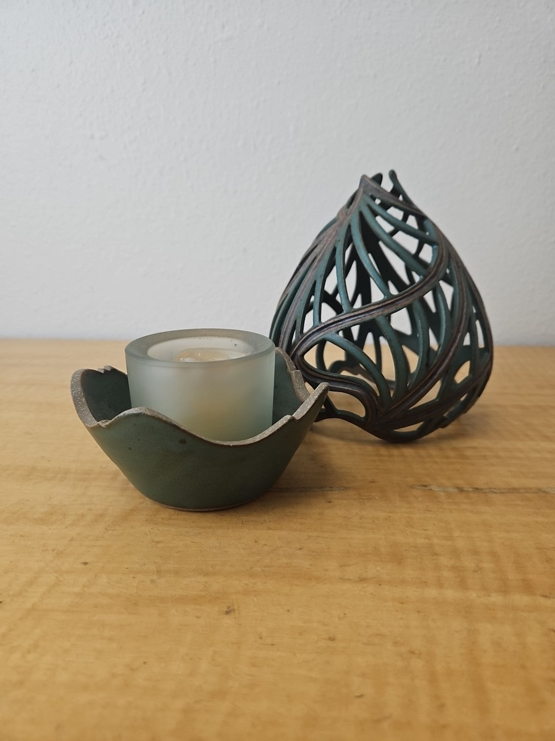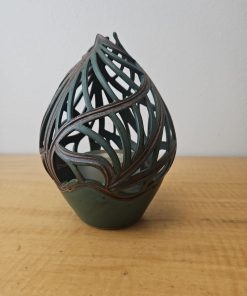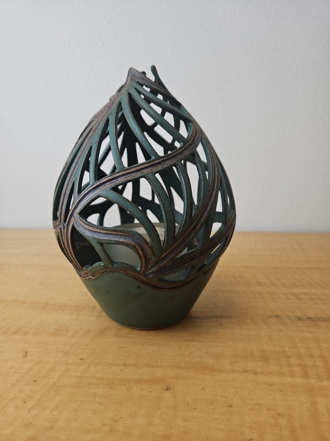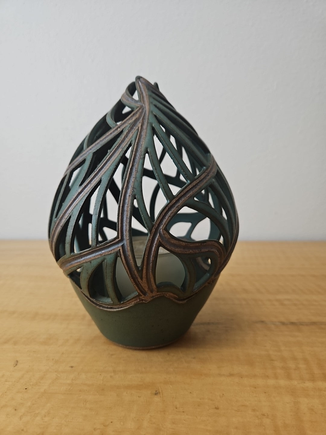 Pixton Signed Studio Art Pottery Carved Lantern Candle Holder 7″
