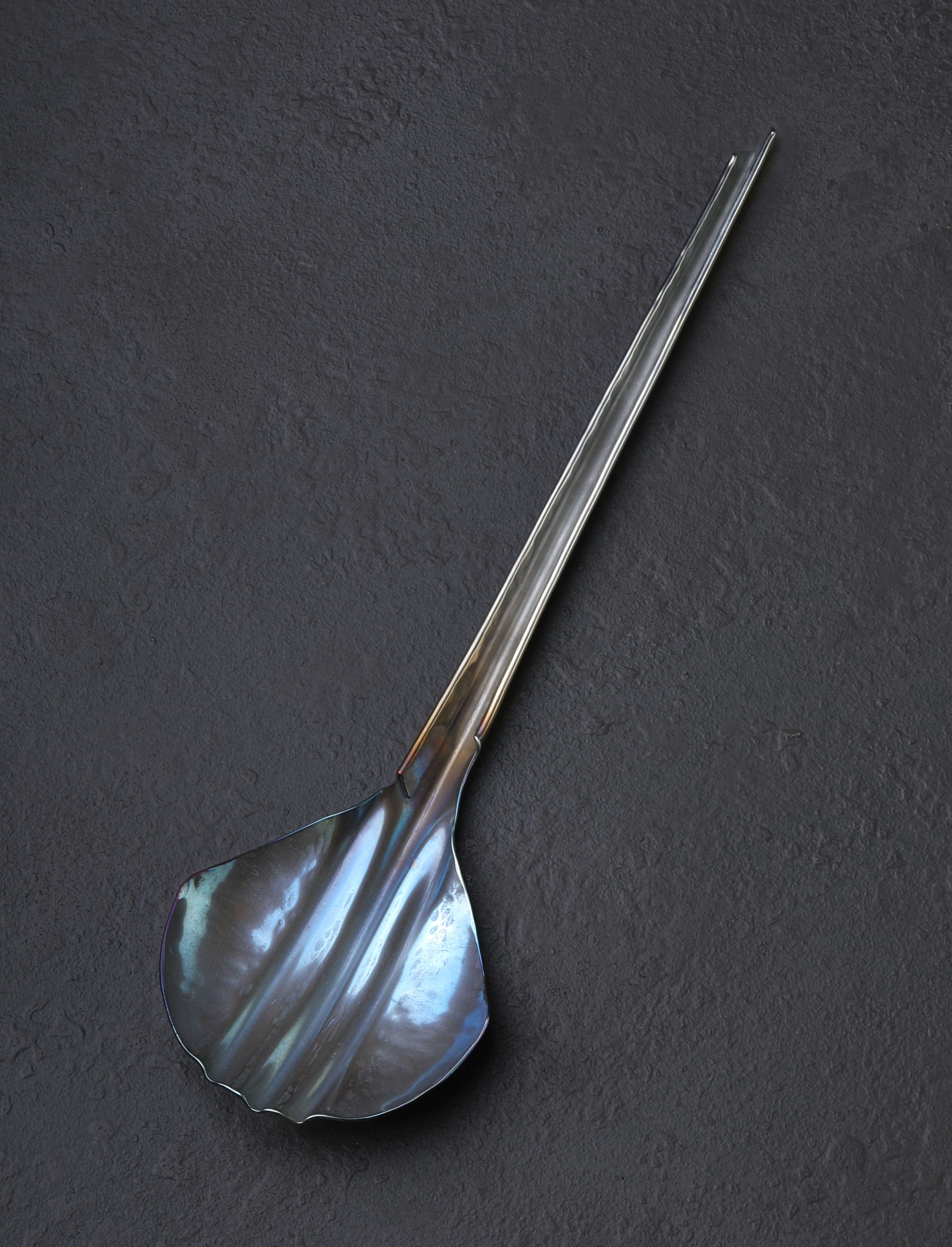 Make an unforgettable statement with this unique and handsome serving tool, designed and made by hand in British Columbia by artist Stefanie Dueck. Large enough for any feast and boldly styled in Stefanie’s folded steel style, both host and guest will appreciate the functional, sculptural art that is the Plica Serving Spoon. Balanced and comfortable in the hand, rounded and soft to the touch, and beautifully crafted from handle to bowl, the dining room glows a little brighter with Stefanie’s recognizable aesthetic. *Made individually by hand, each Plica Serving Spoon is unique and may not match the photos exactly.