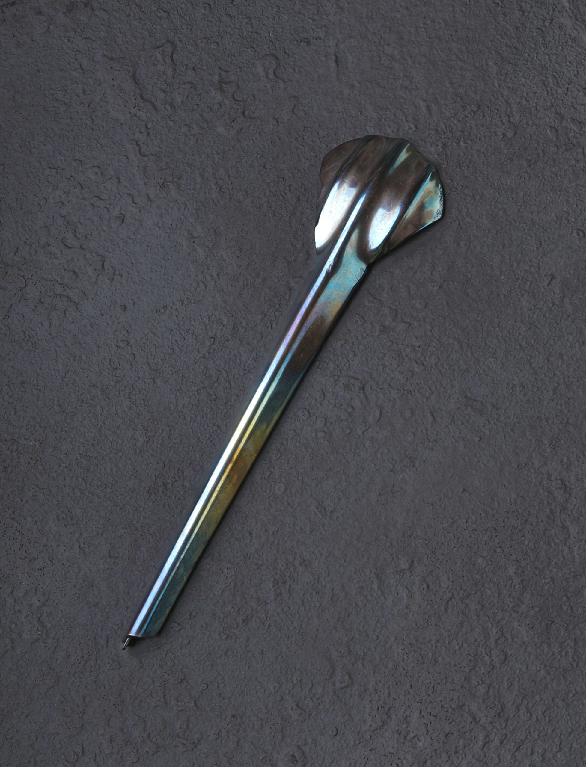 To serve tapas, stir a beverage, enjoy a bowl of ice cream, and more, Stefanie Dueck’s Plica Tapa Spoon enhances every dining experience in bold style. The fold formed stainless-steel handle offers a comfortable grip and unique tactile experience with which to control the small, teaspoon-sized bowl. Handcrafted at her British Columbia studio, this beautiful utensil pairs nicely with the artist’s . *Made individually by hand, each Plica Tapa Spoon is unique and may not match the photos exactly.