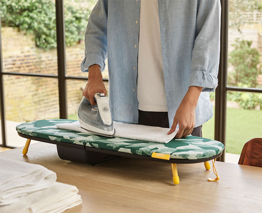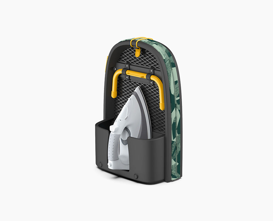 Ironing boards are often fiddly to set up and difficult to store away. Pocket, however, breaks the mould. We designed our revolutionary table-top ironing board with exceptional storage capabilities and uncompromising functionality. When not in use, Pocket folds in half for easy storing and even has an integrated storage compartment for the iron.