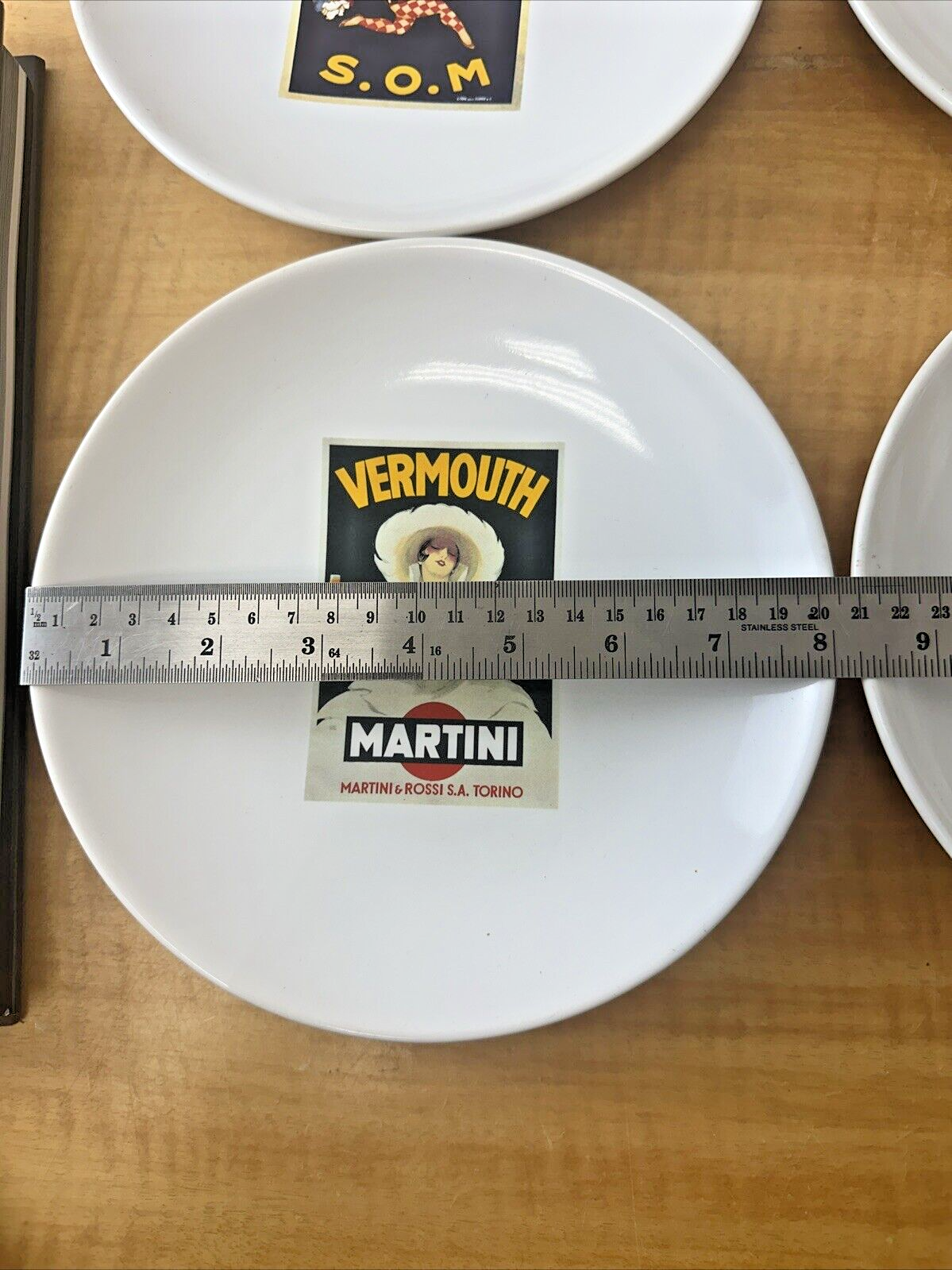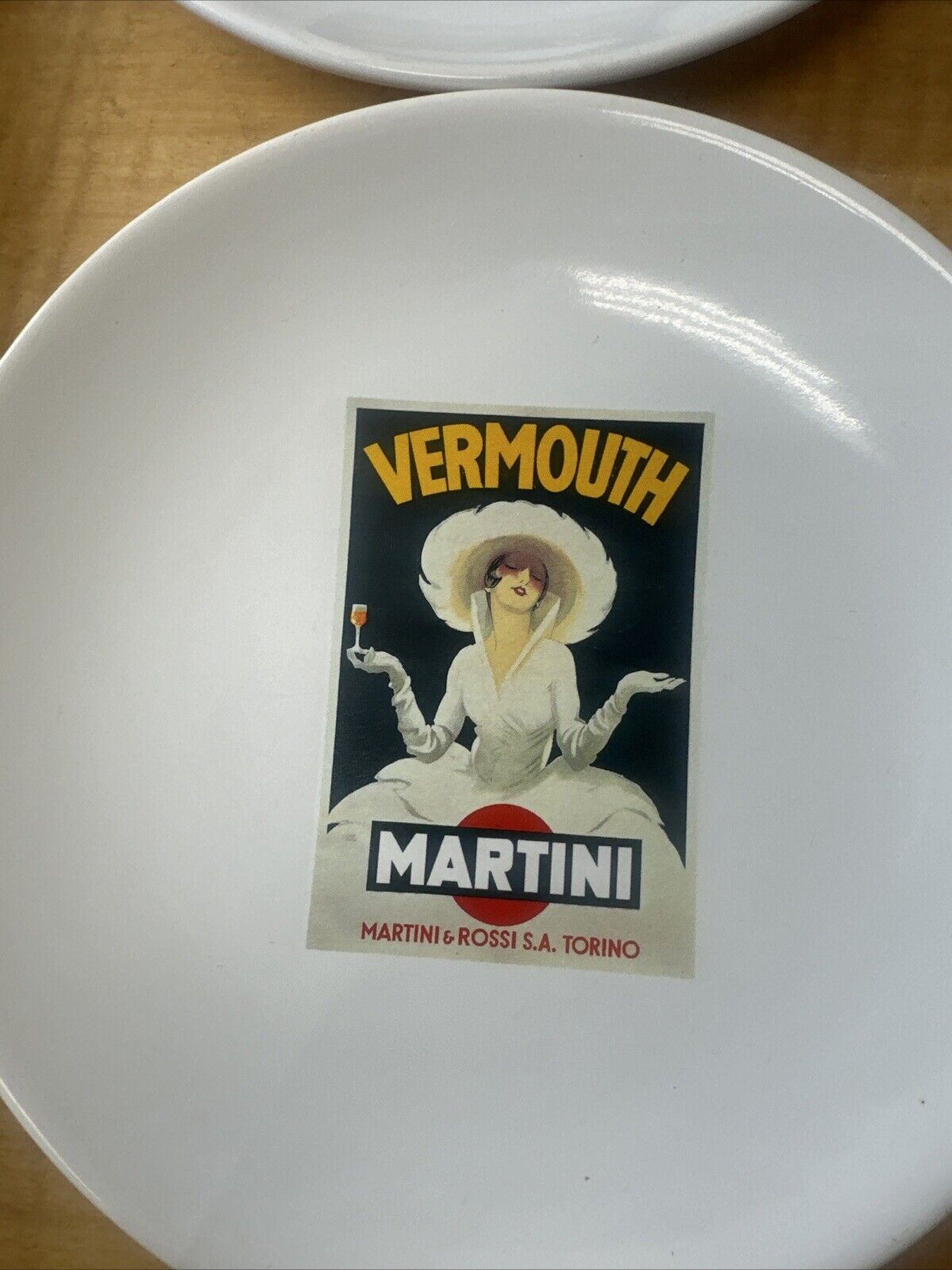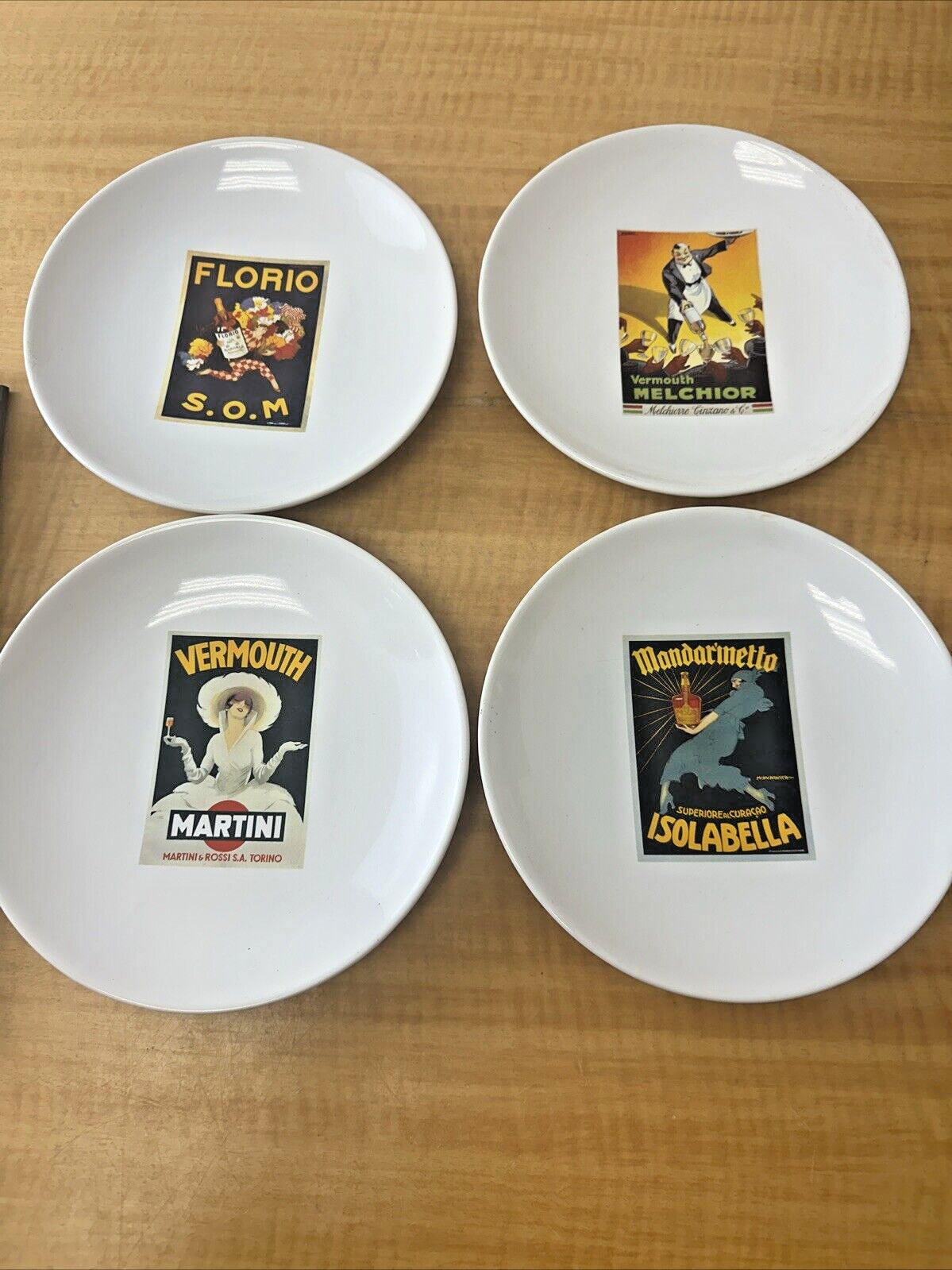 Pottery Barn Vintage Cocktail Poster Martini & Rossi Vermouth Plates Set 8 1/4″