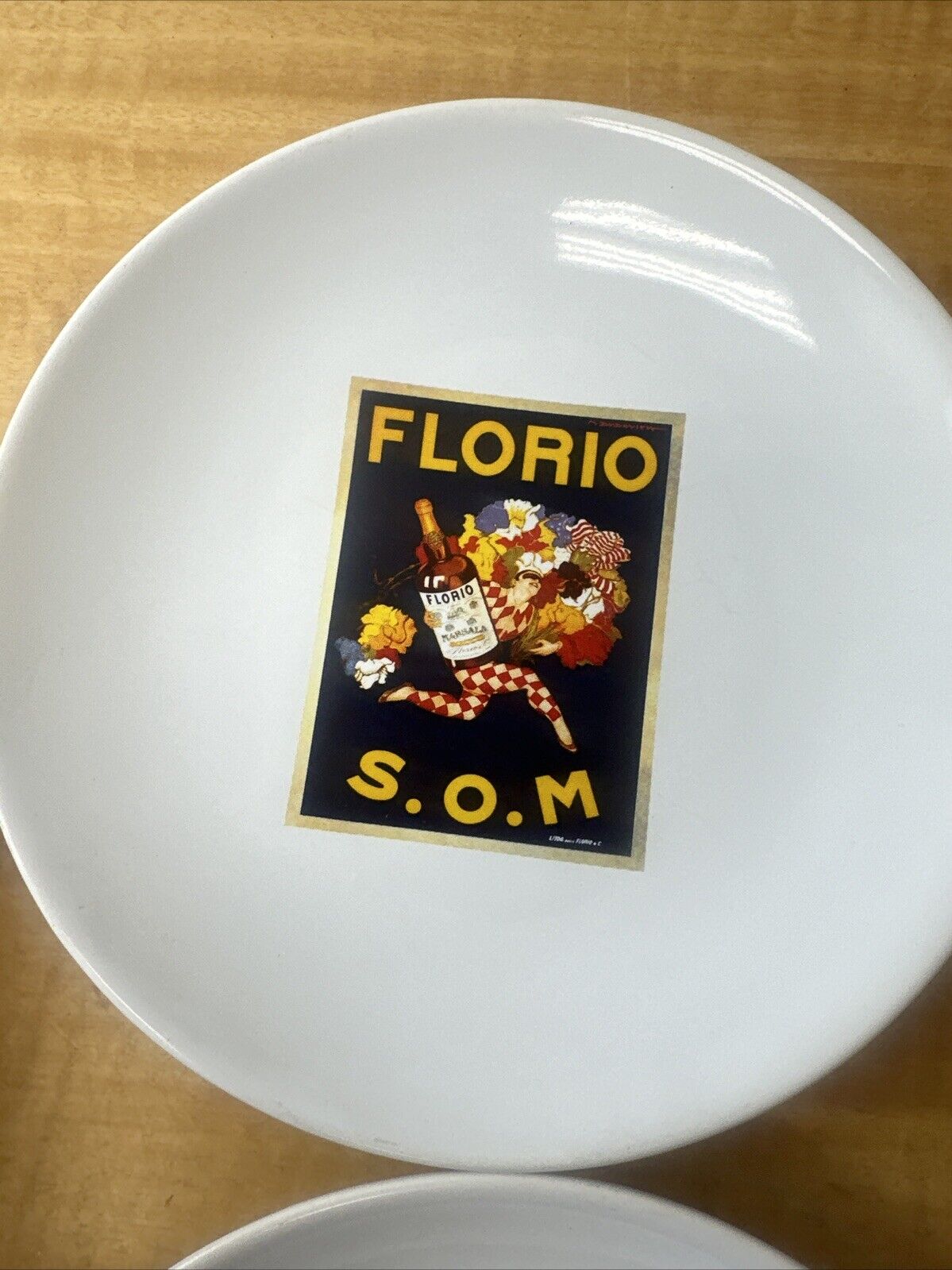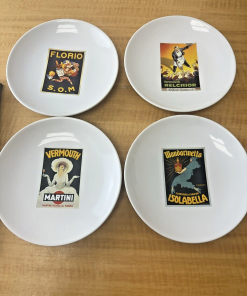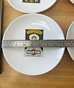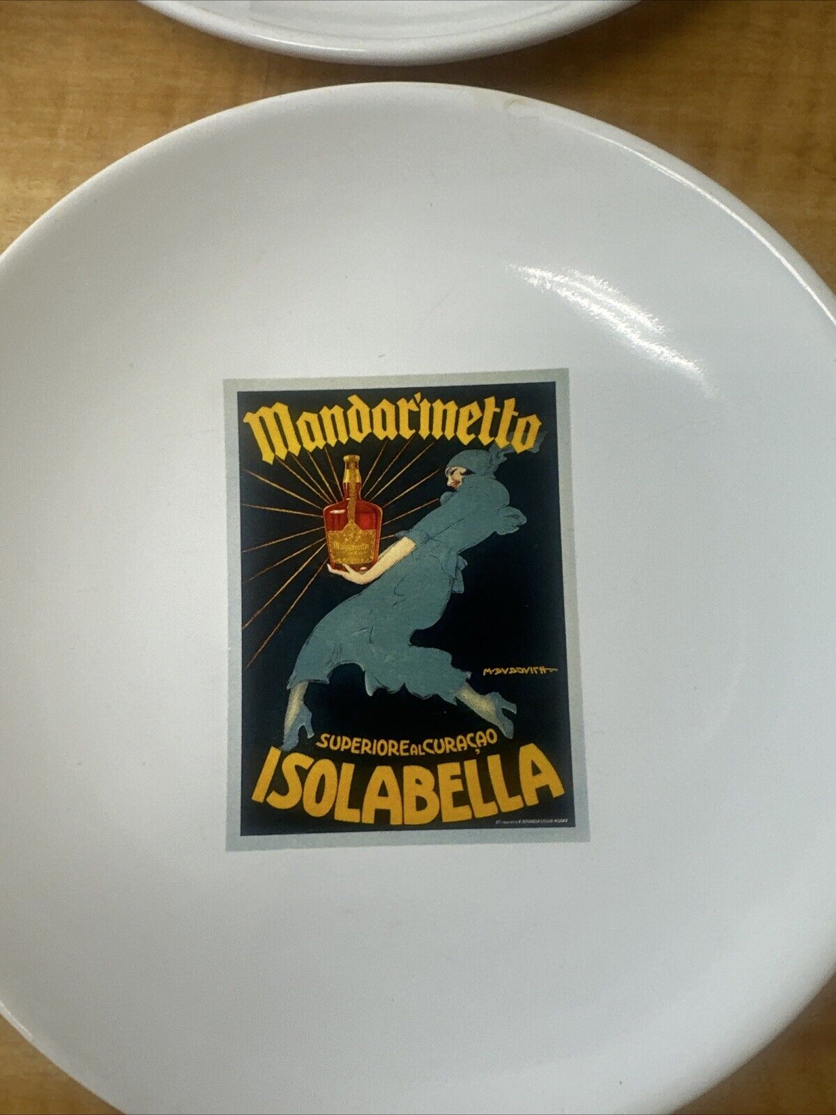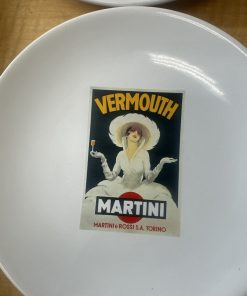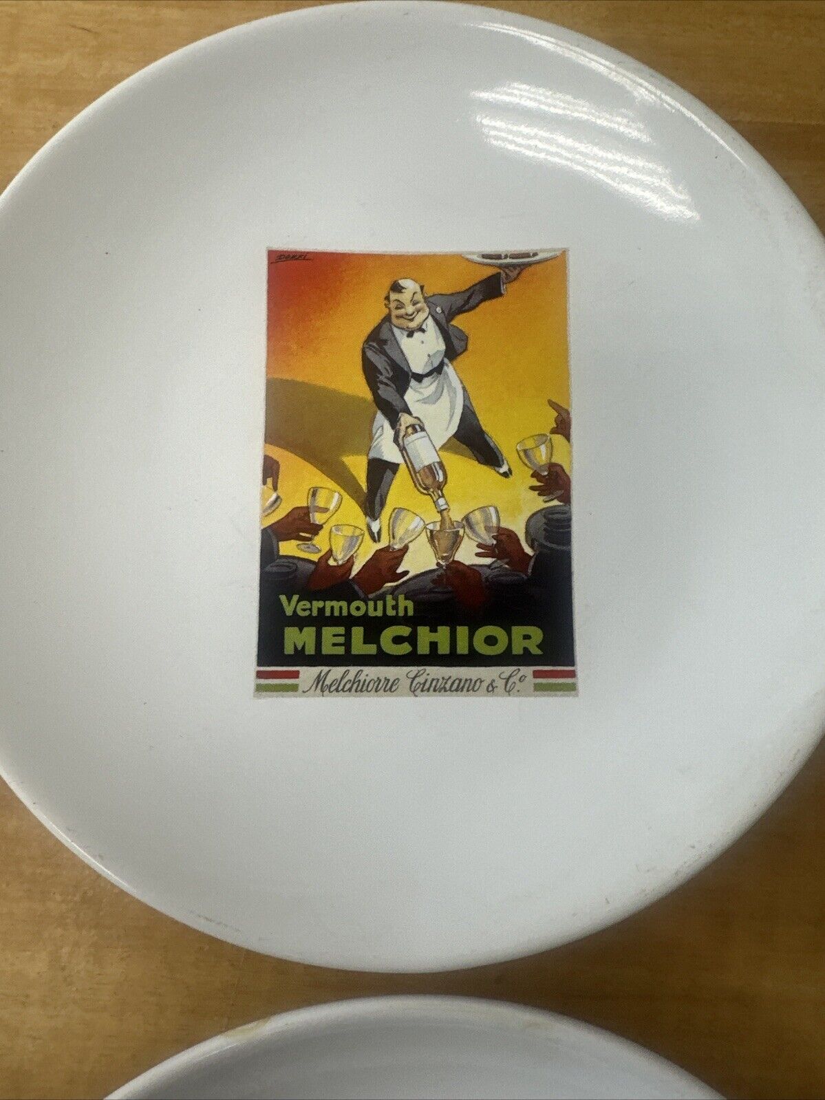 Pottery Barn Vintage Cocktail Poster Martini & Rossi Vermouth Plates Set 8 1/4″