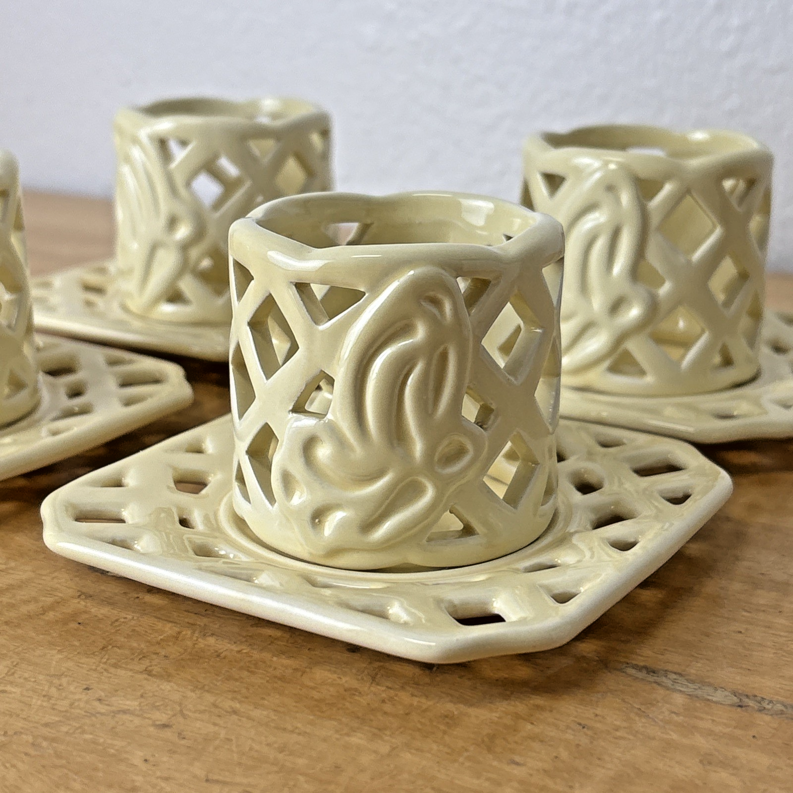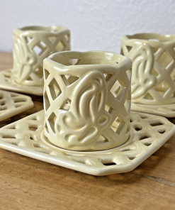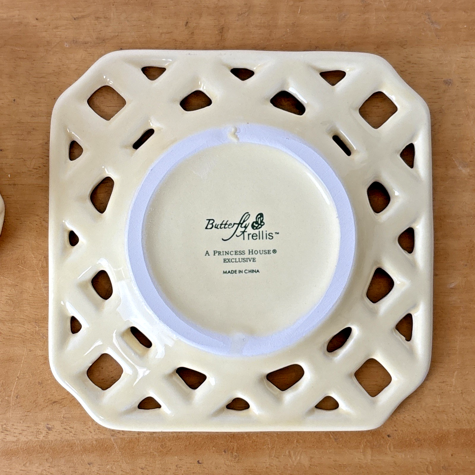 Princess House 4 Ceramic Butterfly Trellis Tea Light Candle Holder Set in Box