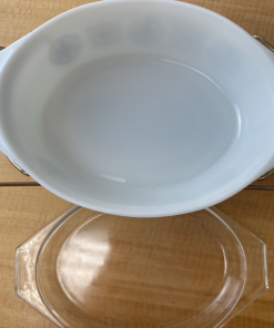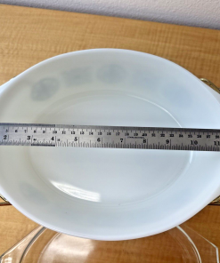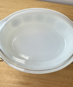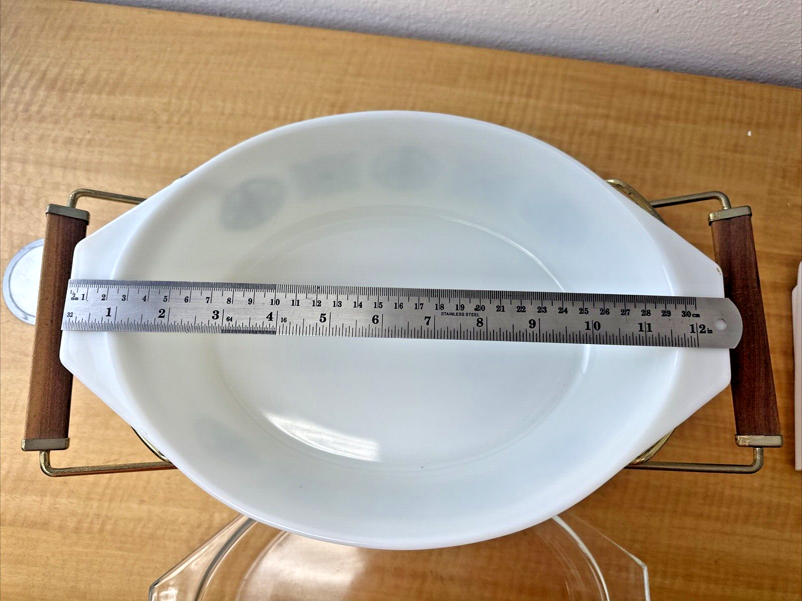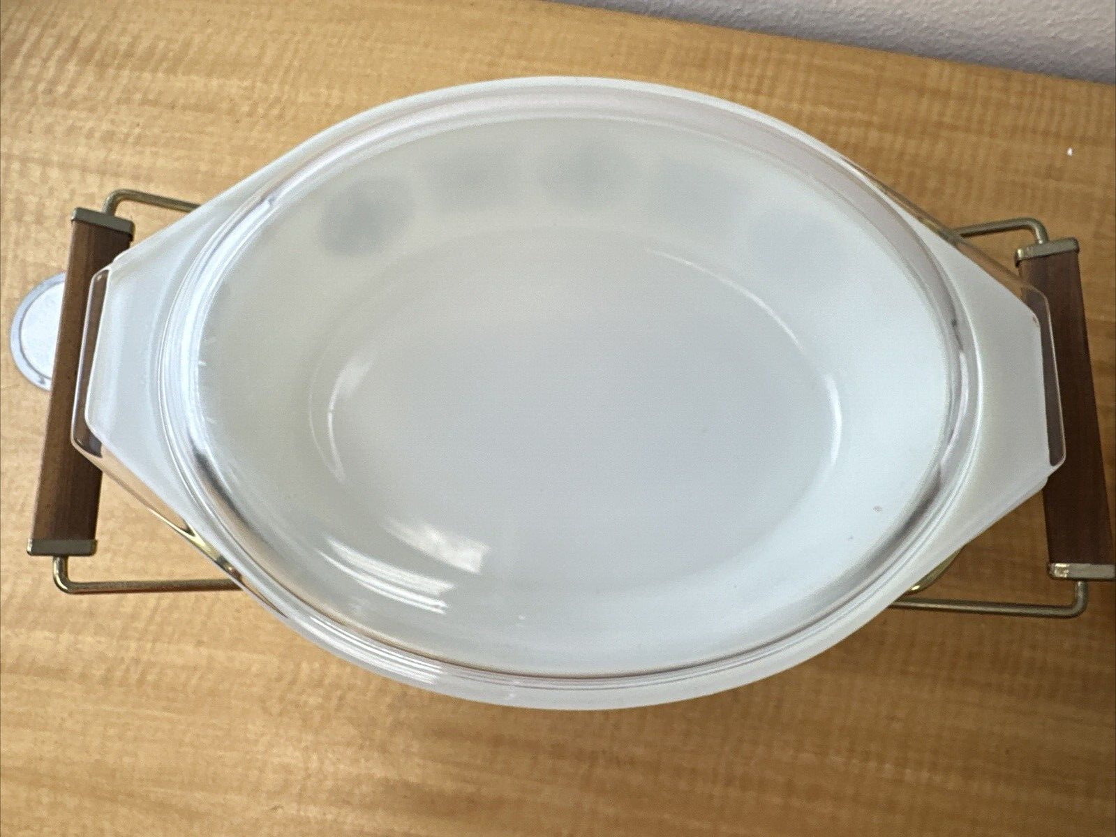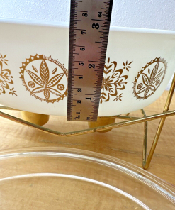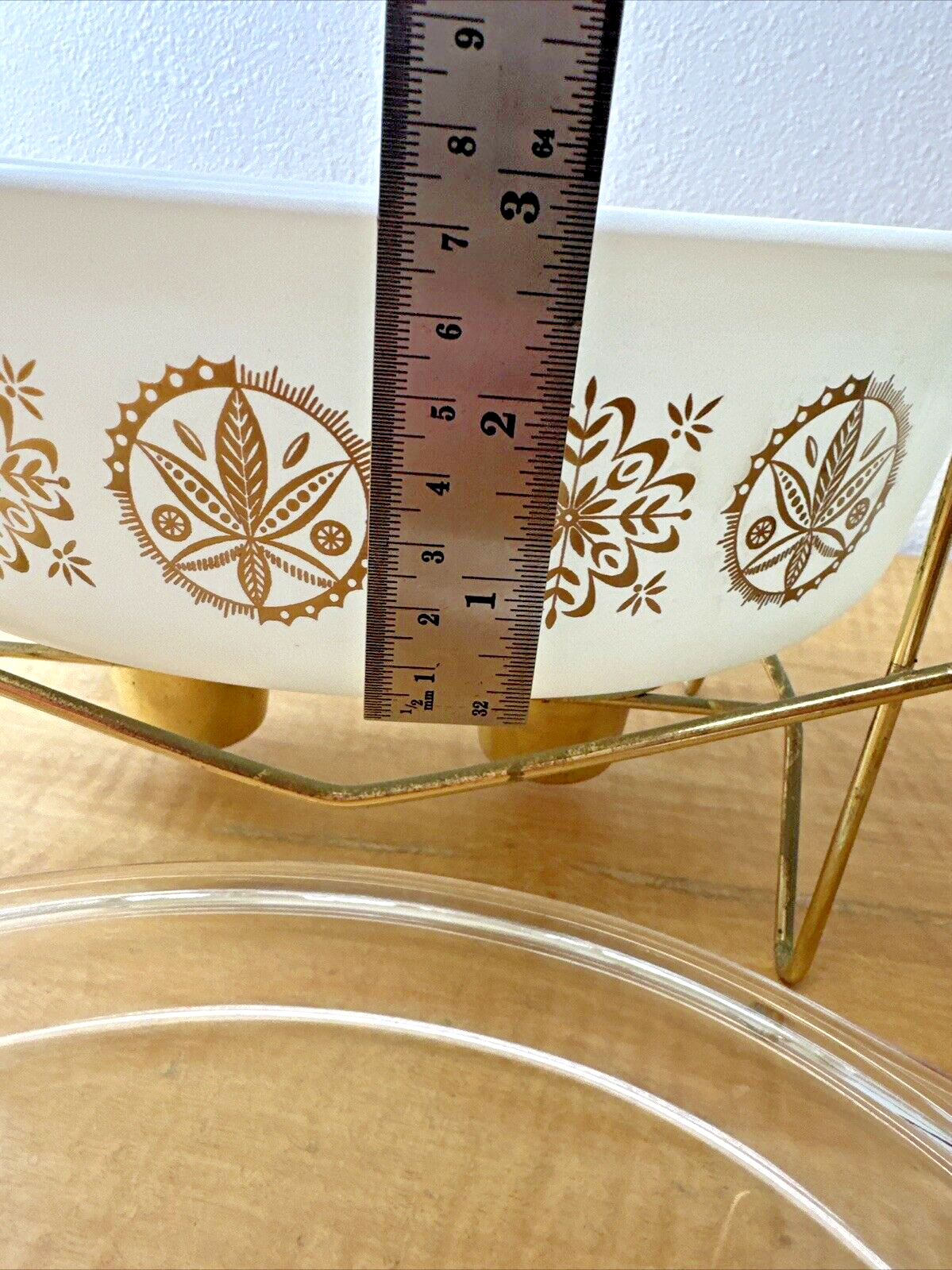Pyrex 2.5qt Hex Signs Pattern White-Gold Dish With Lid & Candle Warmer Cradle