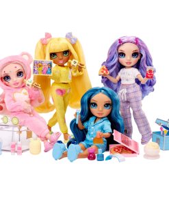 For the first time, your favorite Rainbow High Junior High friends are having an all-night Pajama Party! Each 9” fashion doll comes in their own colorful pajamas, slippers, and the perfect PJ party accessories.