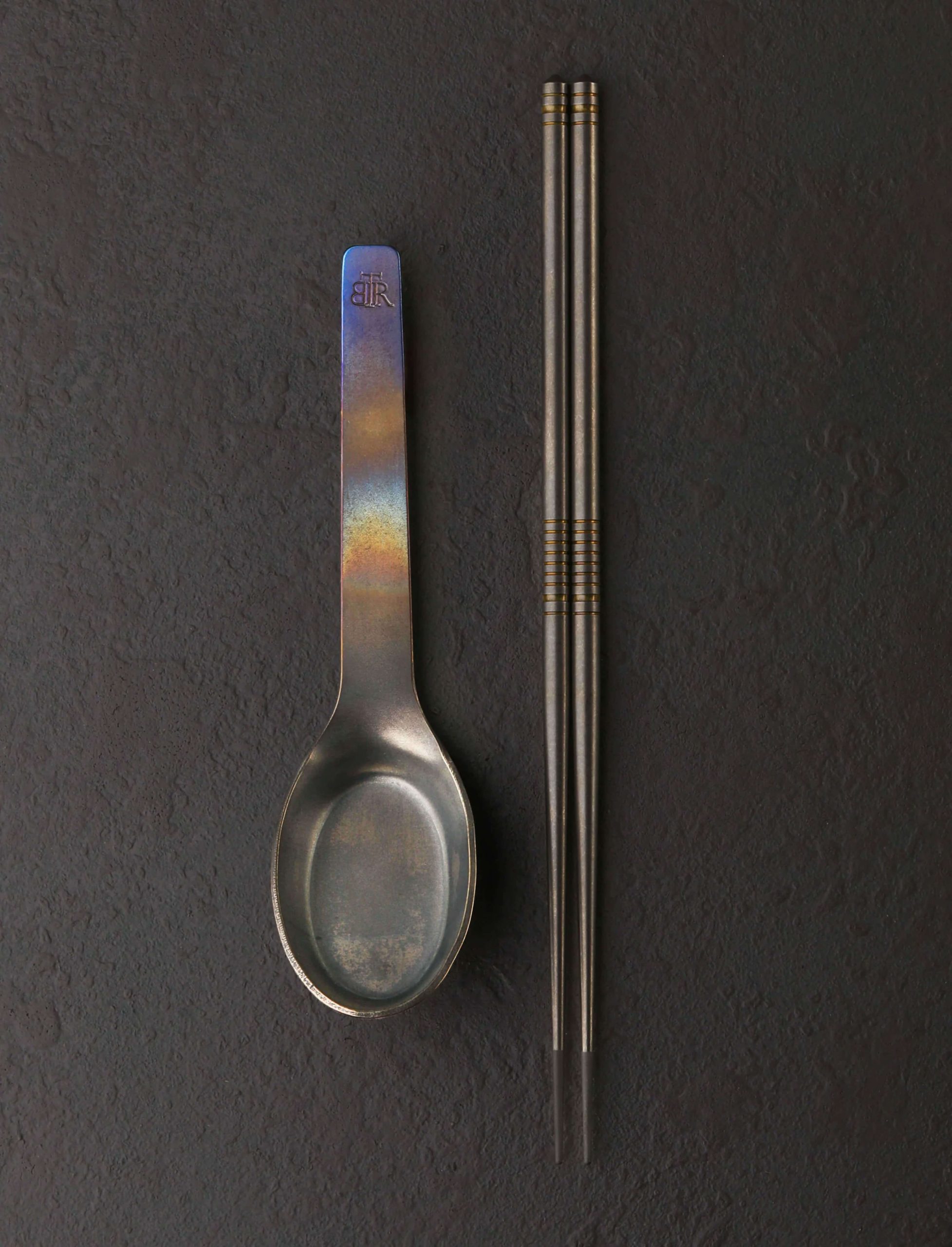 For ramen, and much more, our handcrafted Titanium Ramen Spoon and a pair of TiStix Titanium Chopsticks in Dawn Midnight finish are perfect for dining on your favorite bowls, not to mention a host of other cuisines. With a ramen spoon pressed one-at-a-time from solid titanium and heat anodized in Eugene, Oregon, paired with our small-batch, hand-finished TiStix, weighted and balanced to perfection for a comfortable and natural dining experience, this pair is perfect for at home, out at your favorite restaurant, or even for sneaking a taste in the kitchen.