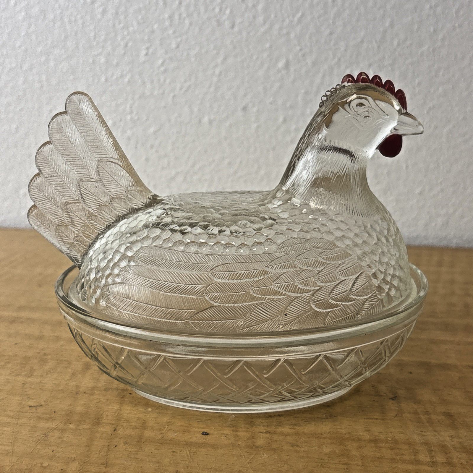 Rare 1930’s Indiana Glass Hen / Chicken on a Nest Bowl / Container