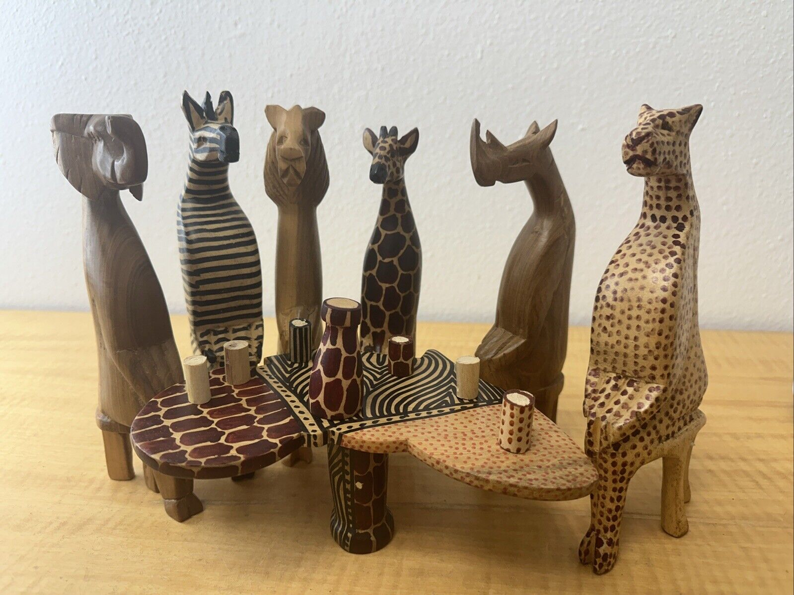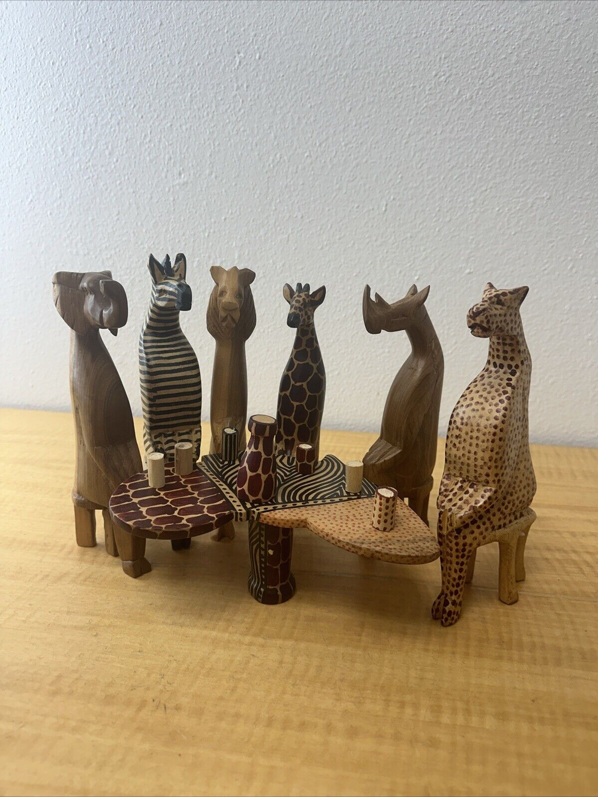 RARE HAND CARVED JUNGLE ANIMAL DISPLAY – Party Animals!