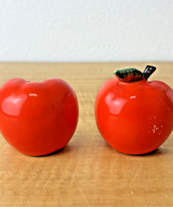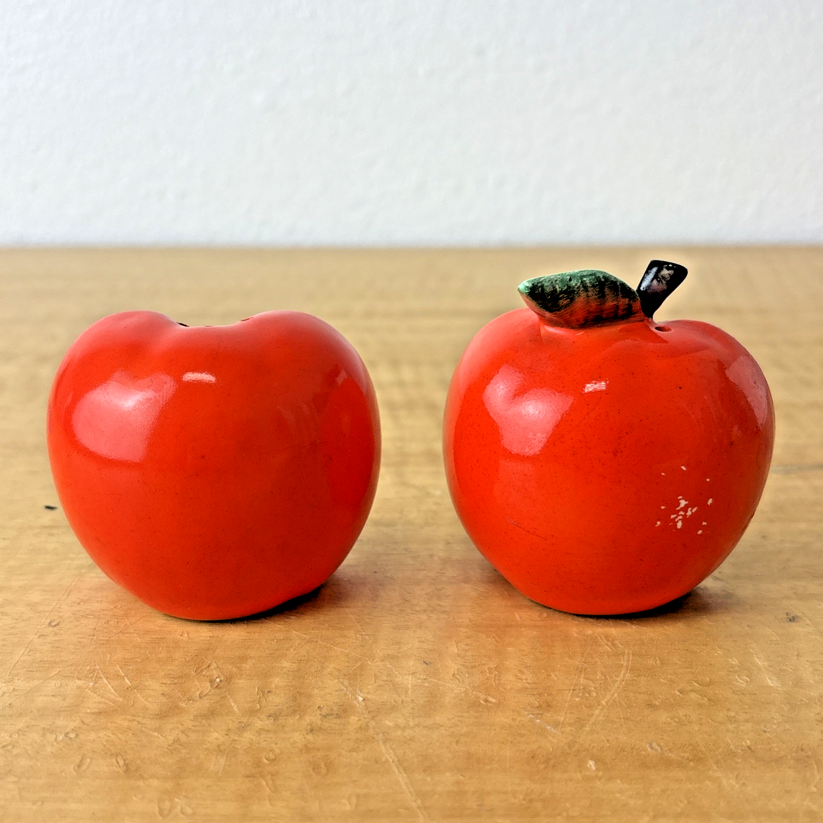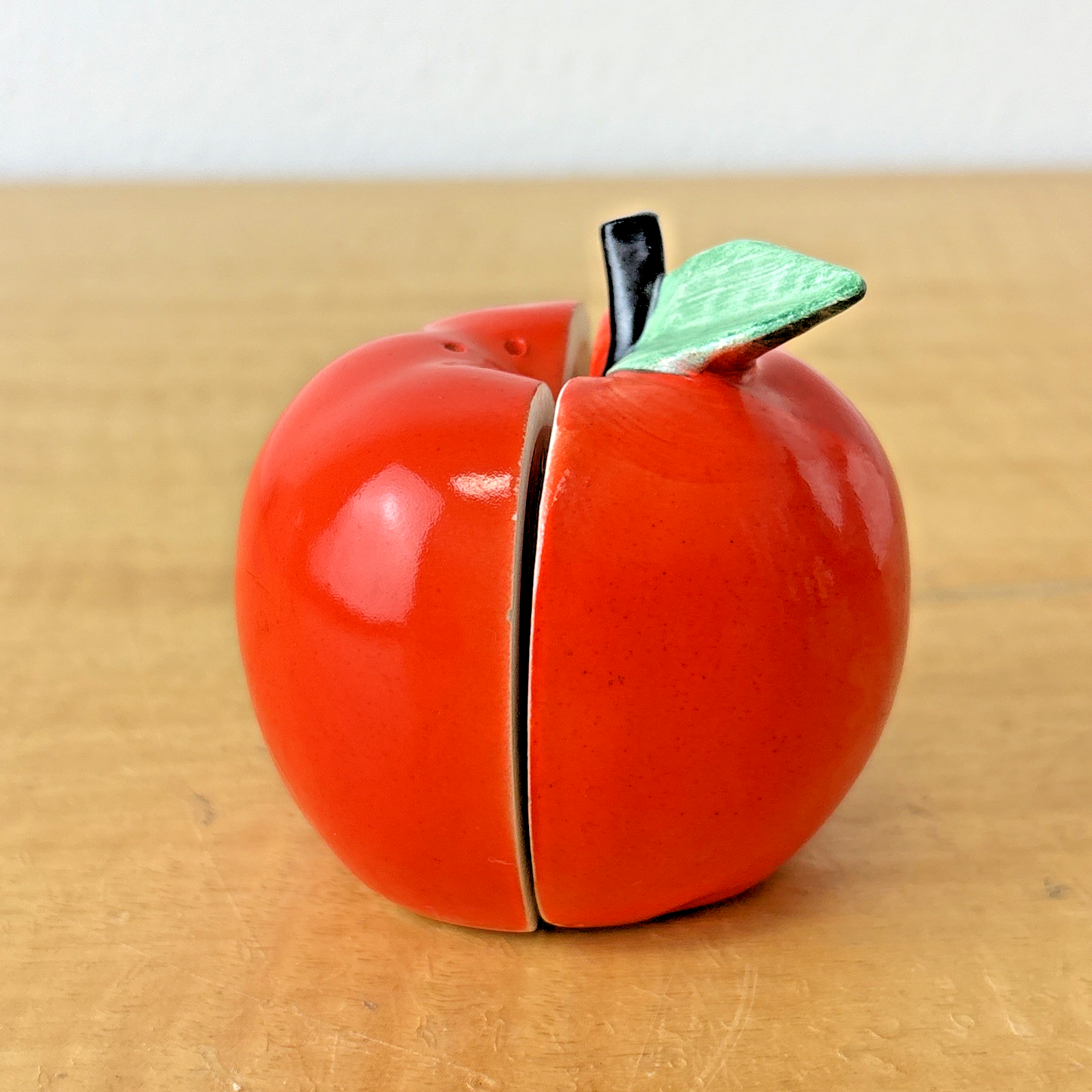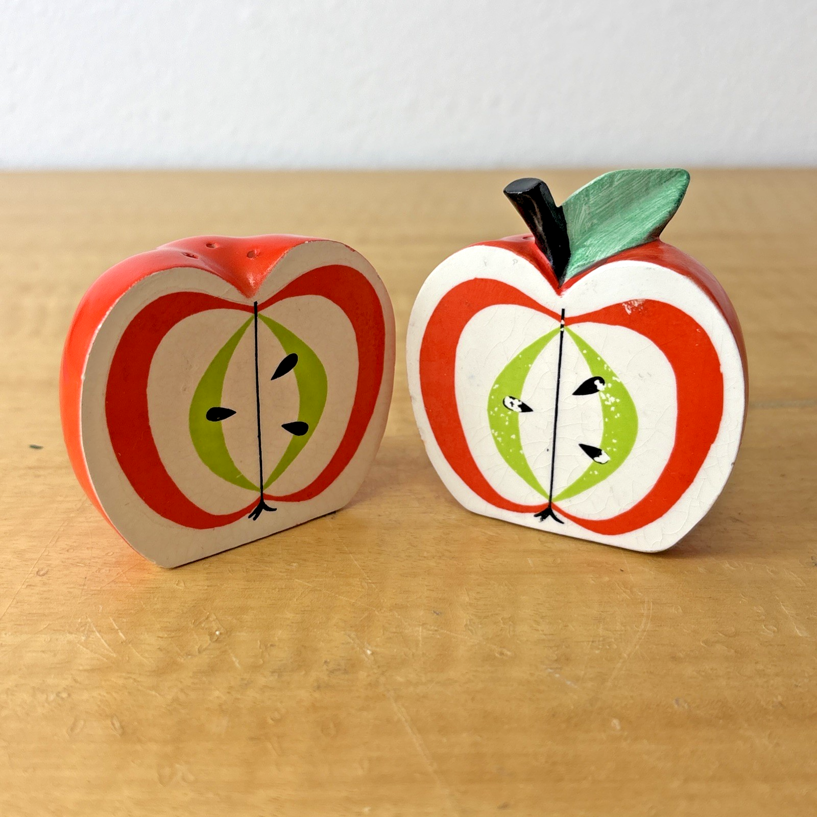 RARE Holt Howard Apple Halves Ceramic Salt & Pepper Shakers Orig Sticker MCM VTG