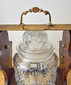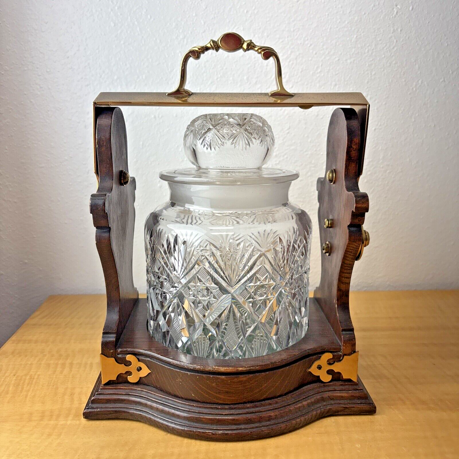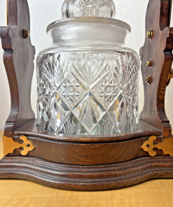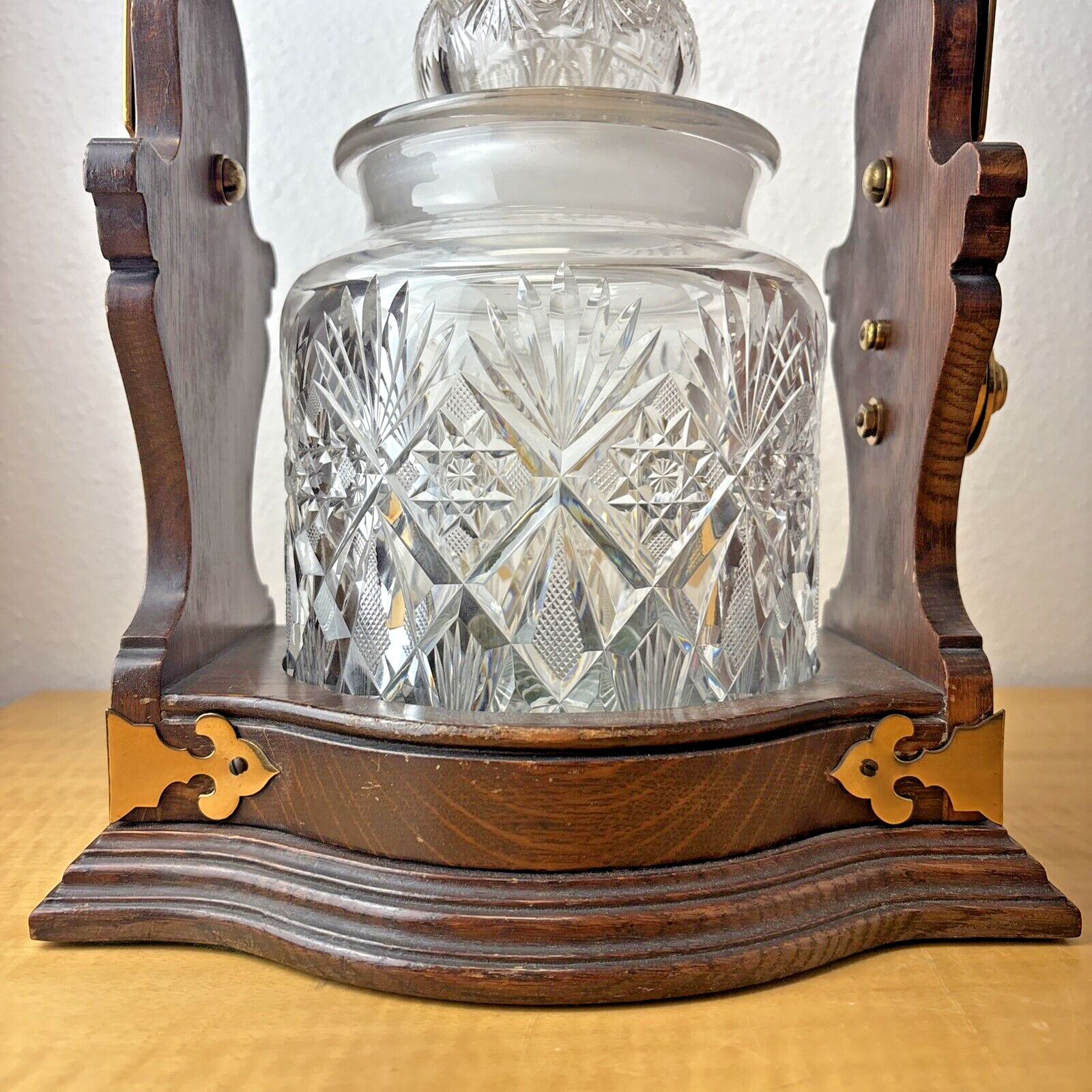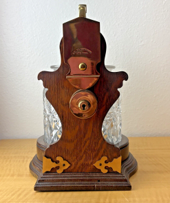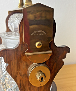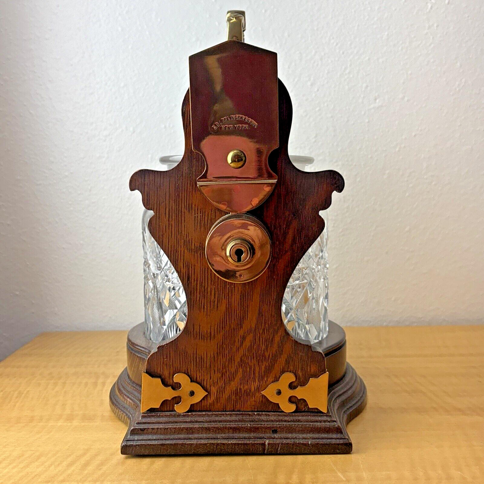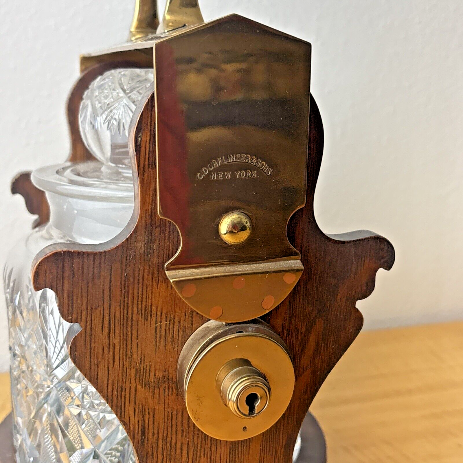 Condition Description: There is a chip in the glass as seen in the images. There is no key, but the tantalus is moveable by shifting down the key slot. See images, ask questions.