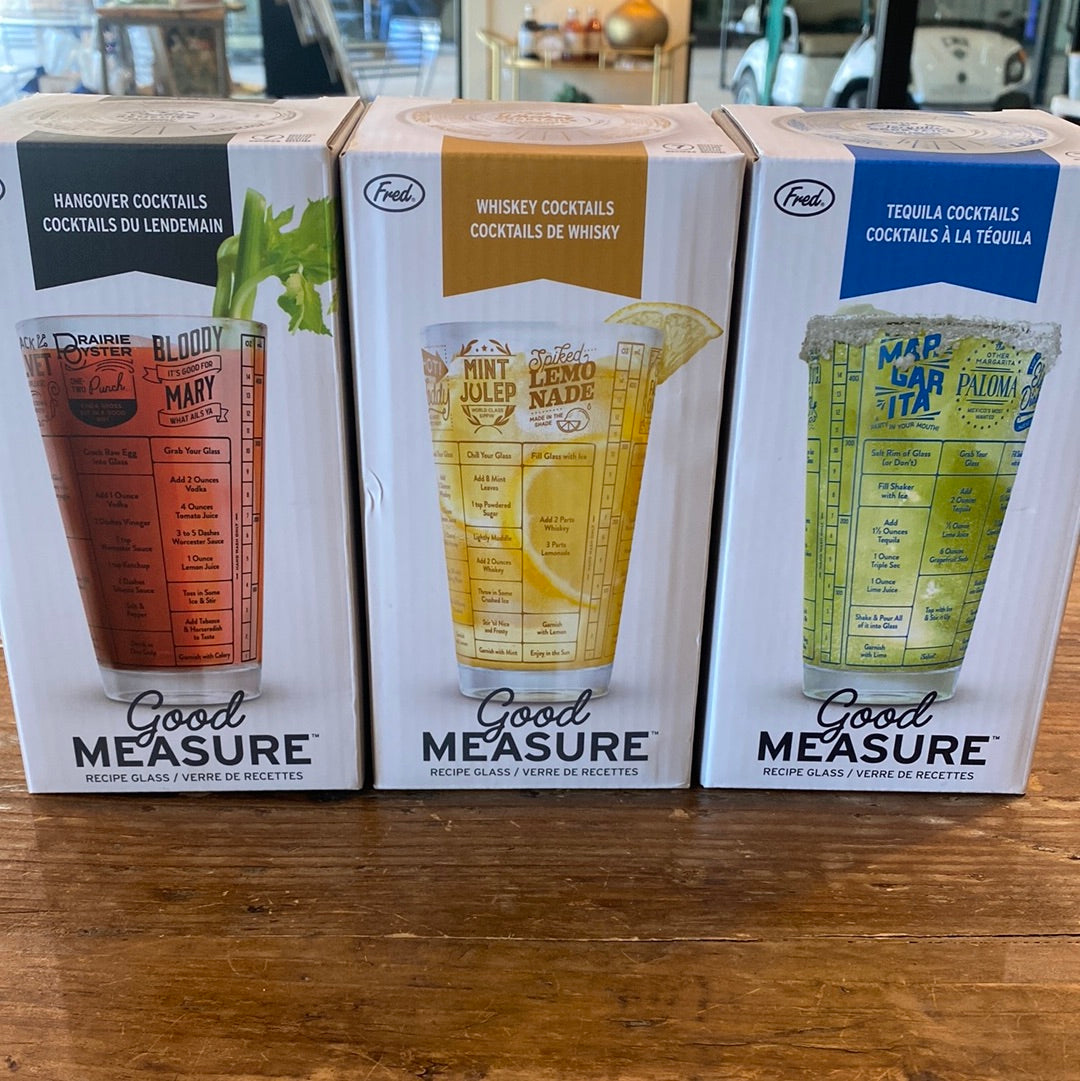 The cutest glasses that are perfect for your bar area | These glasses showcase different drink recipes and show measurements in oz and ml