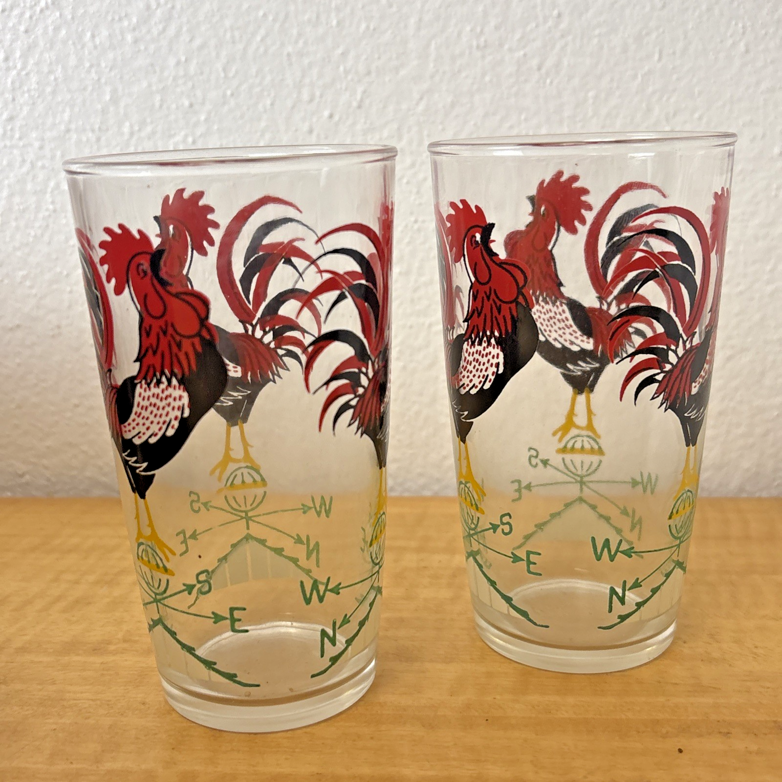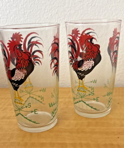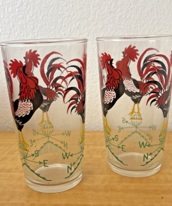 Red Crowing Rooster Weather Vane Tumblers Glasses 10oz Set of 2