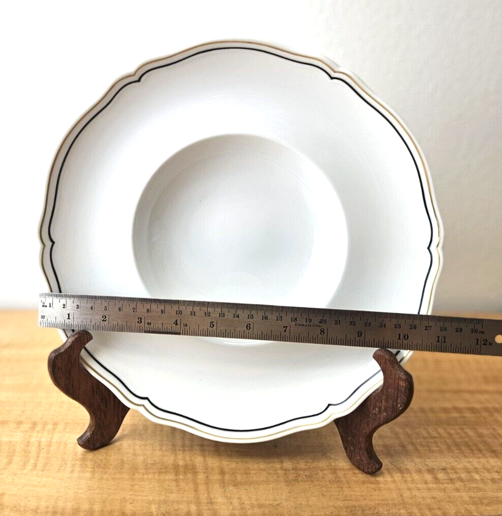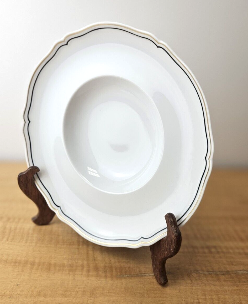 Richard Ginori 11″ Dinner Bowl or Plate White Black Gold Rim scalloped edge