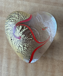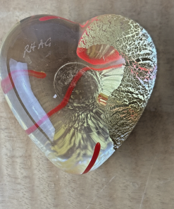 Robert Held Art Glass Studio Heart Shaped Signed RHAG Paperweight Red Gold