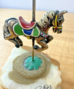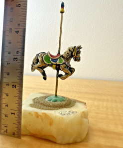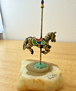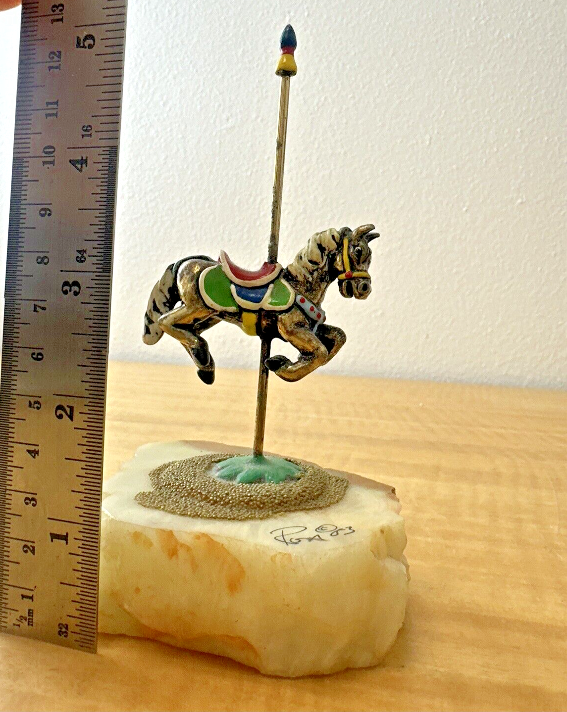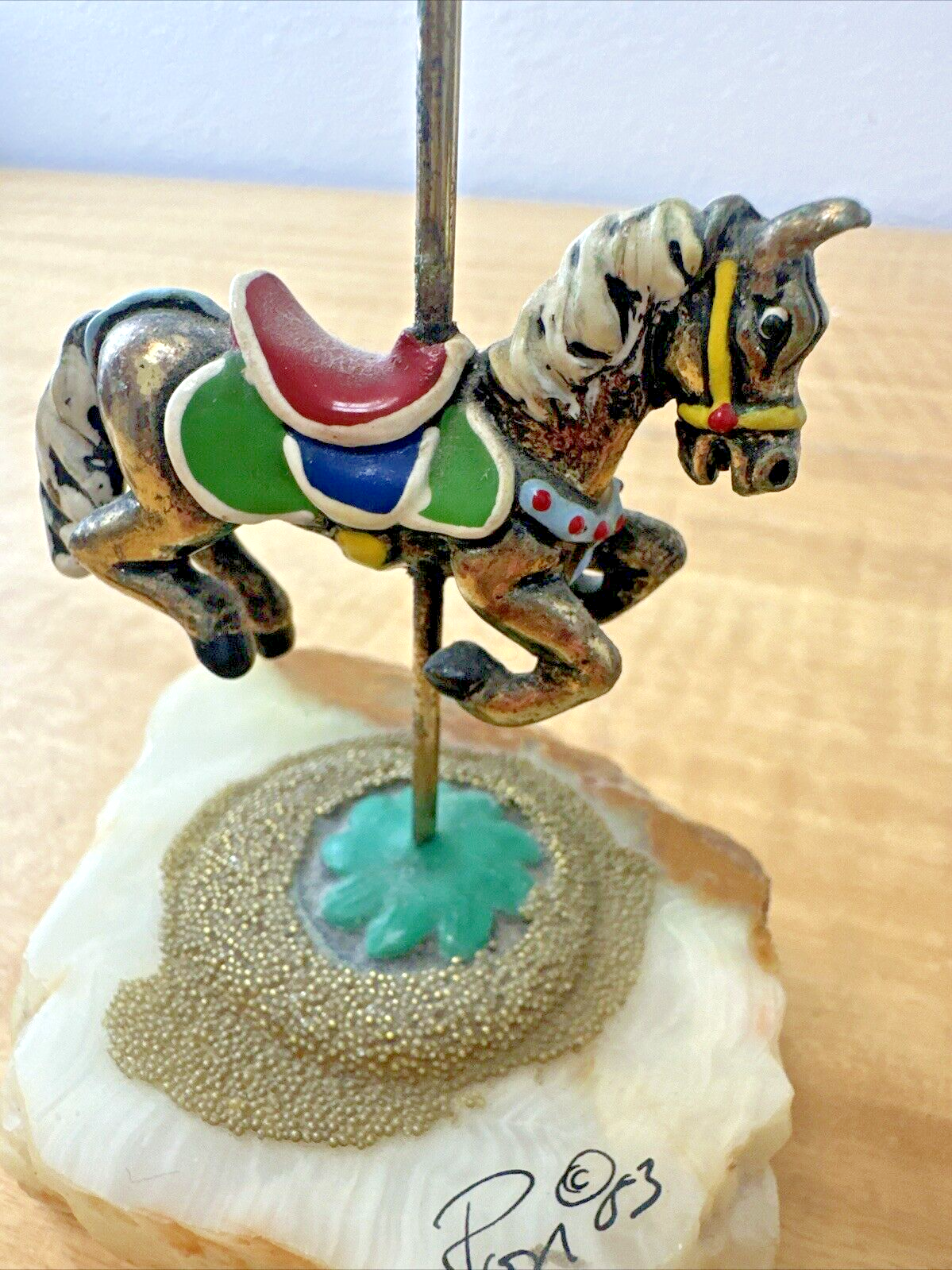 Ron Lee 1983 Carousel Horse Onyx Marble Base Signed 6″ H x 3″ W