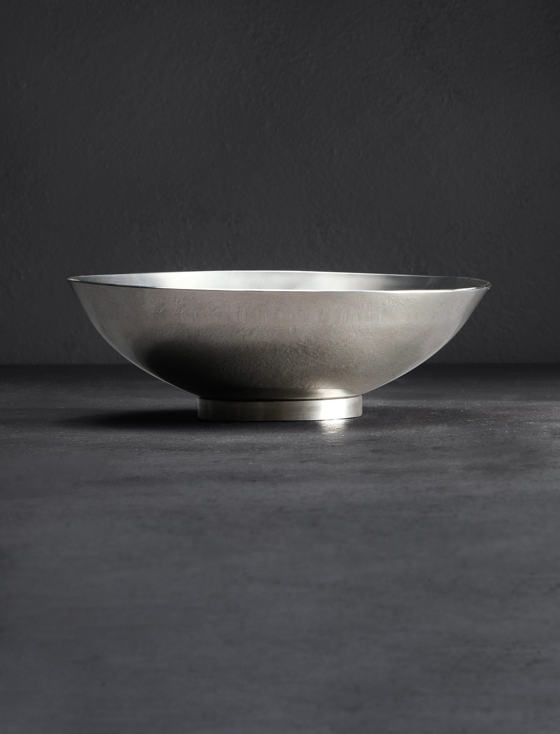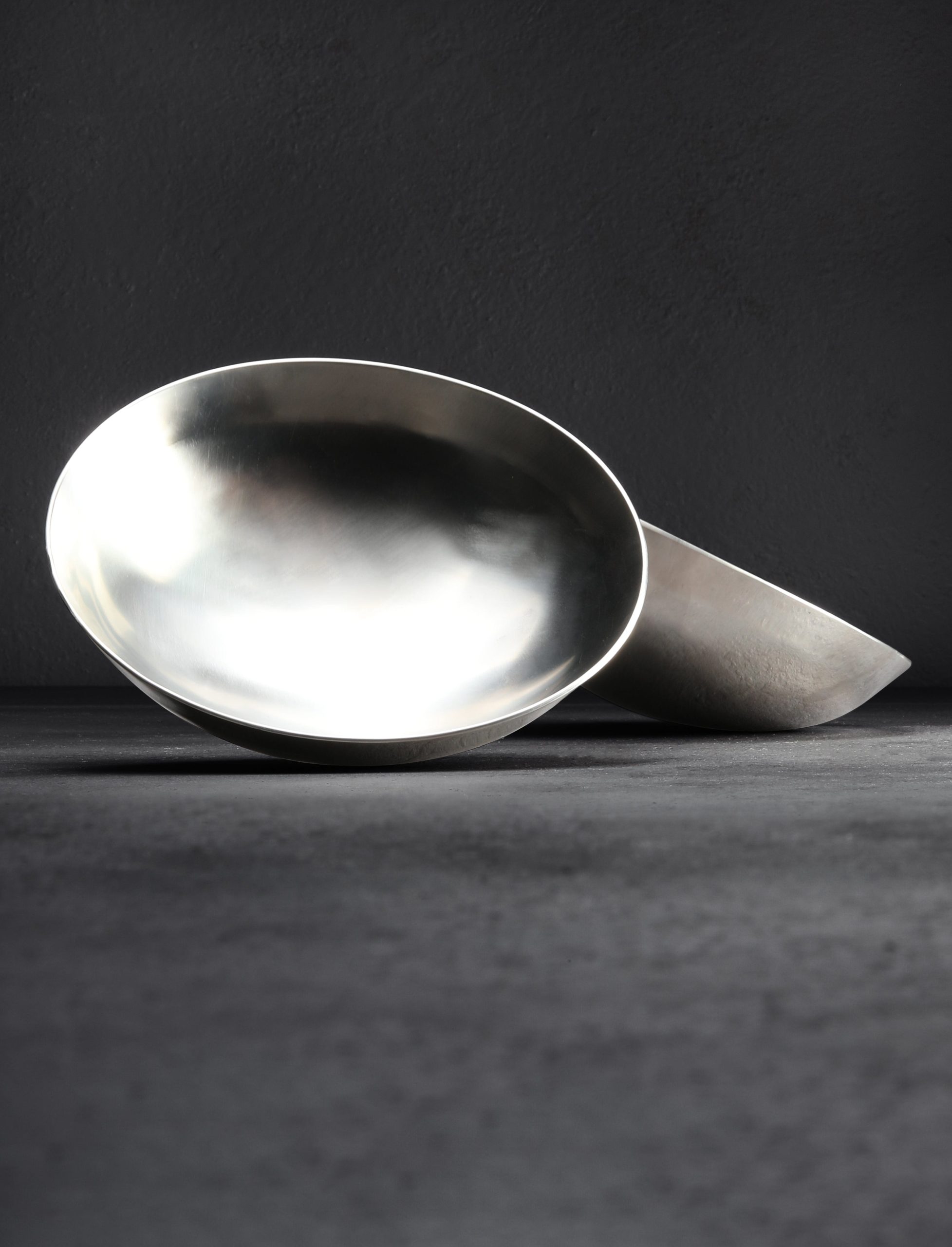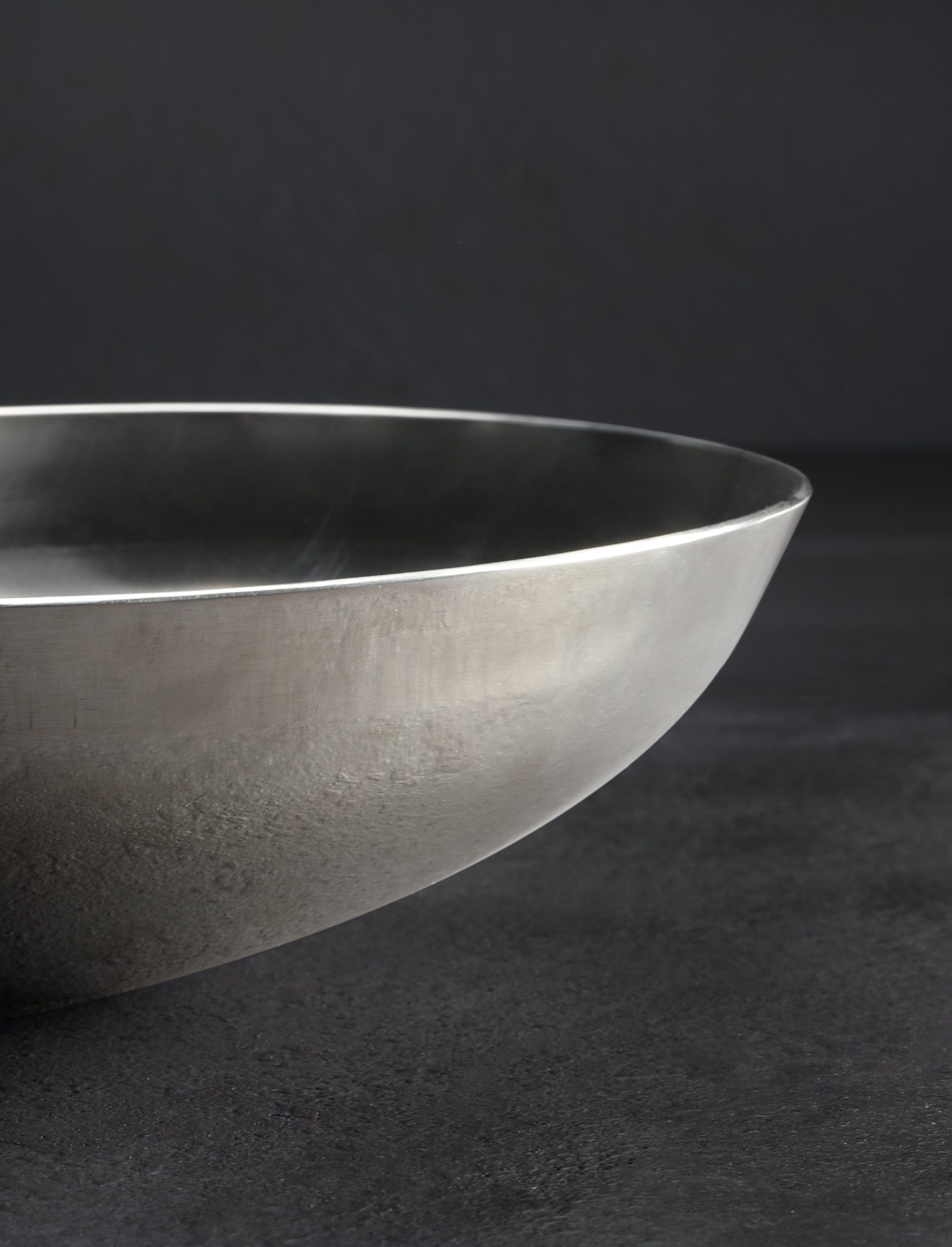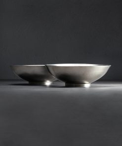 Hand forged from thick, solid, stainless steel, polished on the outside and given a brushed, matte finish on the inside, these round bottom bowls are wonderful for serving any non-liquid dish. For everything from hot and cold salads to stir fries to goulash and more, the bowls perform wonderfully in the hand or on the lap. On a table they remain upright while also allowing for a bit of satisfying sway in any direction, their foot-less design being similar to a round-bottom mixing bowl often found in the kitchen. Made one by one in Santa Rosa, California by Stephen Fitz-Gerald, these wonderful dining bowls are the latest addition to Stephen’s collection of beautiful steel culinary wares.